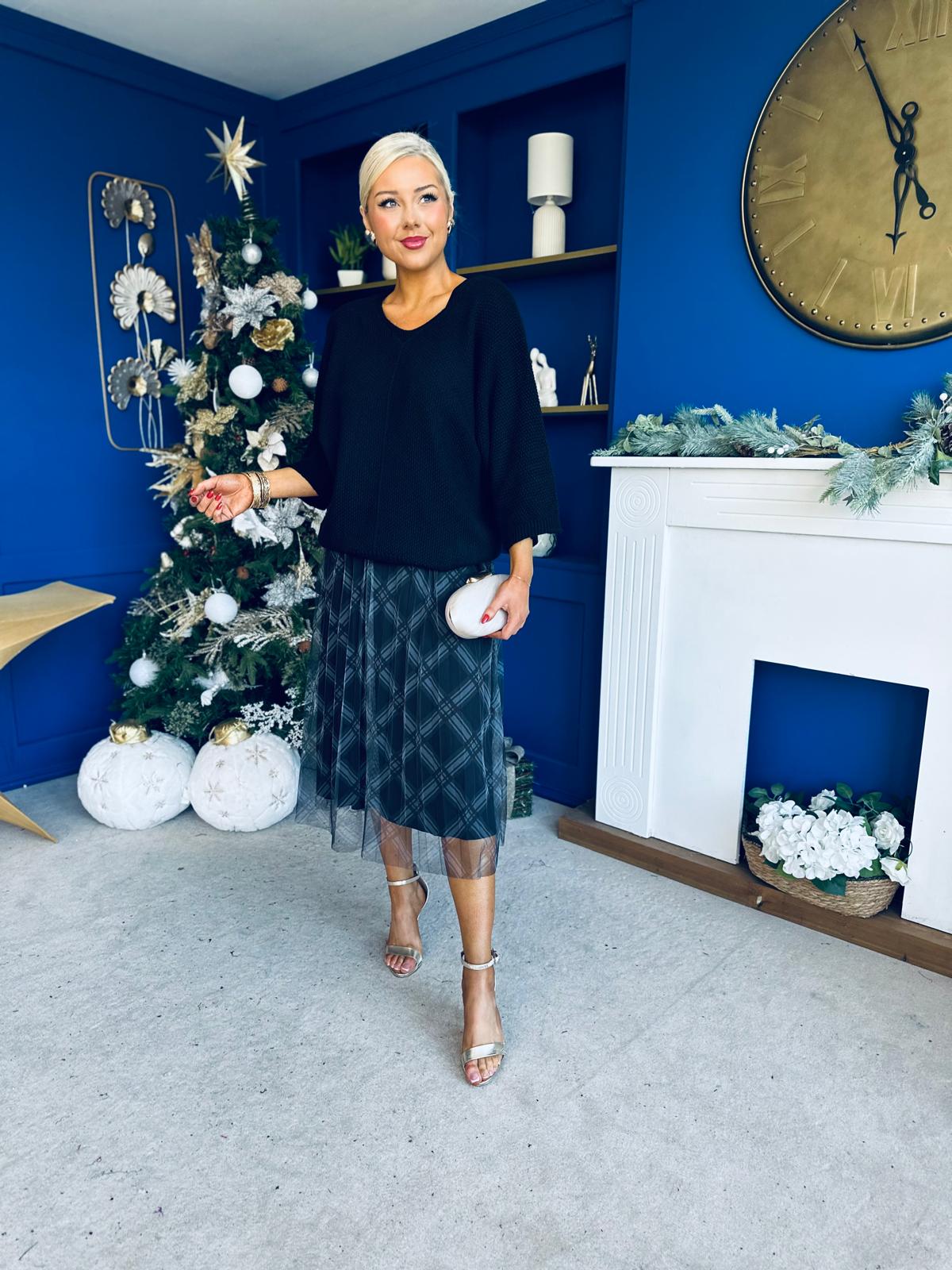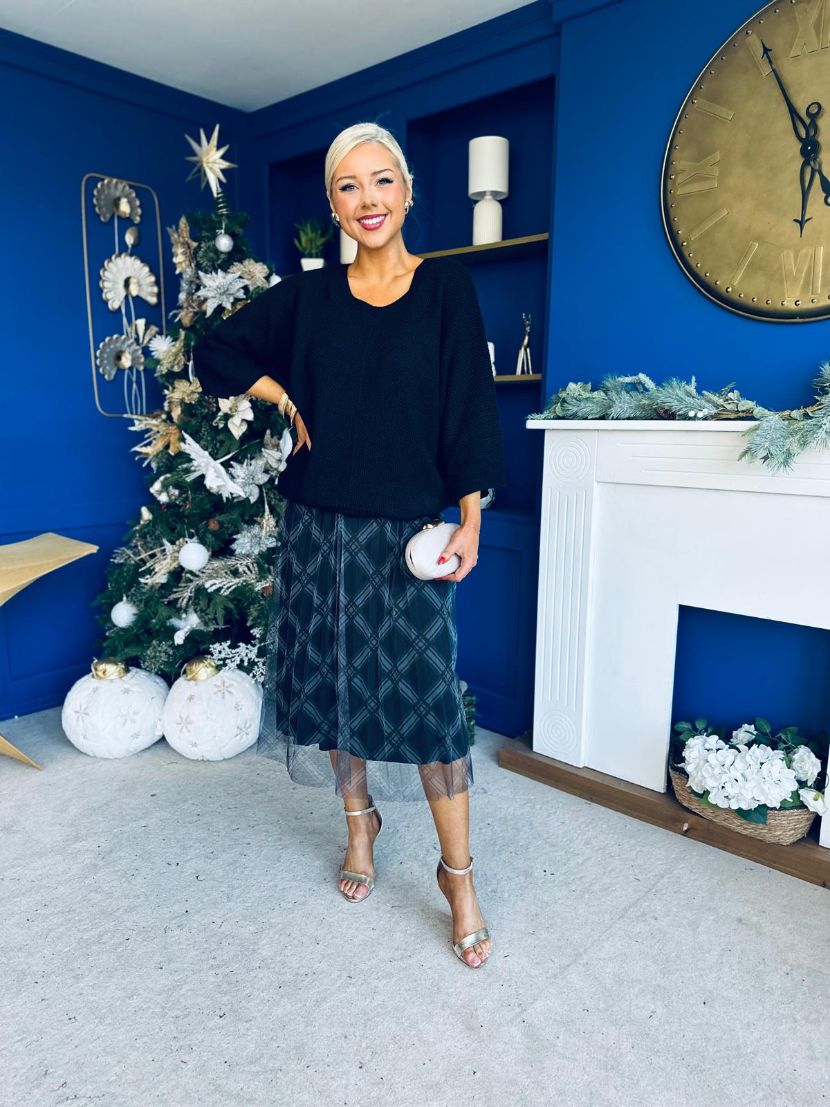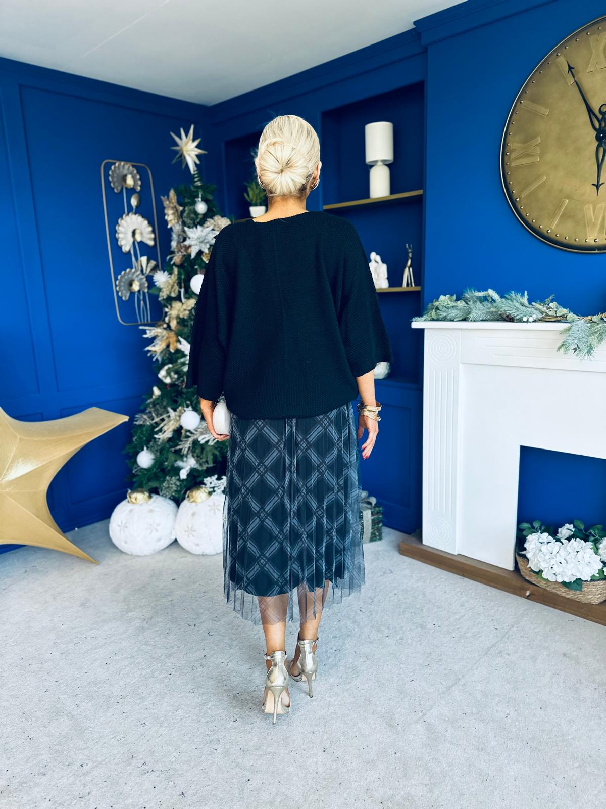 Crystal Knit & Tulle Midi Dress Black
