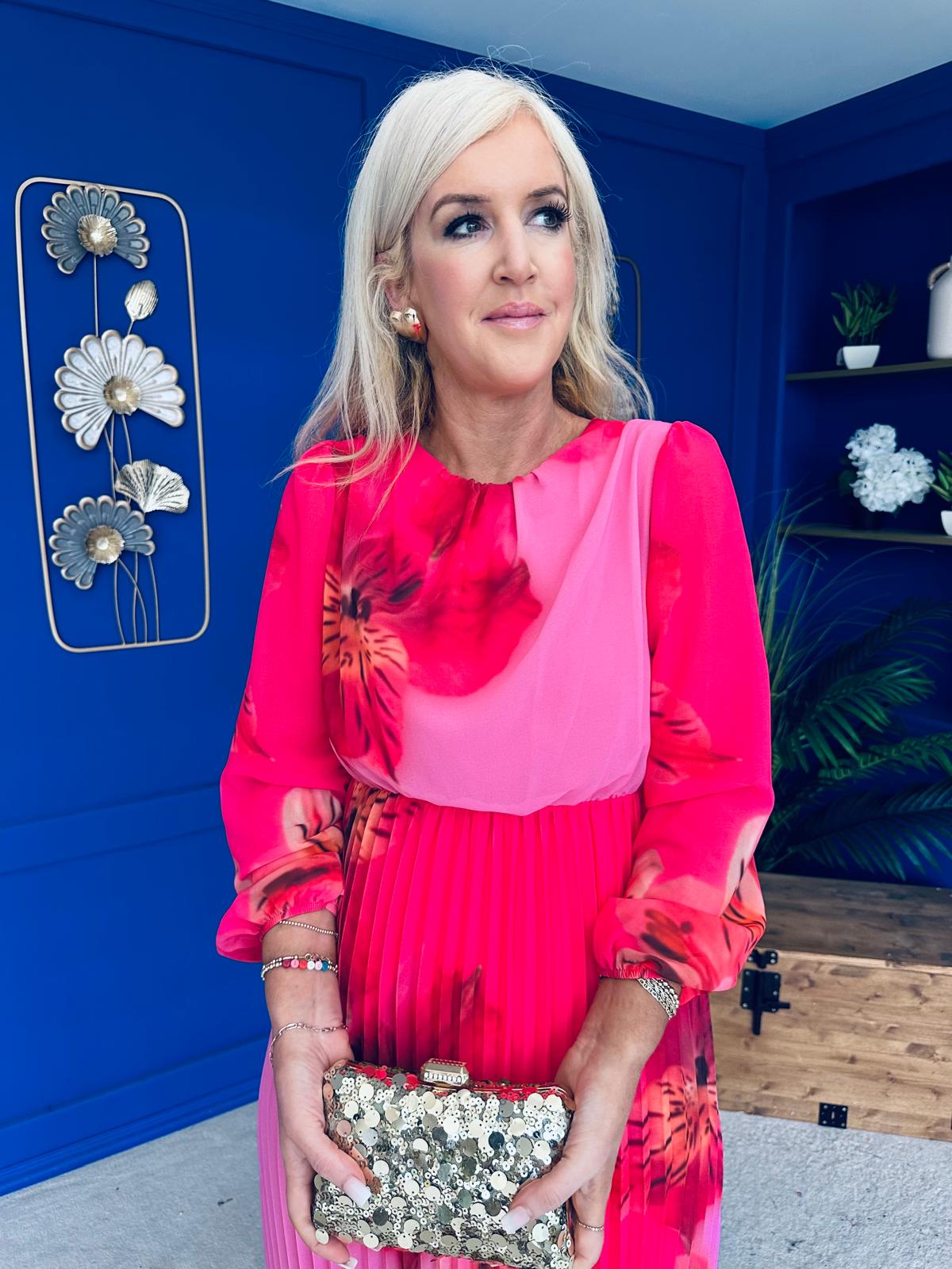 Dakota Pleated Midi Dress Pink