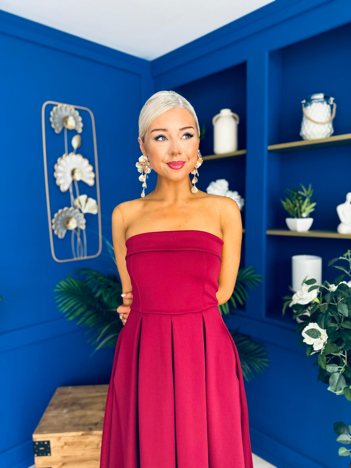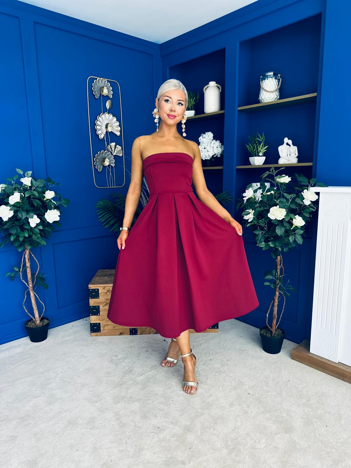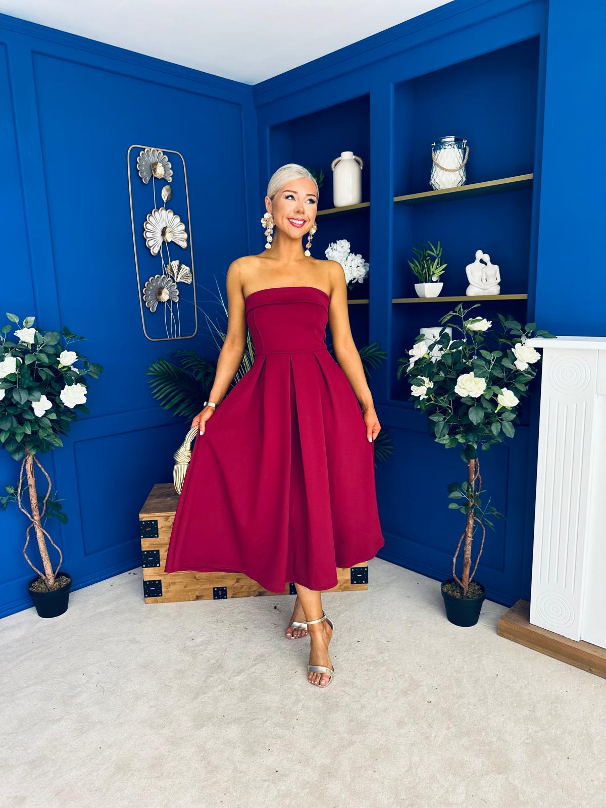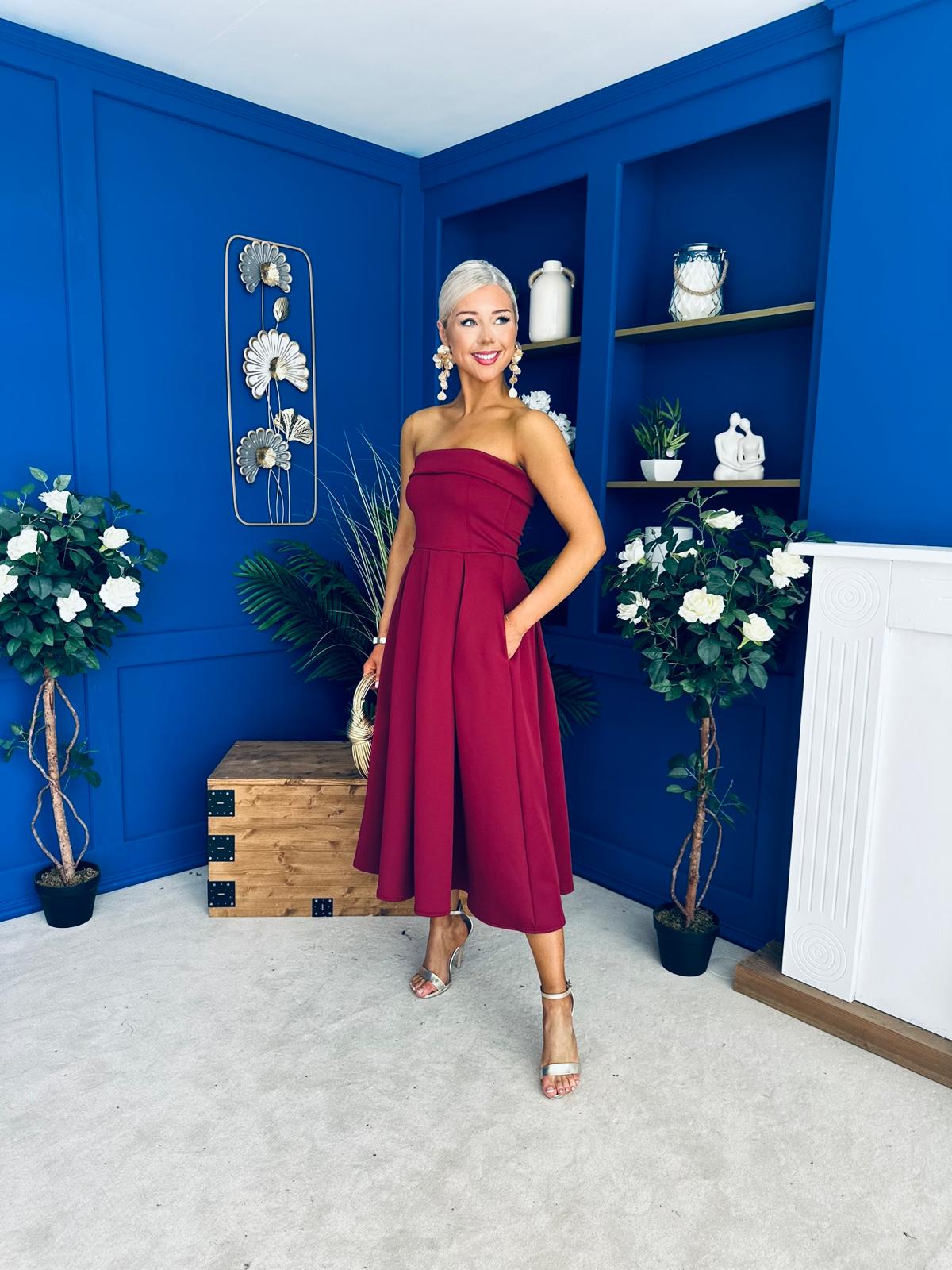 Beautifully flowing with a cinched in waist, this midi dress boasts a pleated skirt that creates an elegant sense of movement.