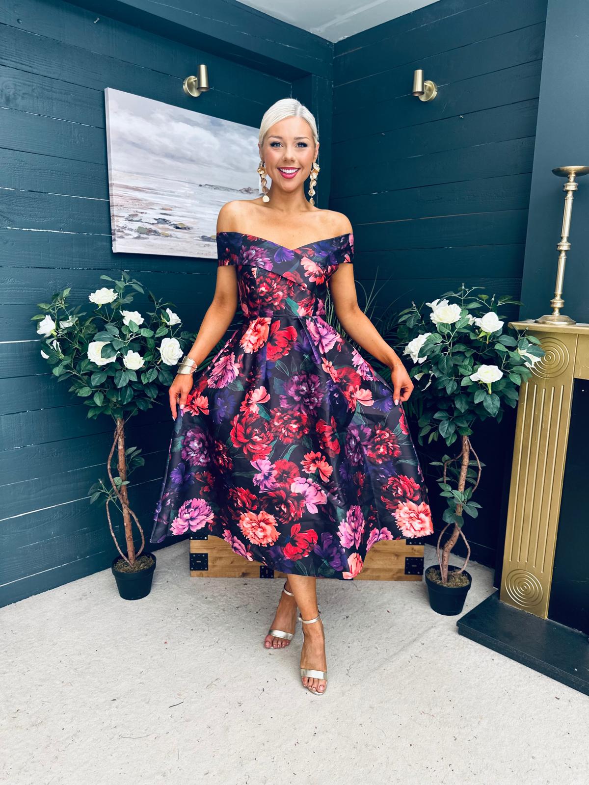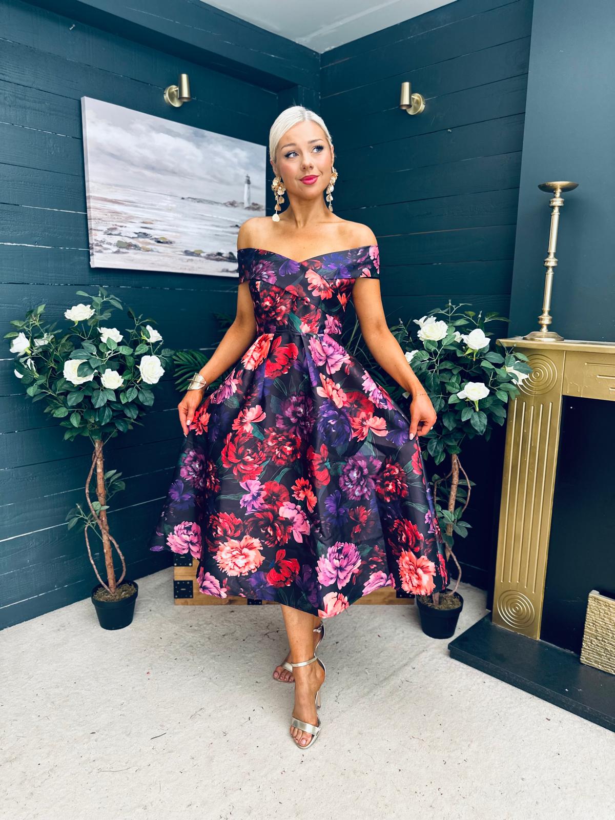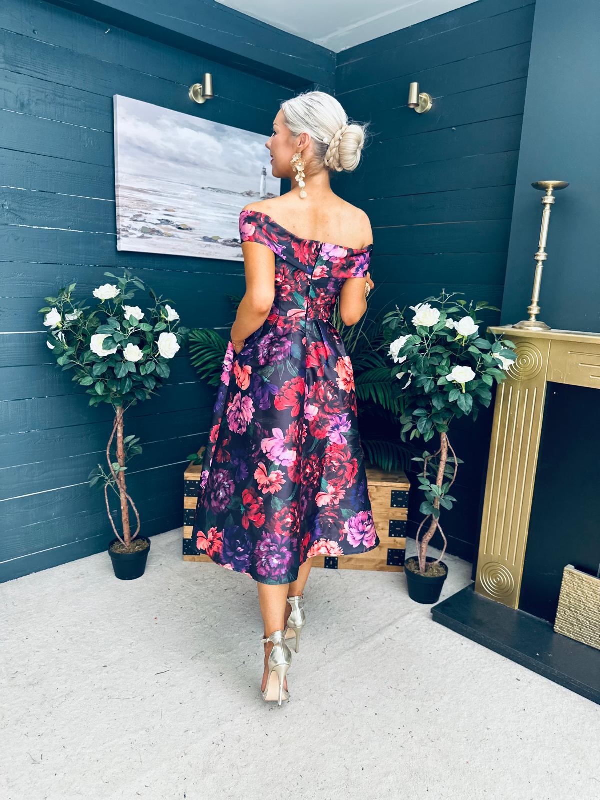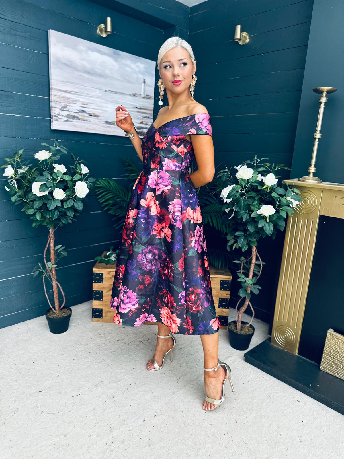 Daphne Off The Shoulder Skater Midi Dress Dark Floral