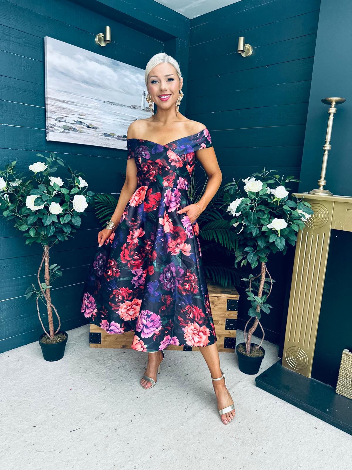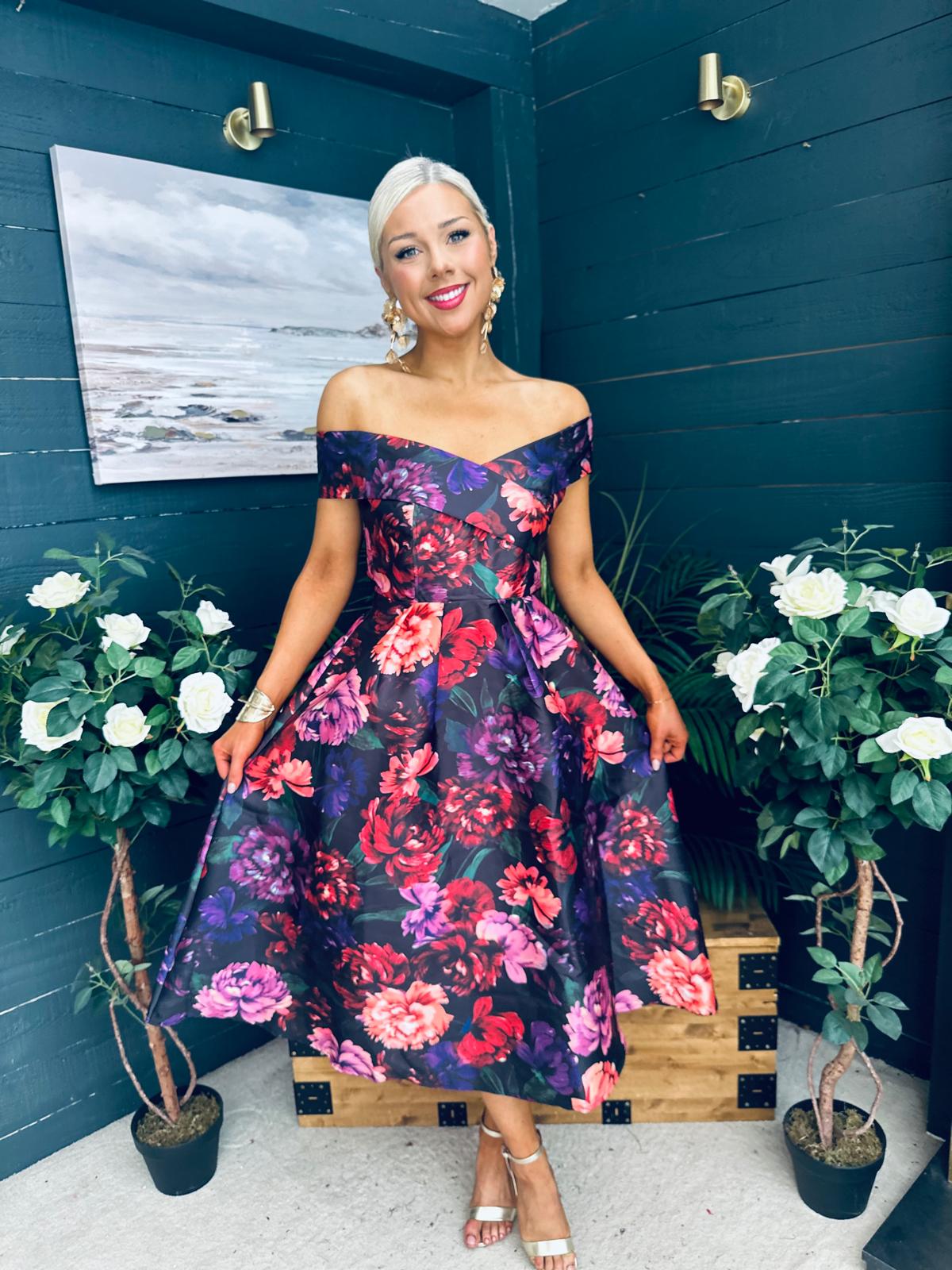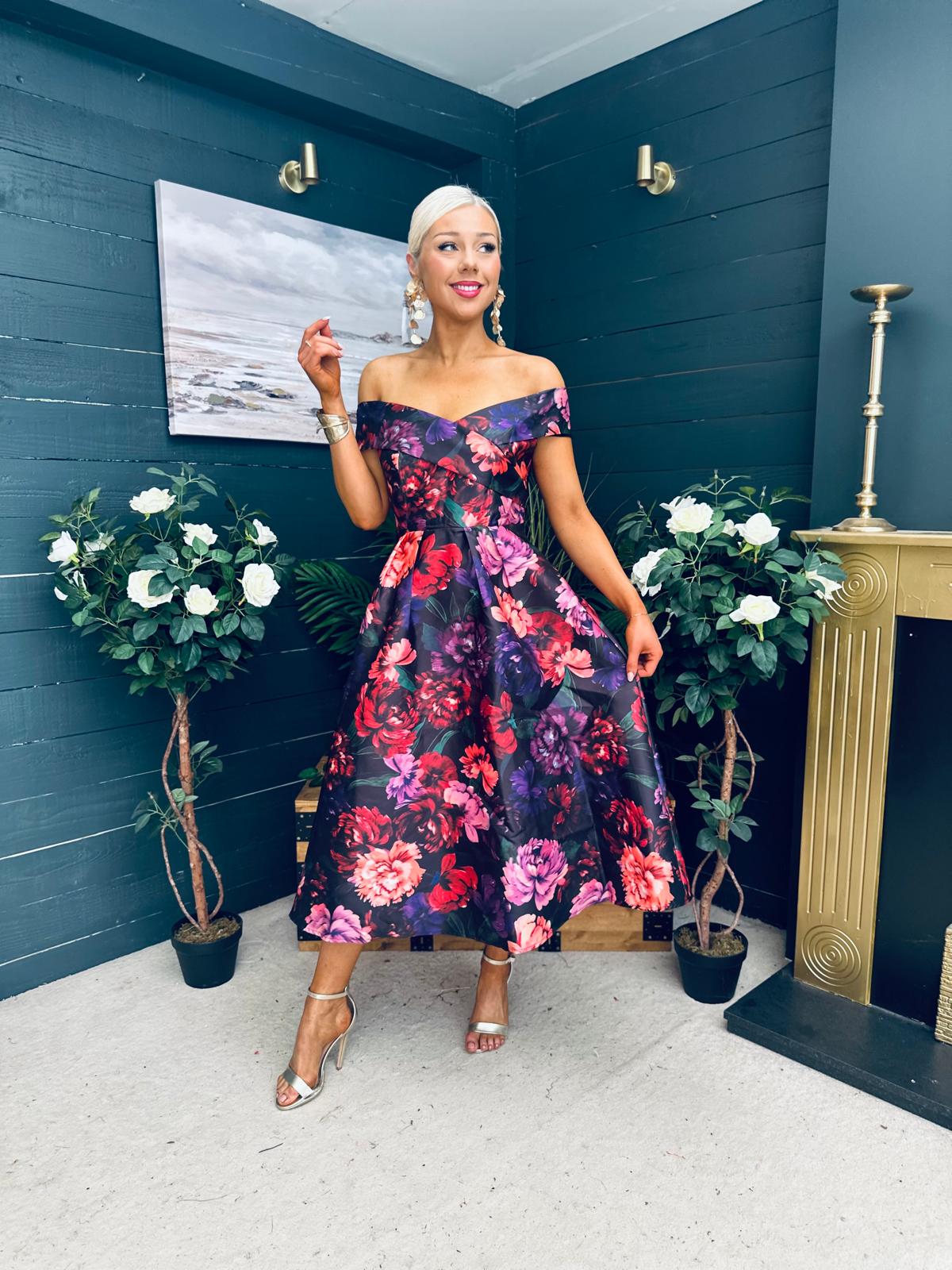 Daphne Off The Shoulder Skater Midi Dress Dark Floral
