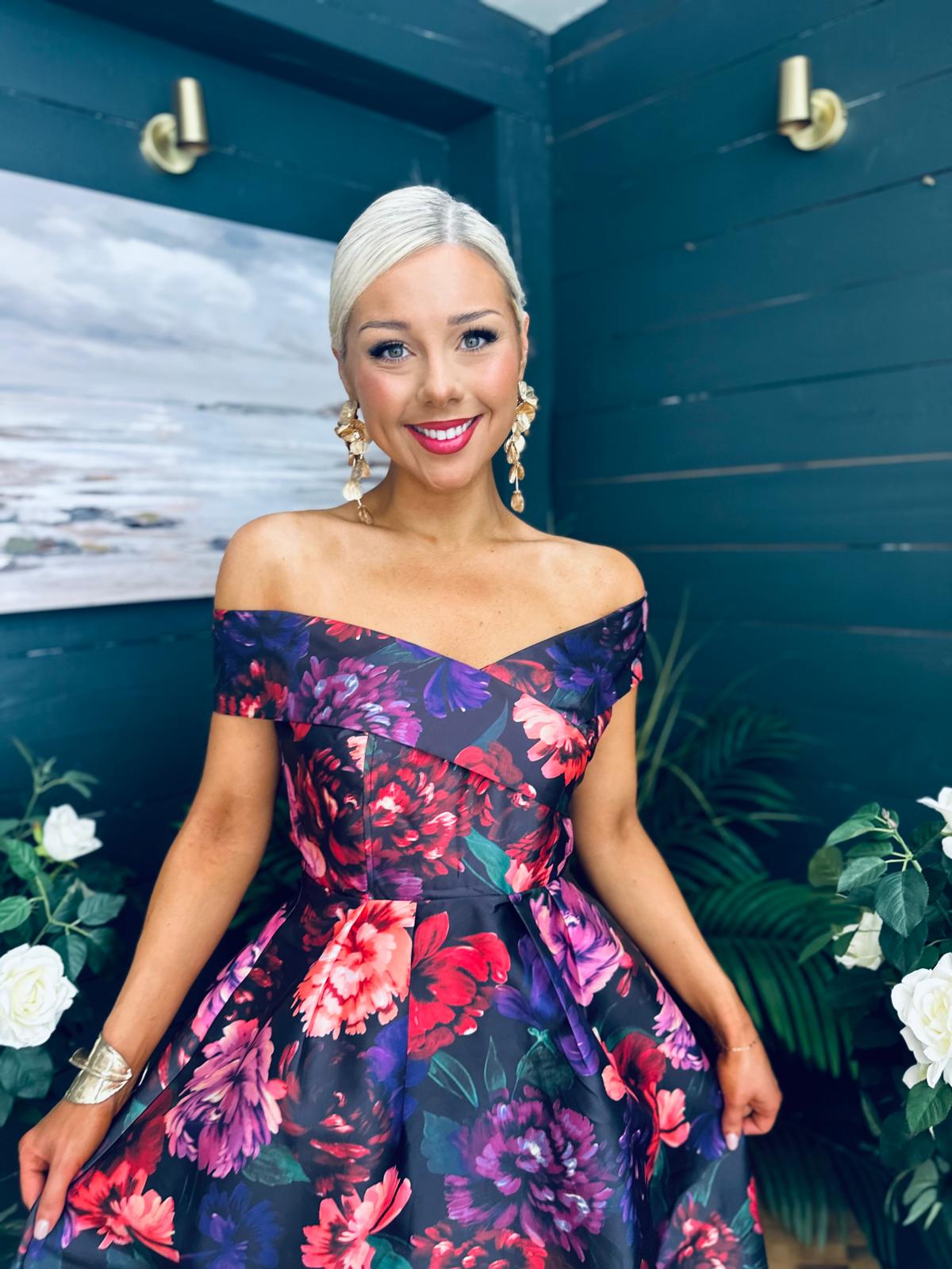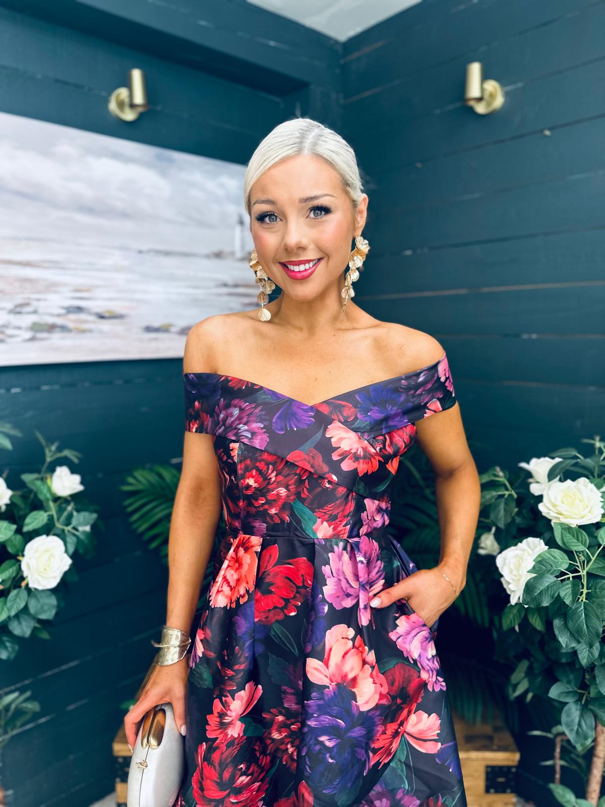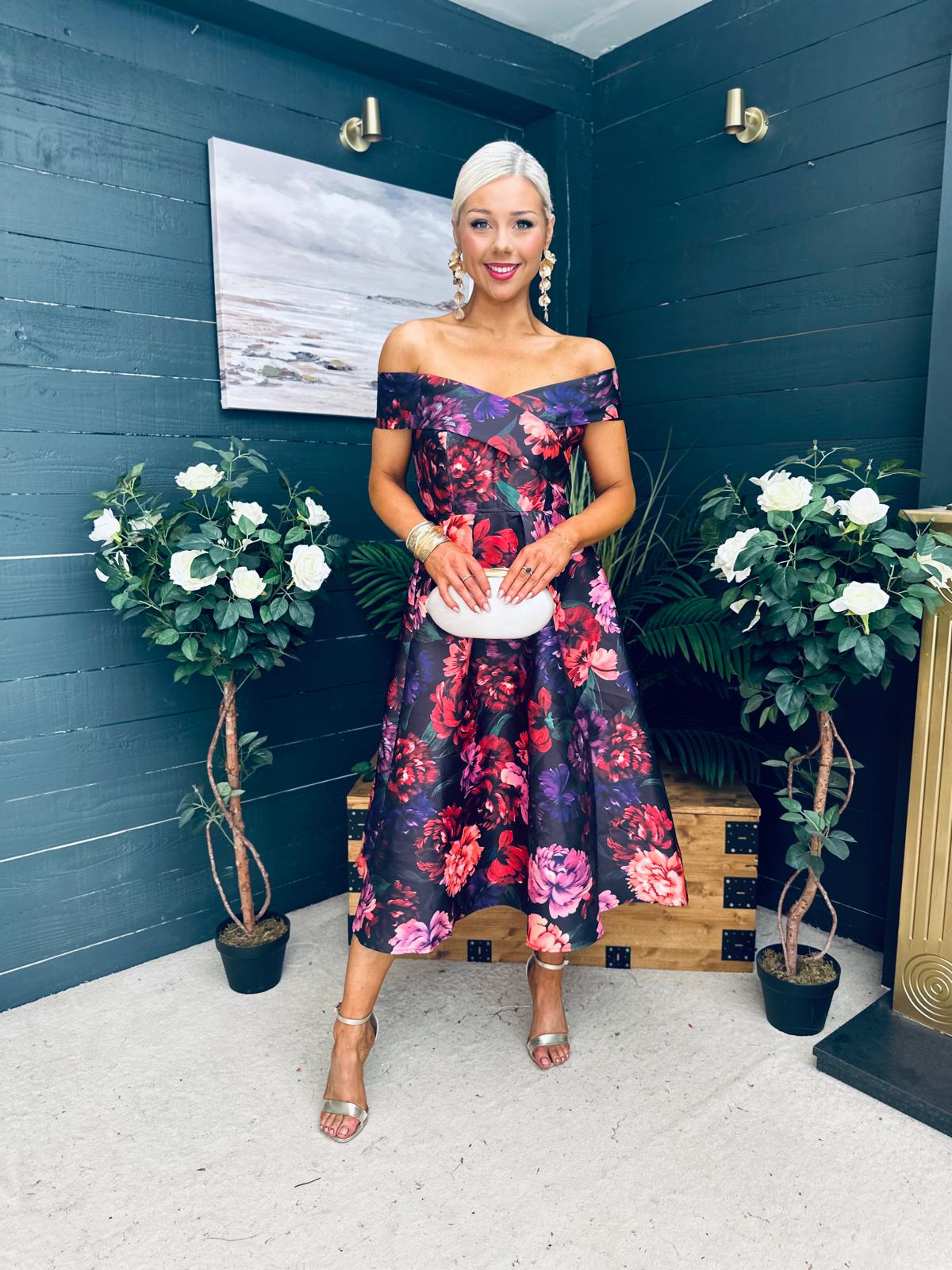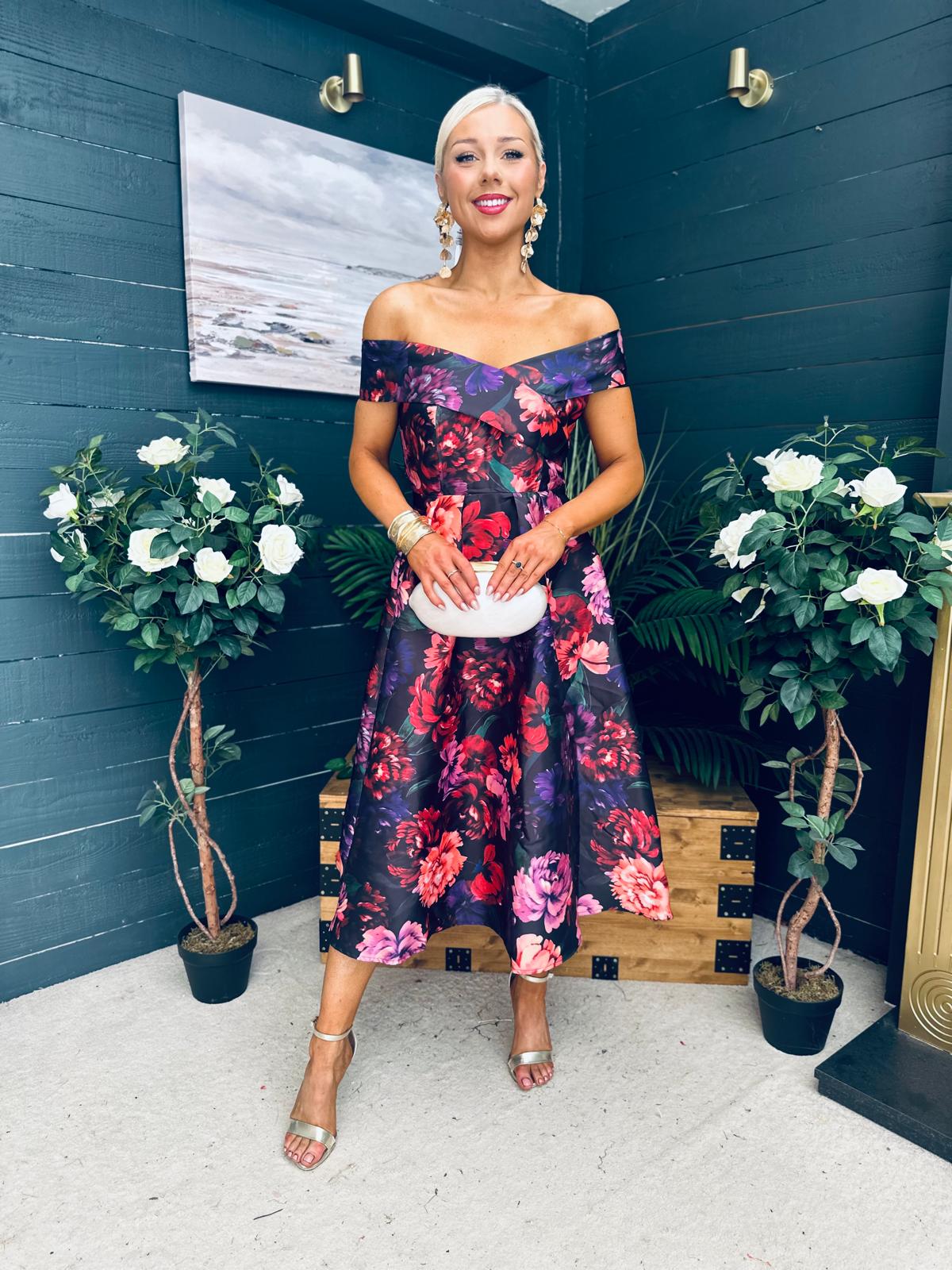 Daphne Off The Shoulder Skater Midi Dress Dark Floral