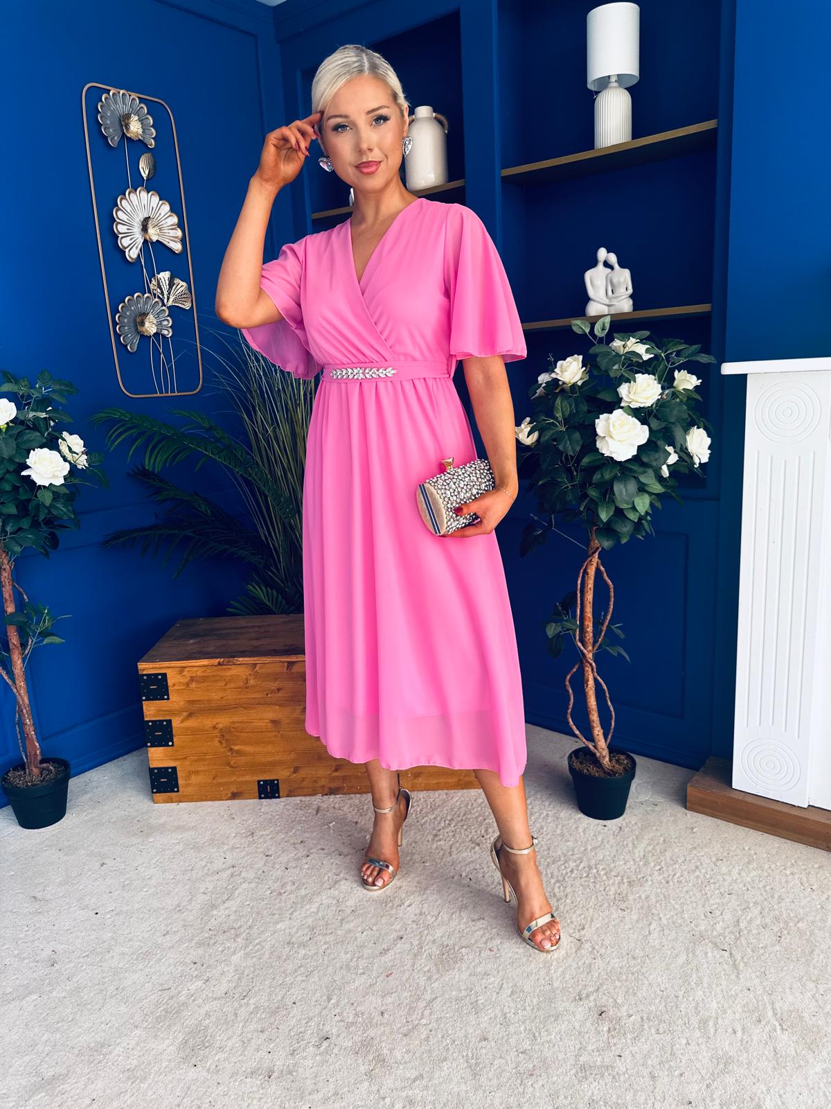 Darcy Embellished Belt Midi Dress Cerise