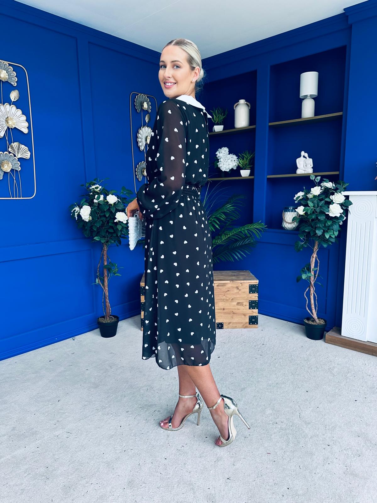 Doireann Detailed Midi Dress Polka Heart Black
