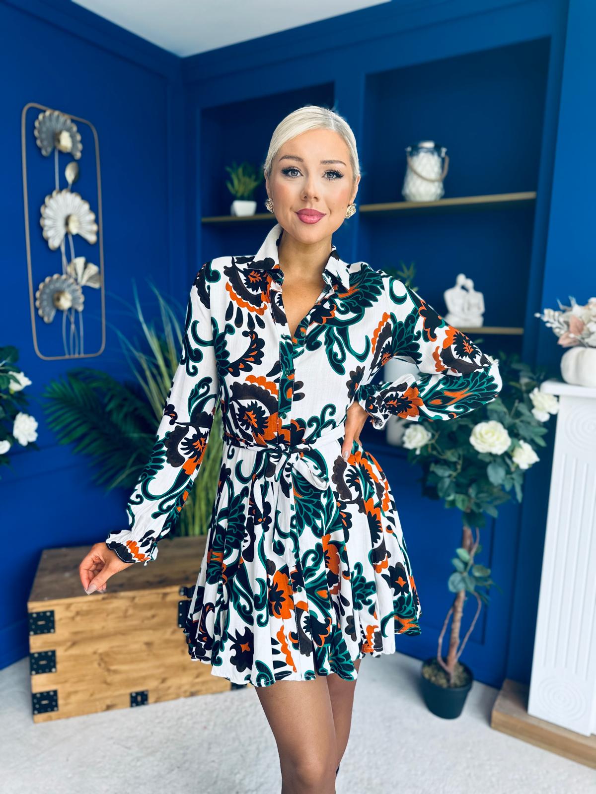 The matching belt, cuff detail and flowing skirt with hem detail give this dress an amazing look & feel