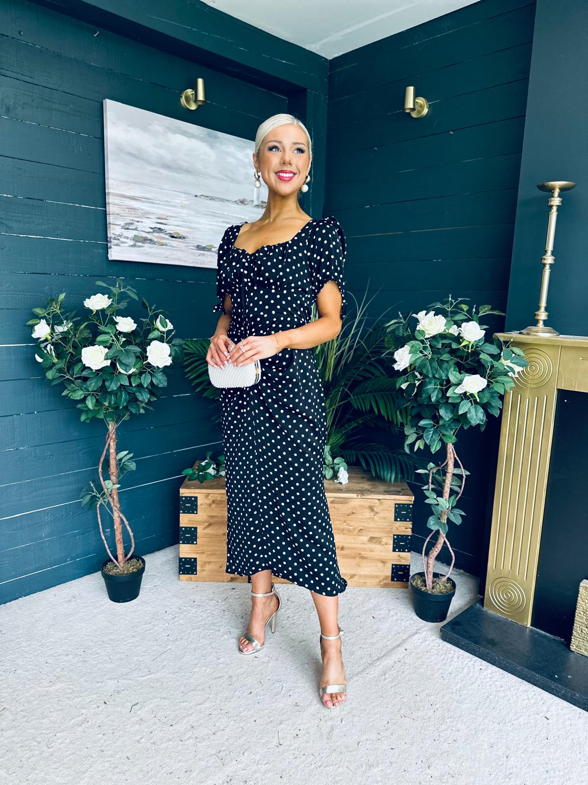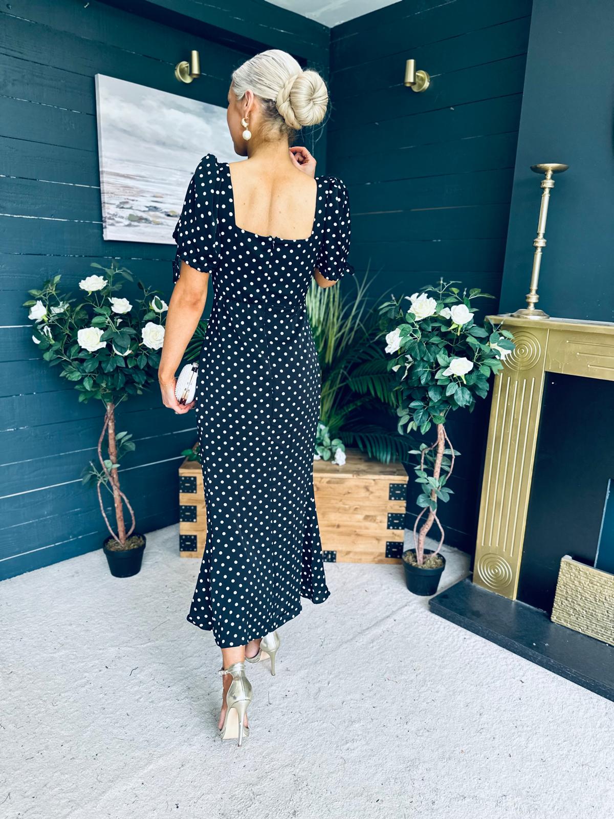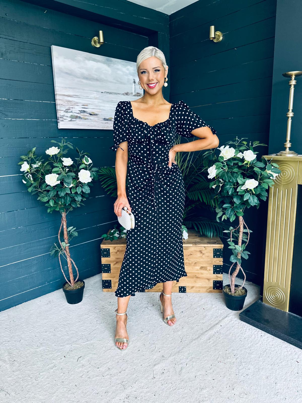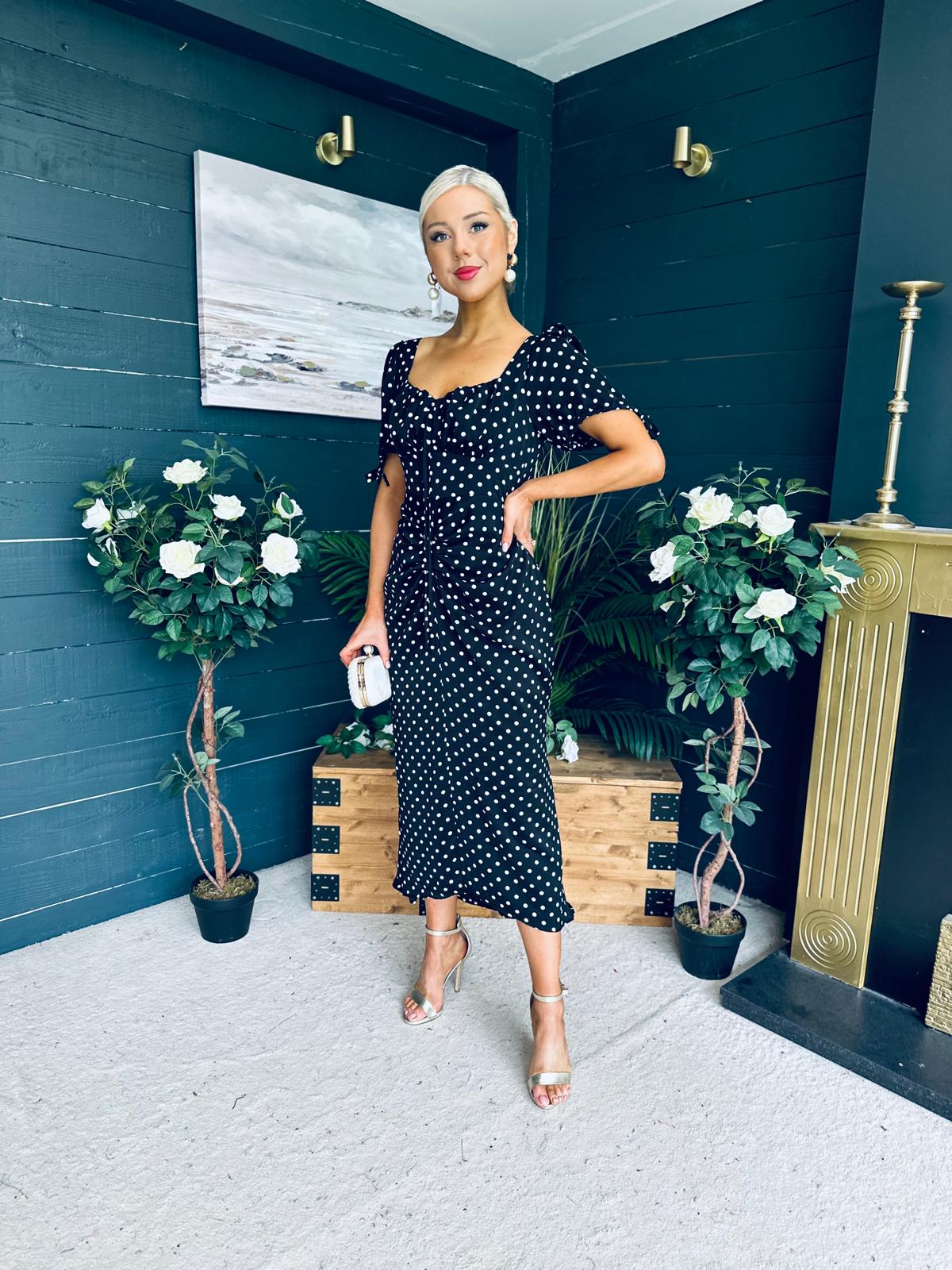 Dove Ruched Detail Midi Dress Polka Black
