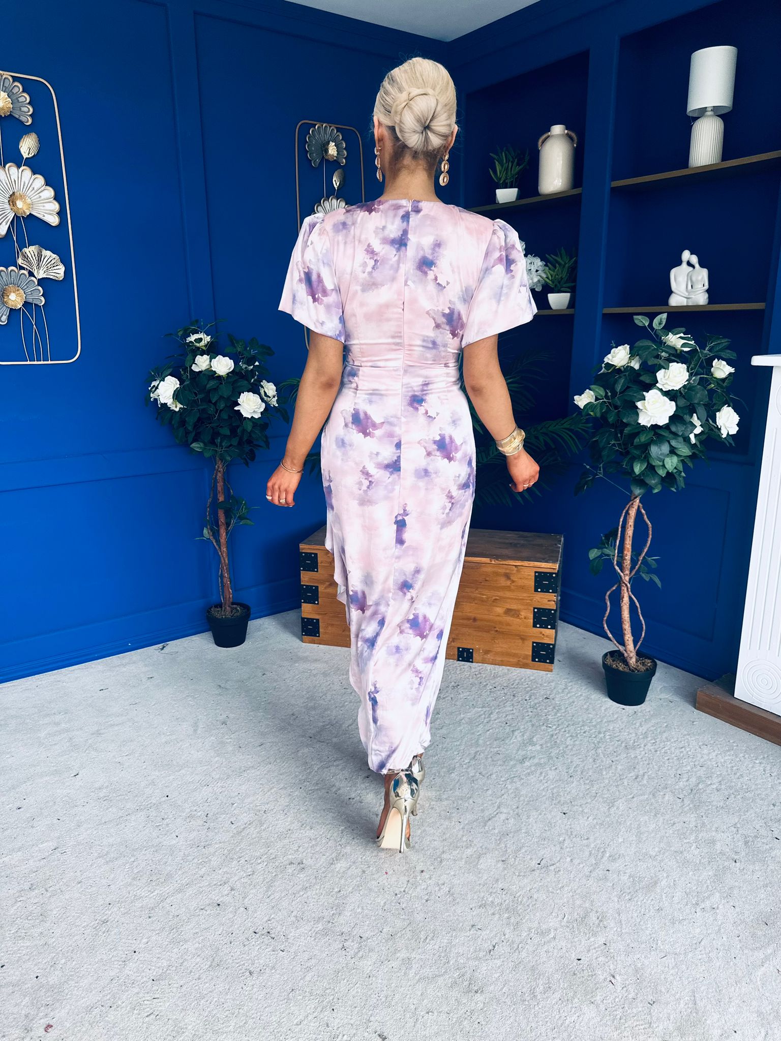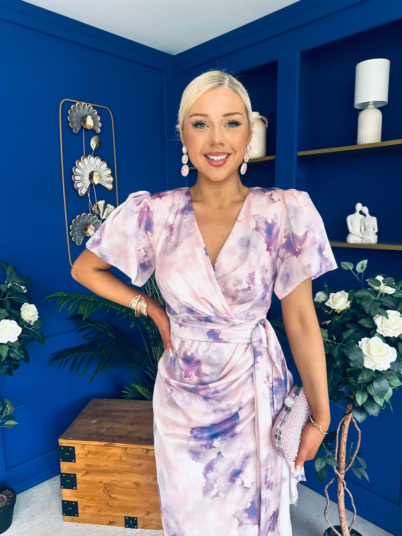 Featuring a vibrant print and flattering wrap-front silhouette, it's the perfect choice for garden parties, brunches, or special occasions.
