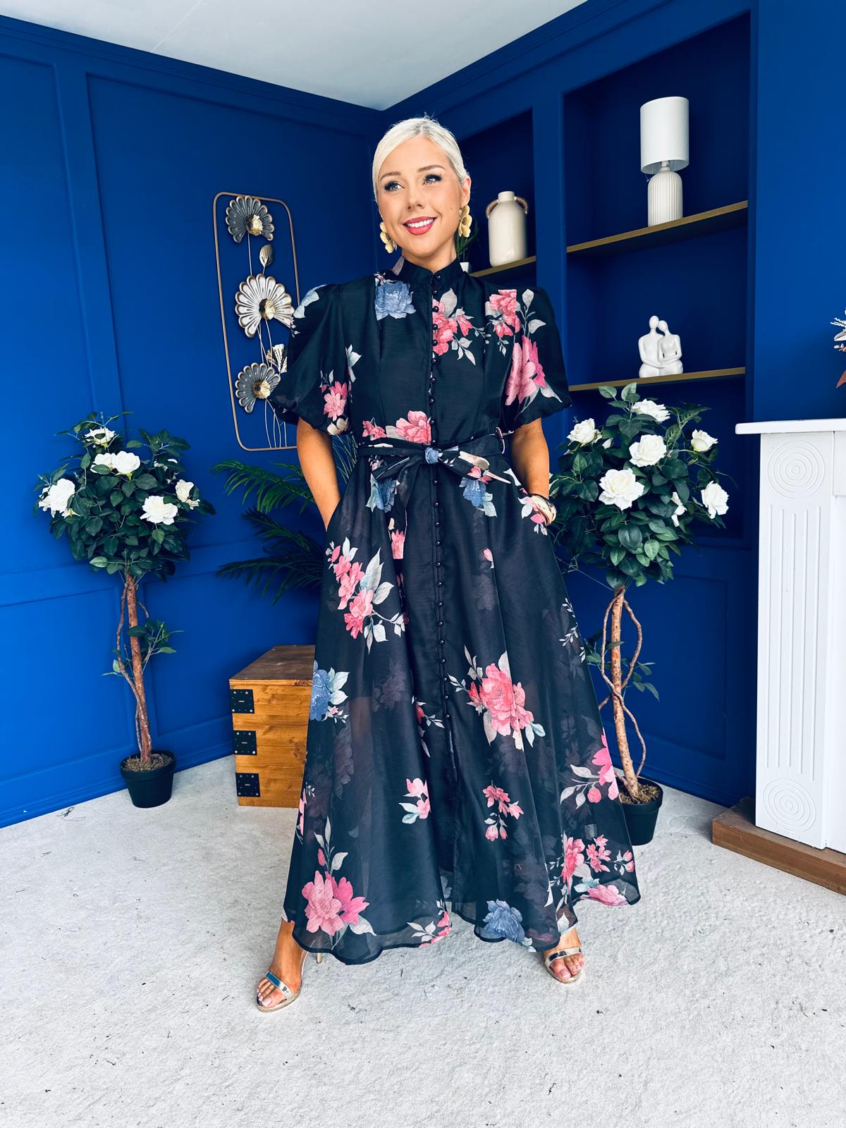 Elizabeth Detailed Shirt Dress Floral Black