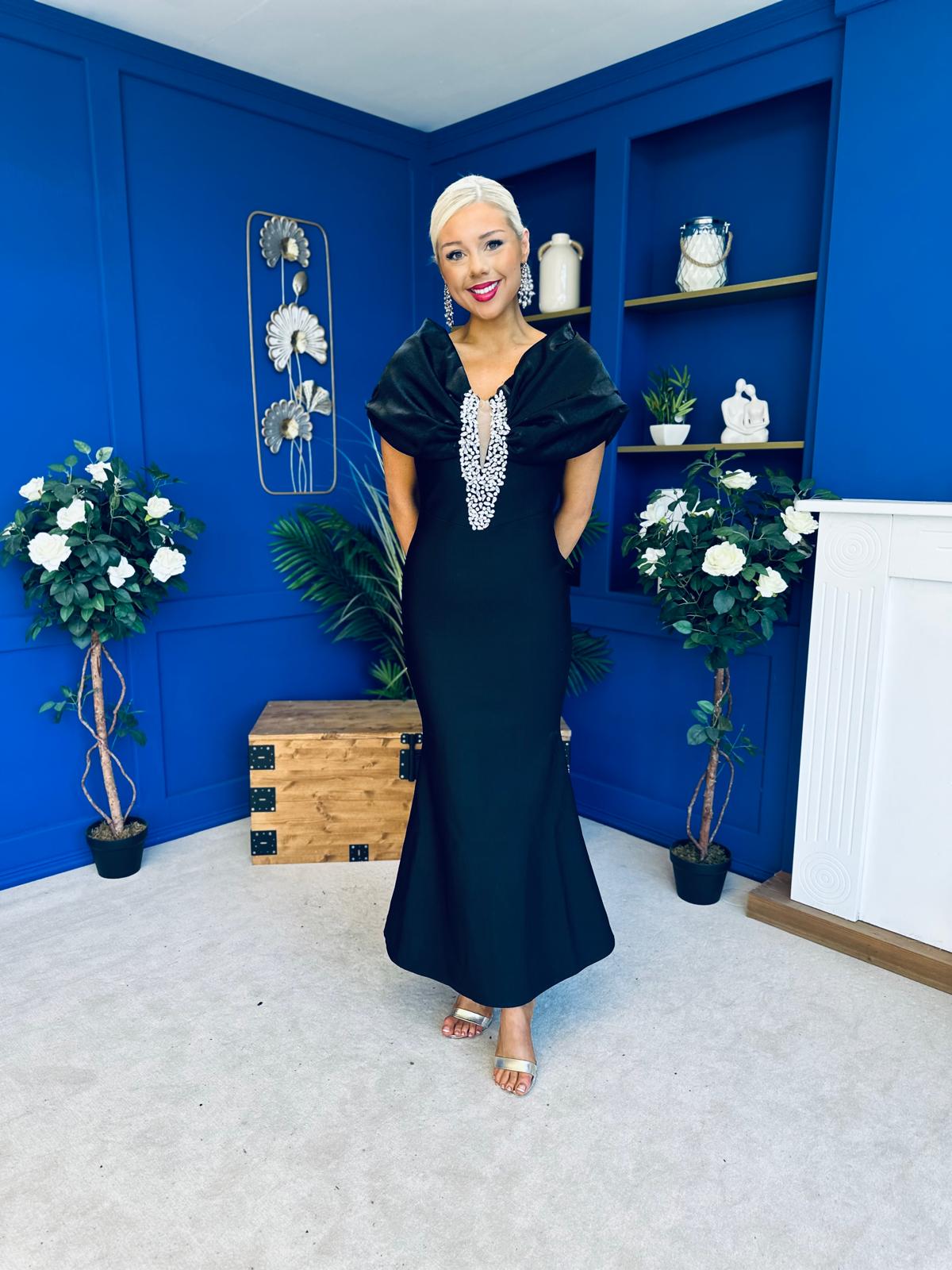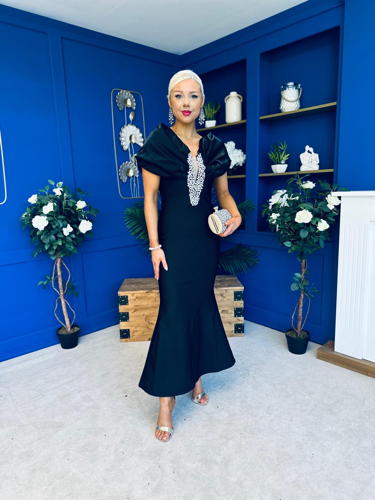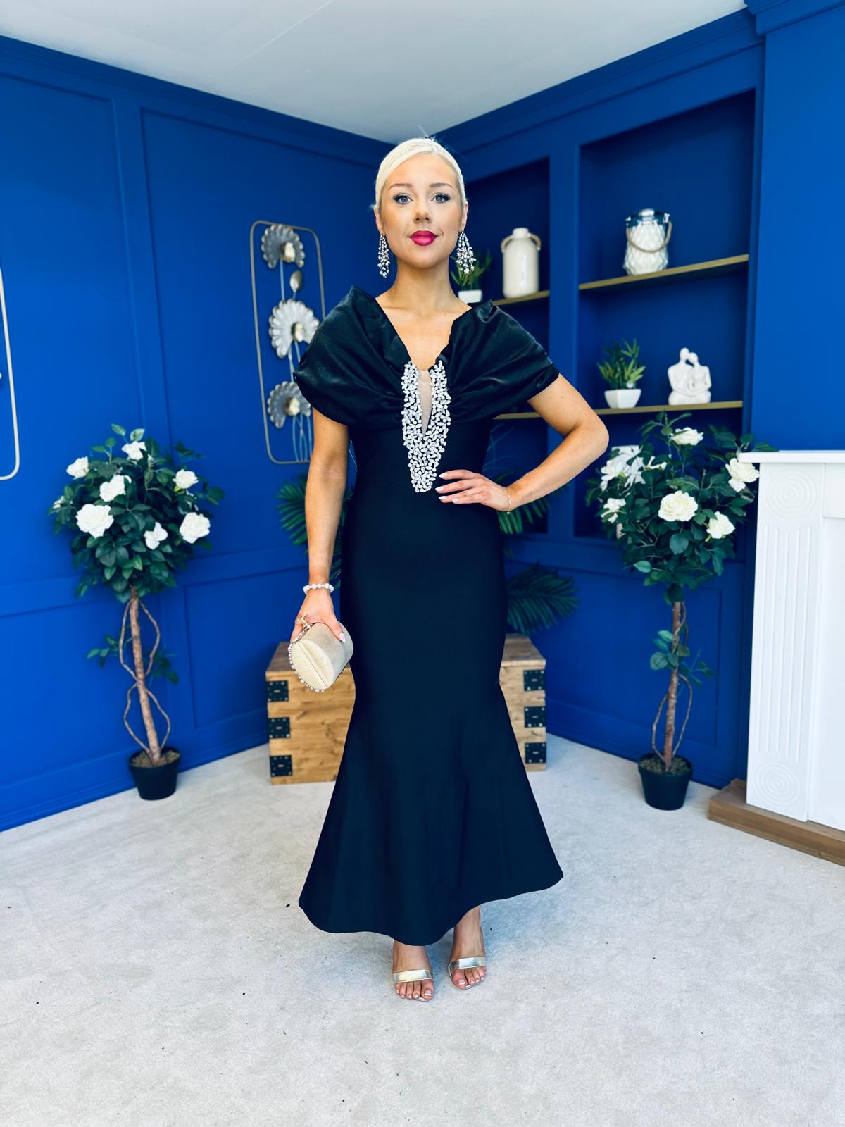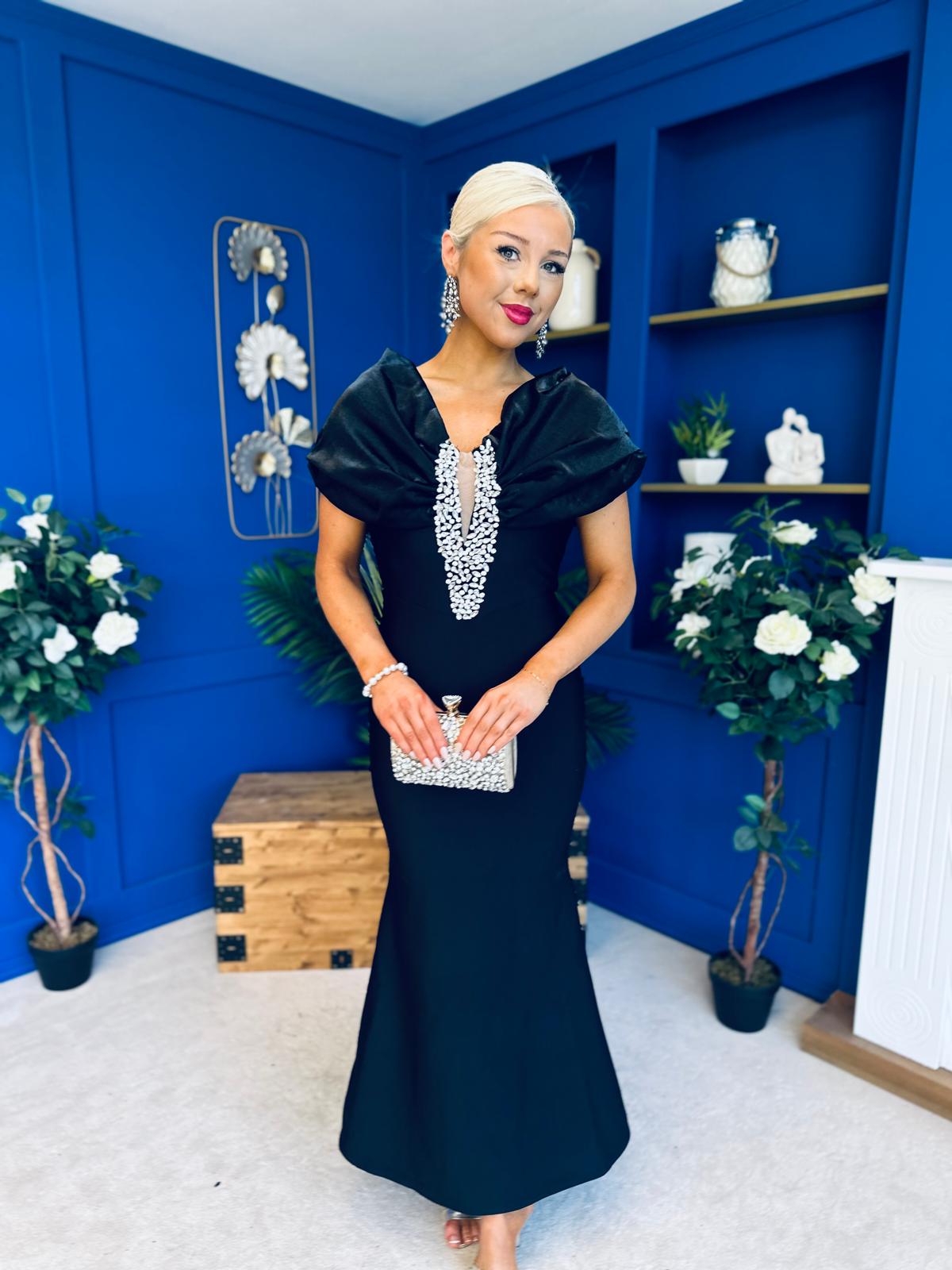 From the fabulous neckline detail, the embellishment, the most amazing fabric & flowing cut this dress is truly one of a kind ❤️❤️