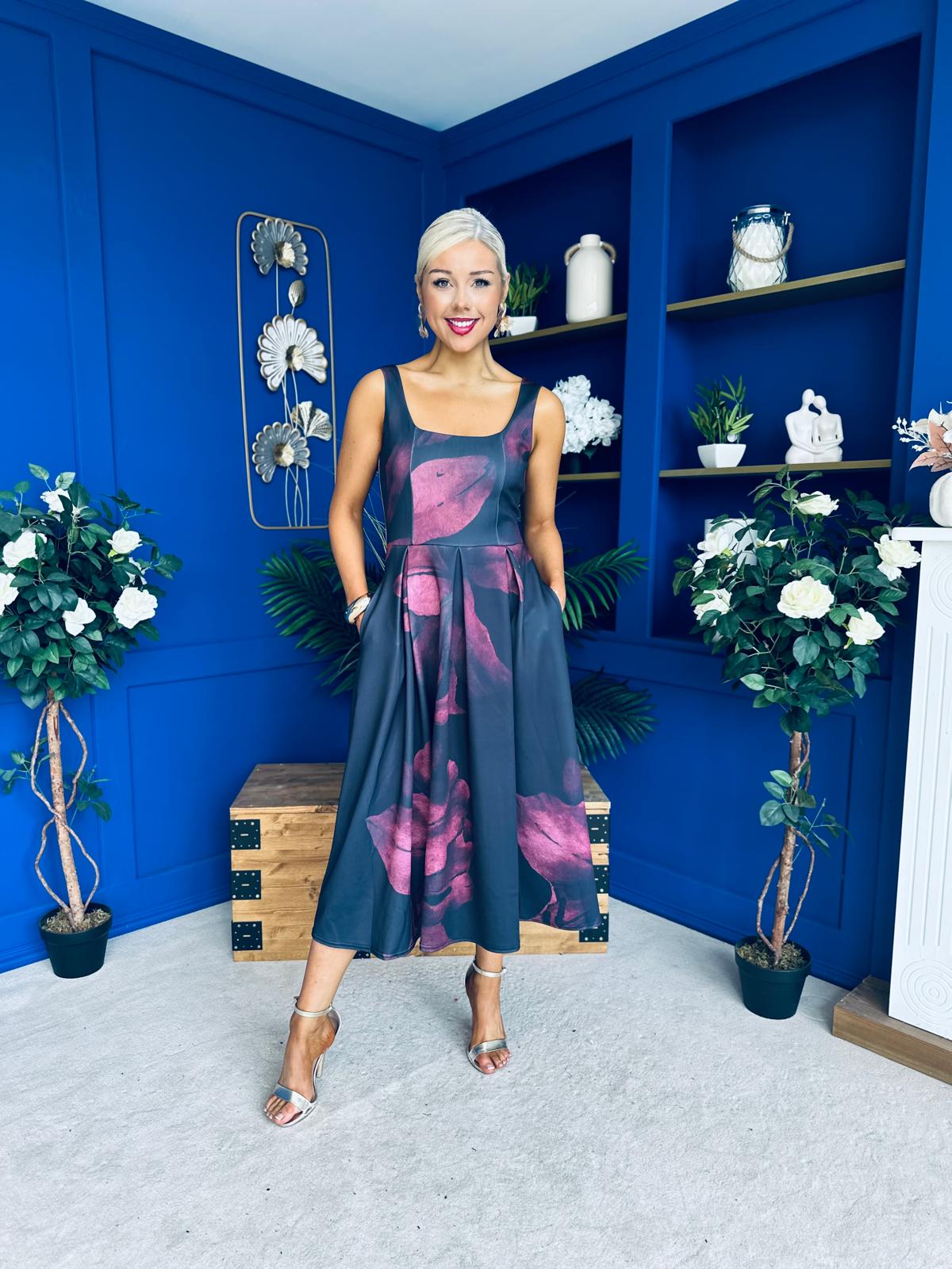 Erica Square Neck Midi Dress Wine Floral