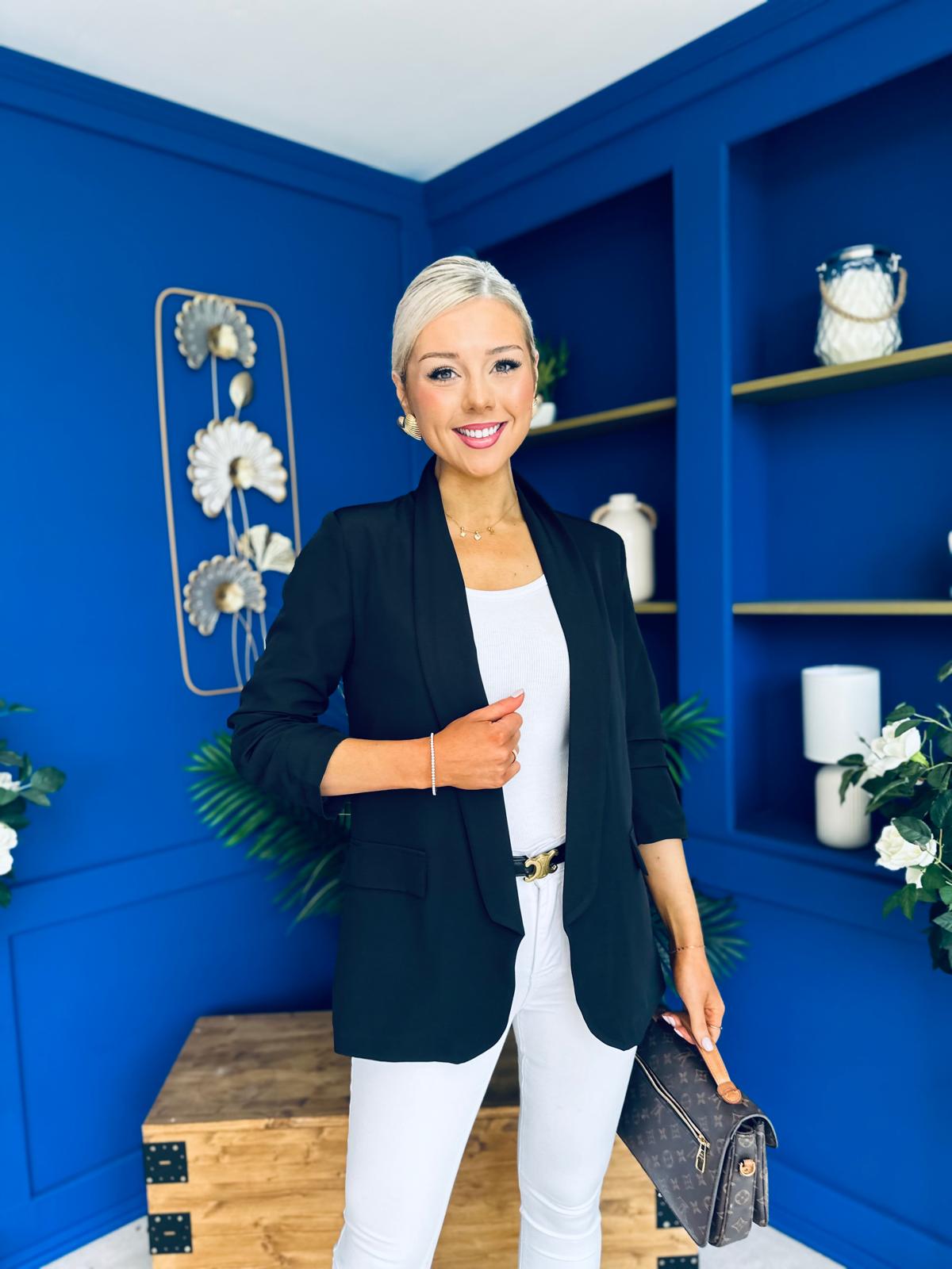 Fabulous Blazer with Tux style lapel & gathered sleeve to dress up any outfit