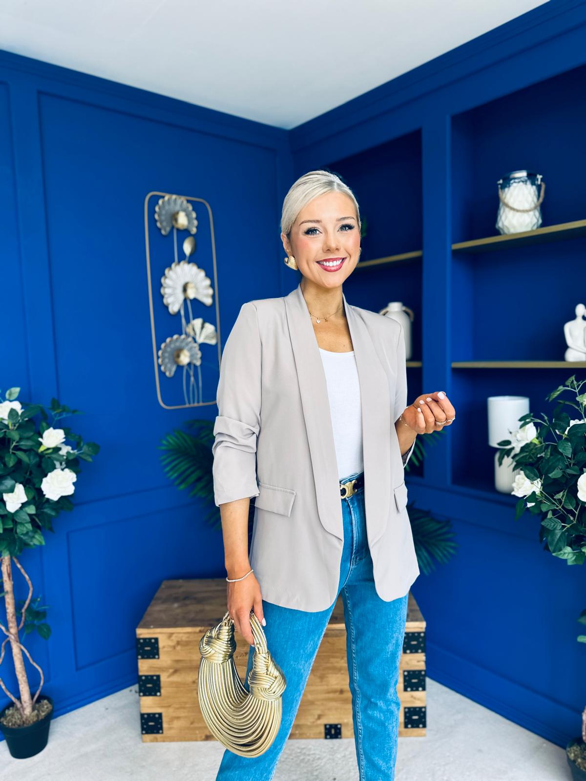 Fabulous Blazer with Tux style lapel & gathered sleeve to dress up any outfit