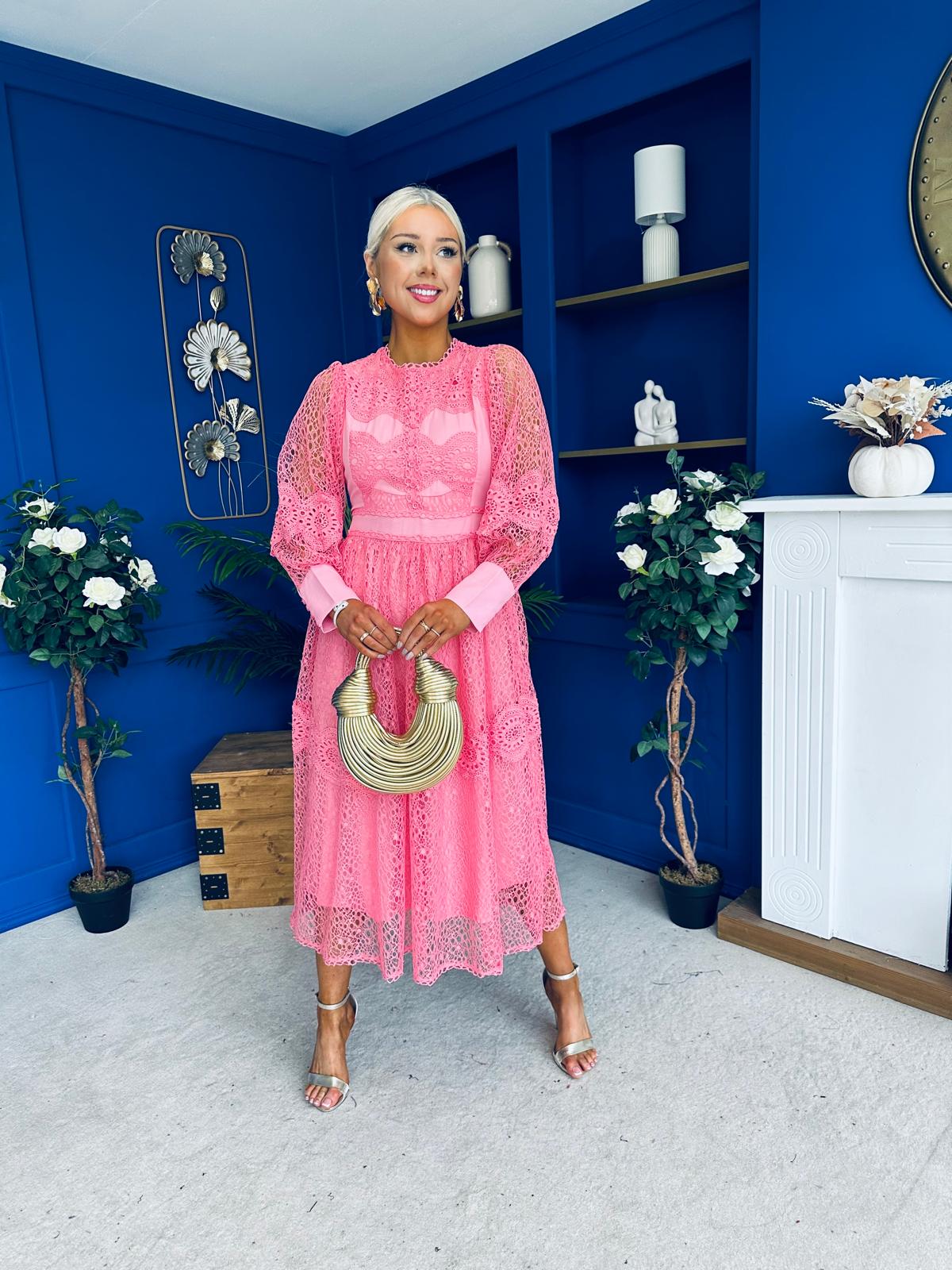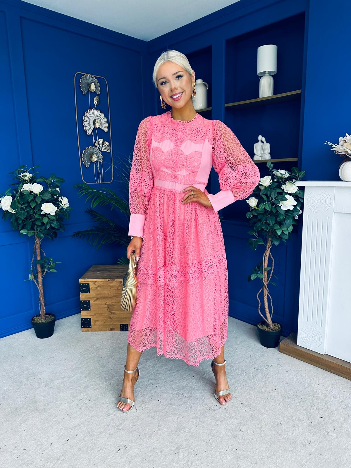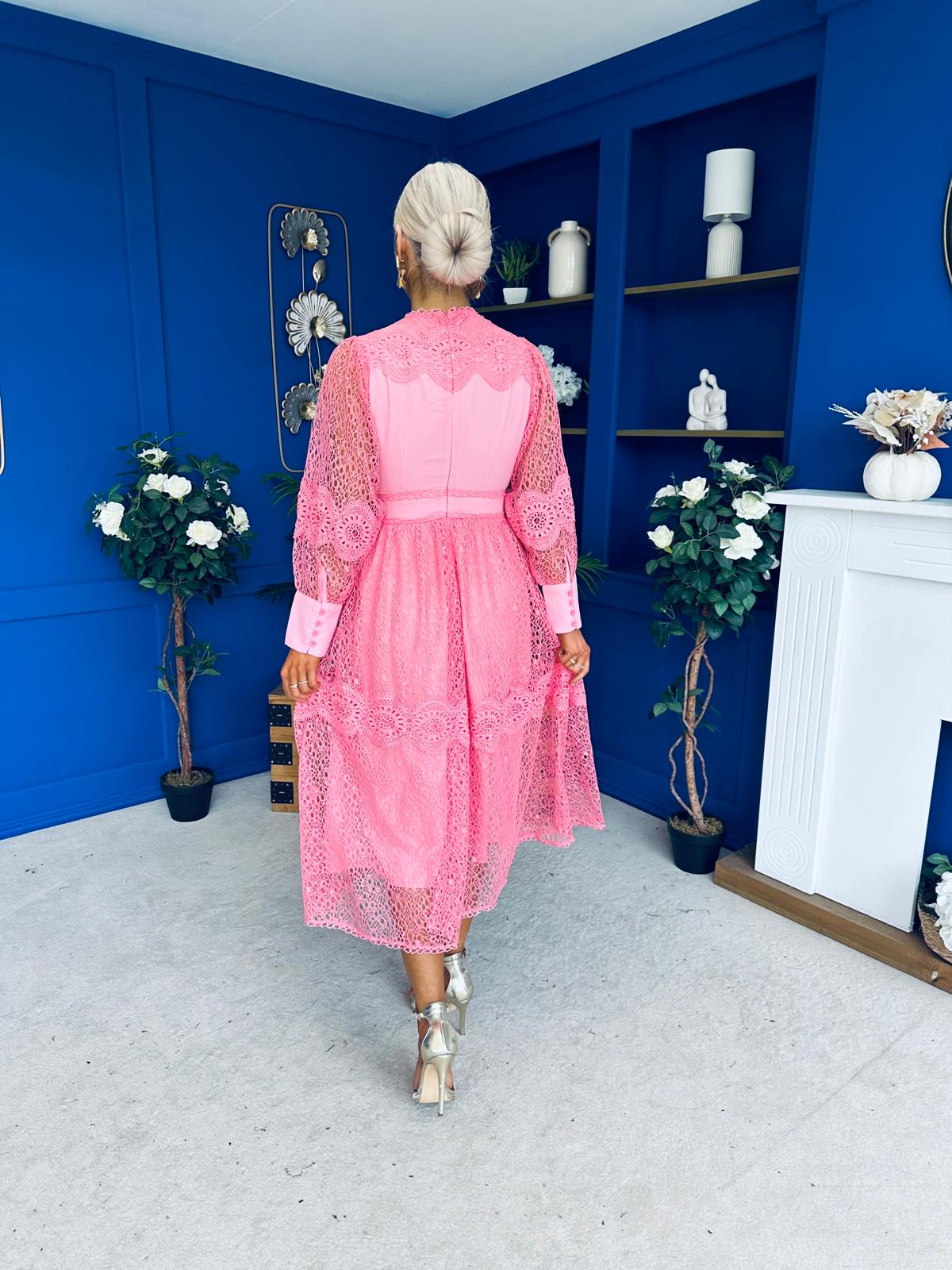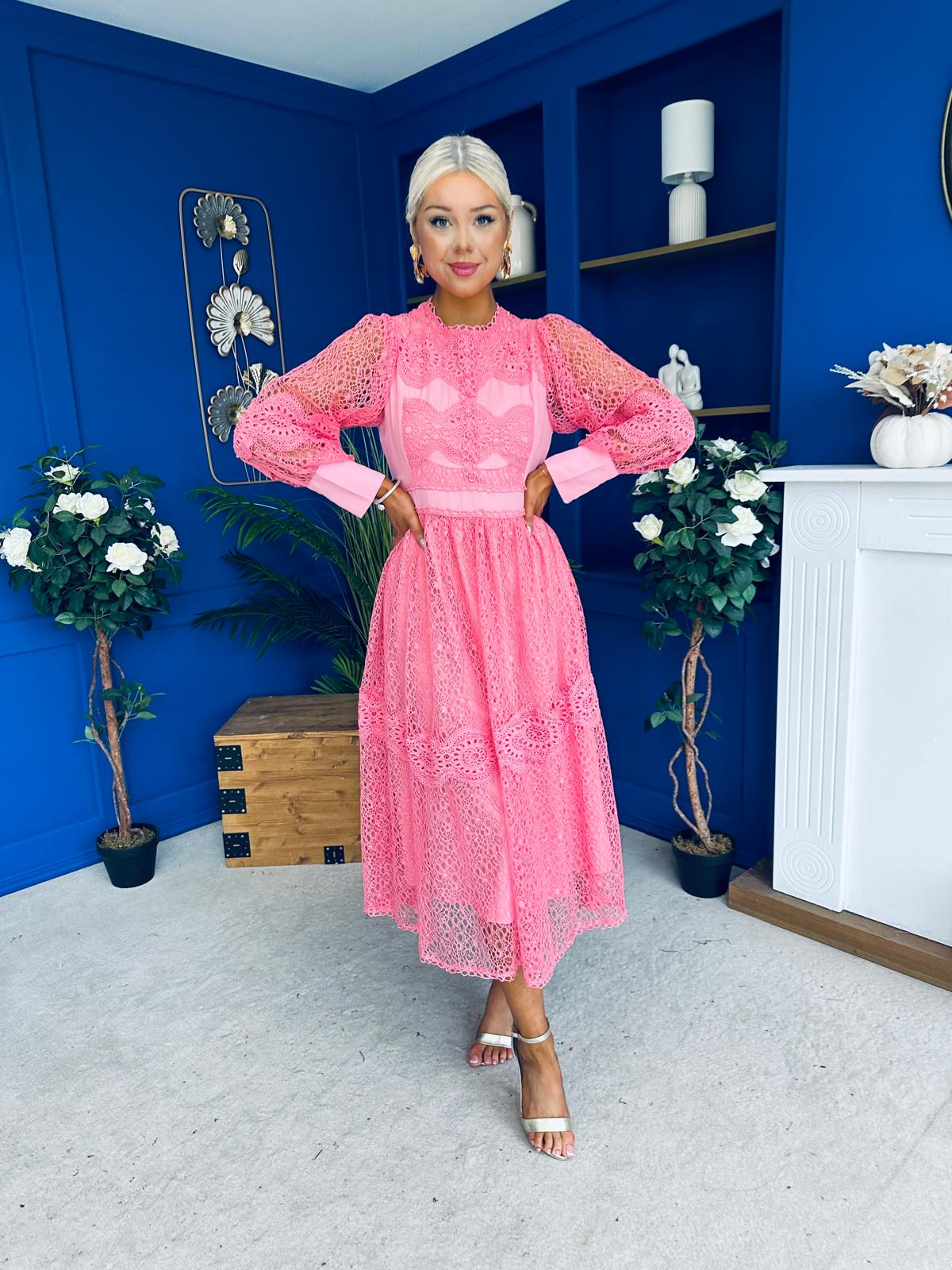Fergie Crochet Detail Occasion Dress Pink