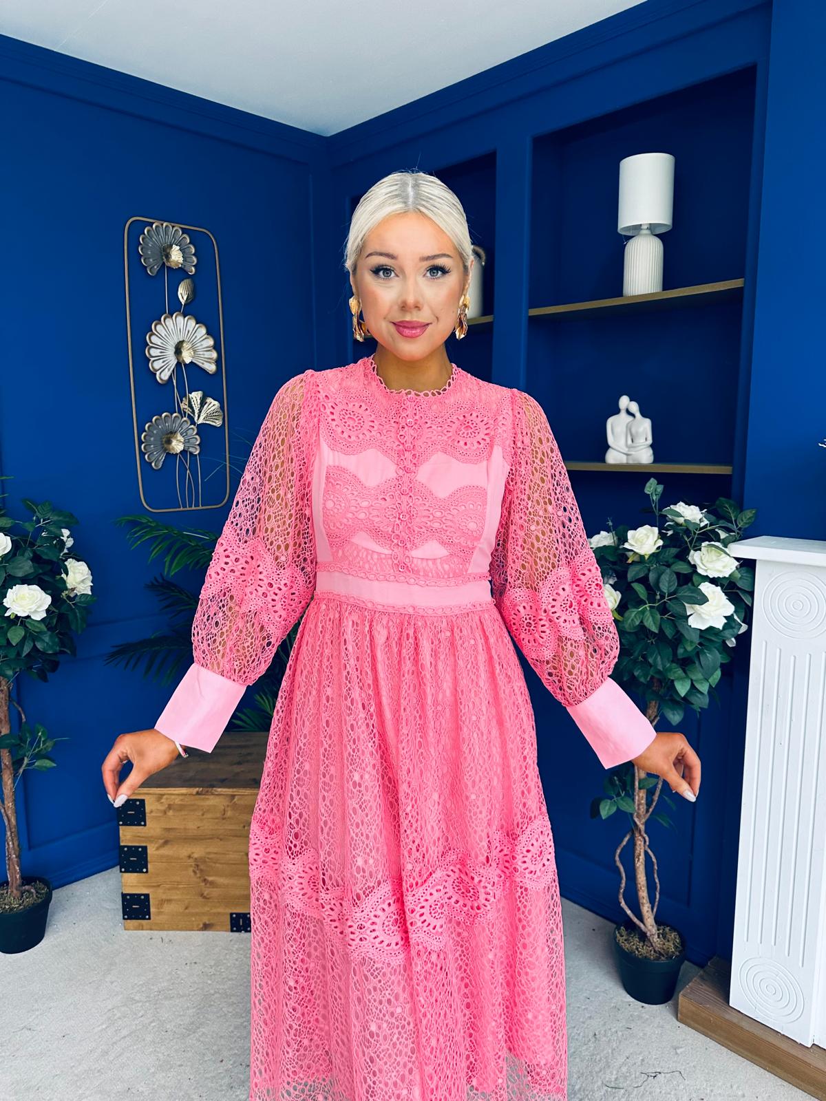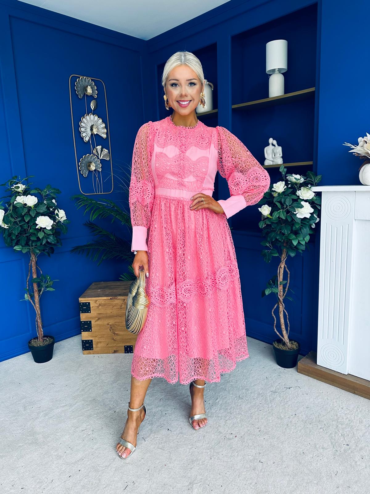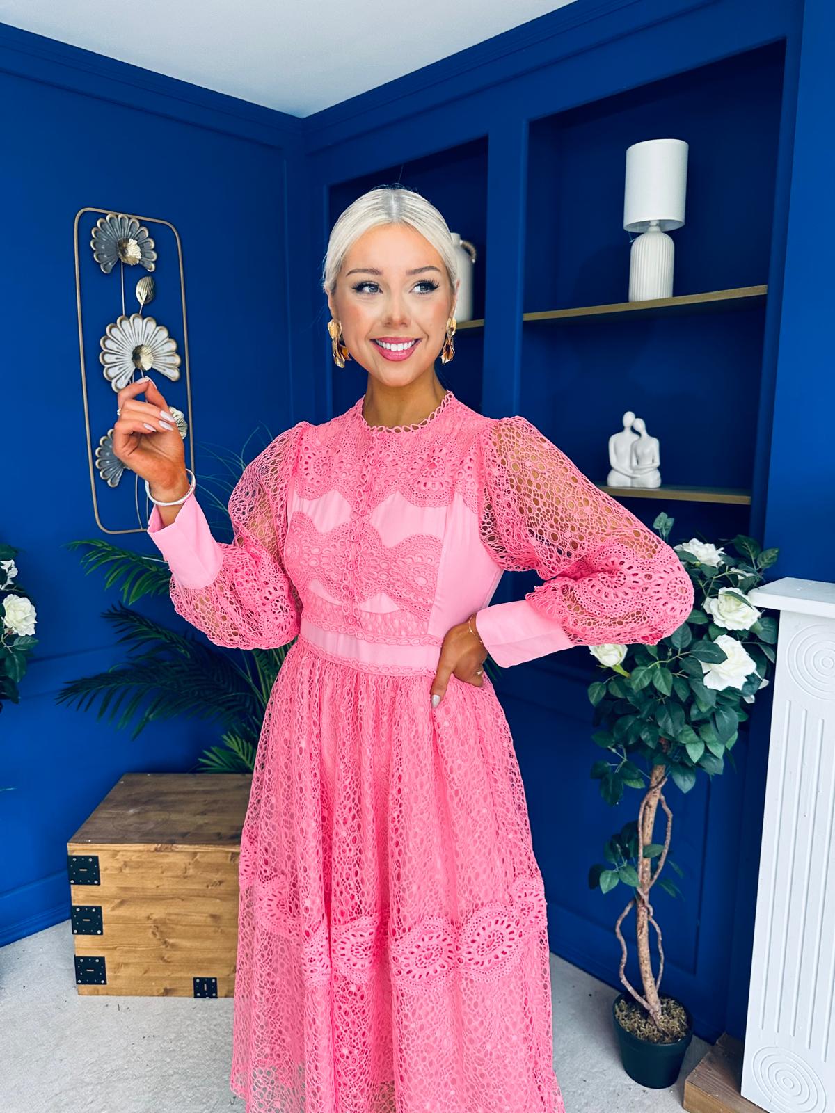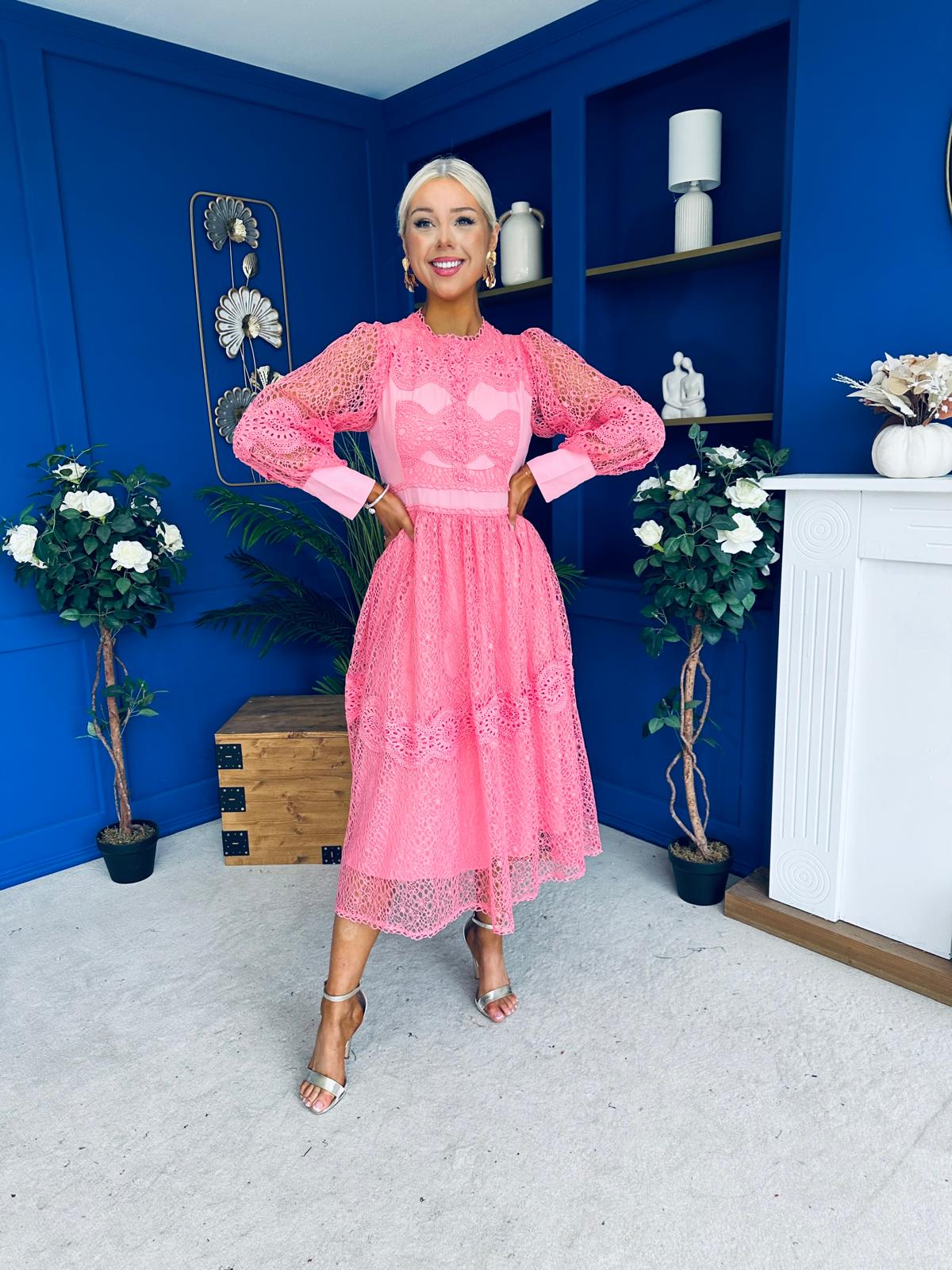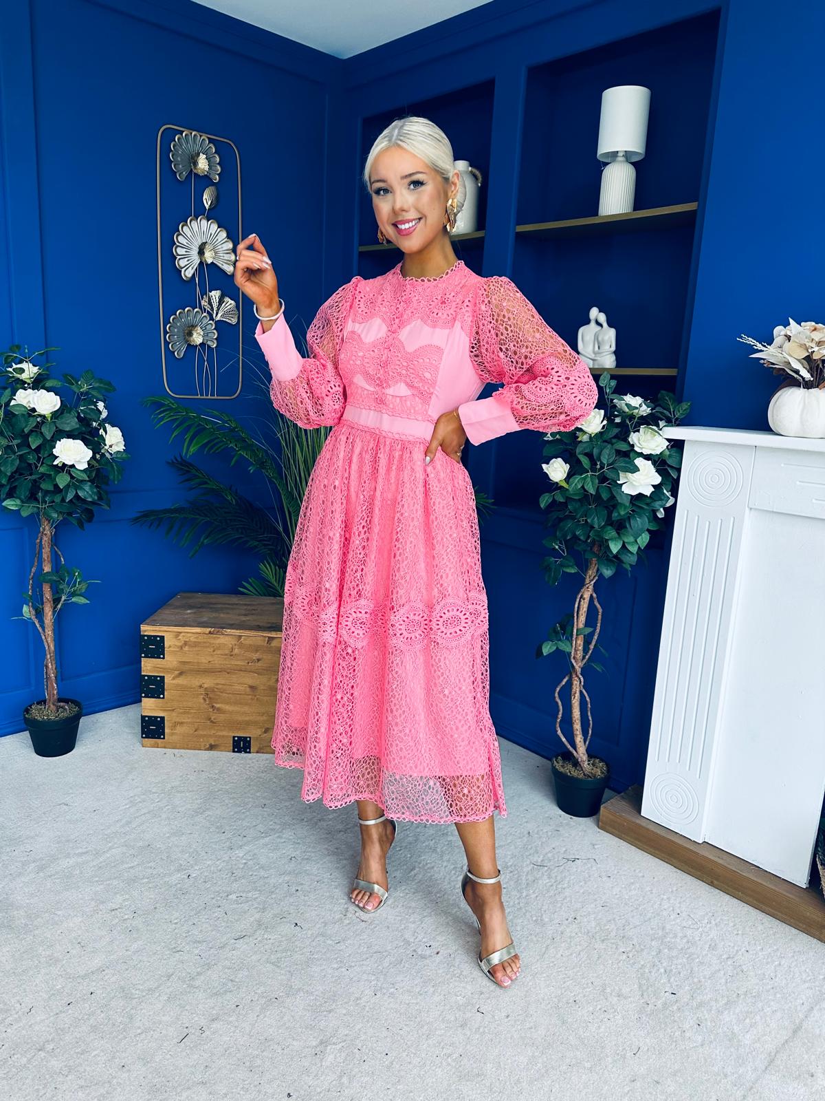 Fergie Crochet Detail Occasion Dress Pink