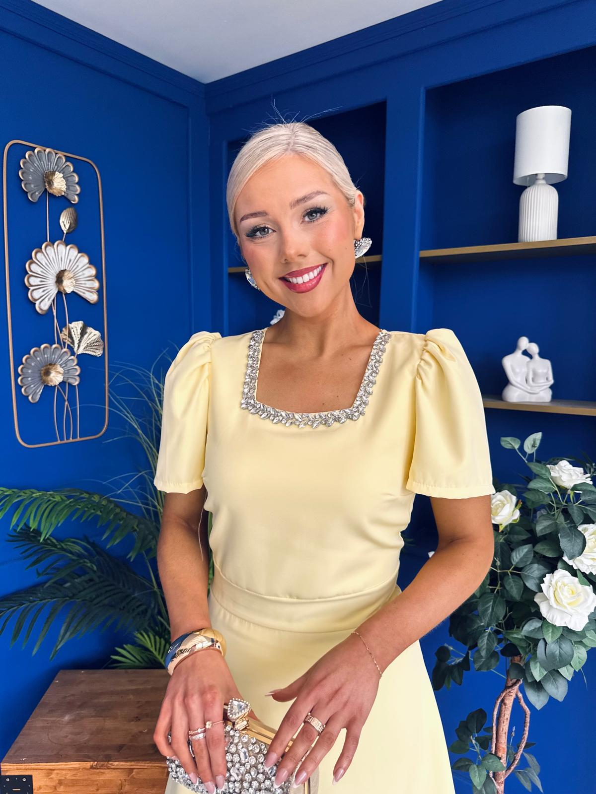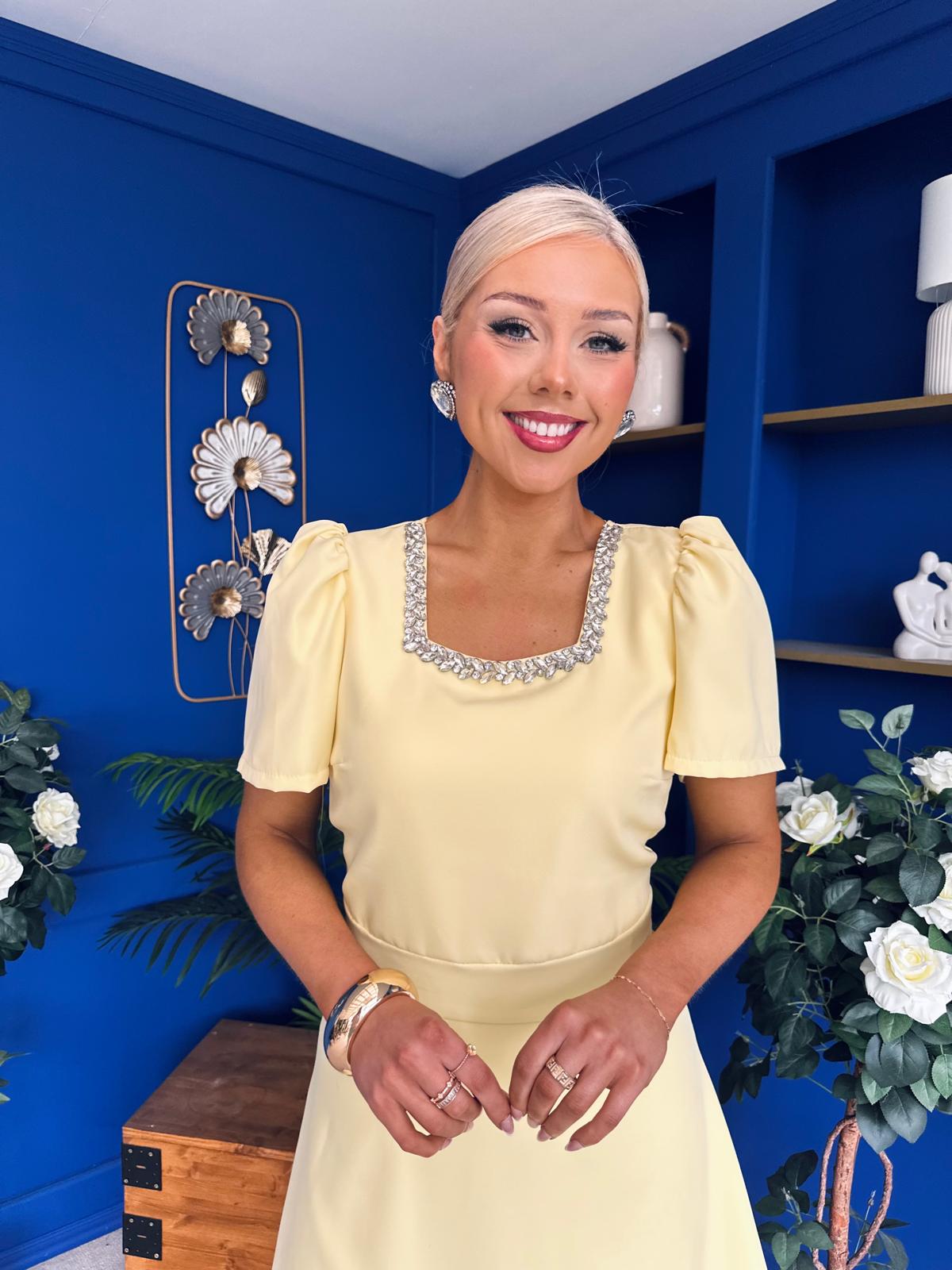Florence Embellished Occasion Midi Dress Yellow