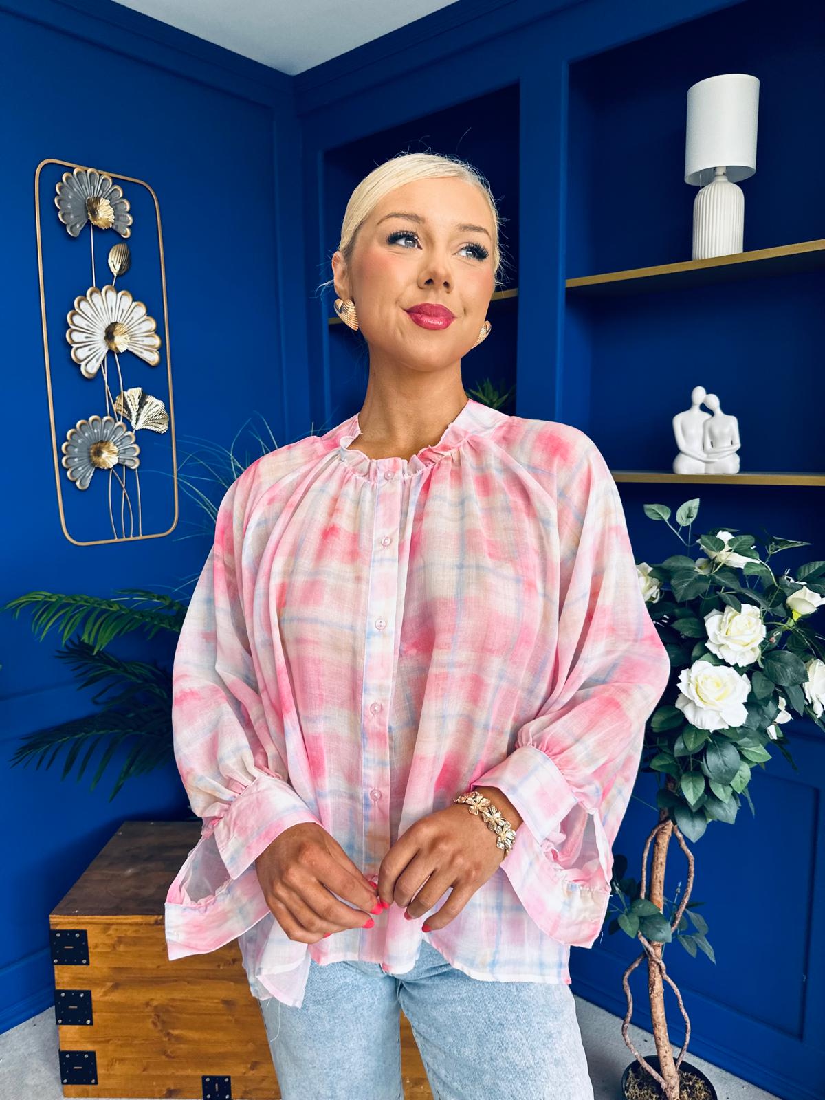 Franki Ombre Check Sleeve Blouse Pink