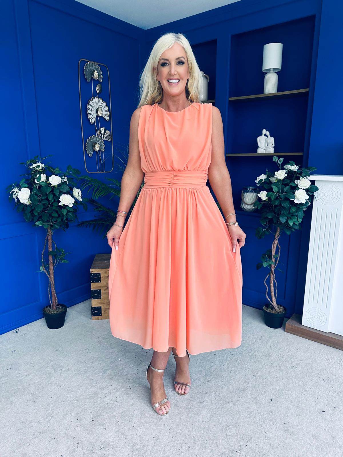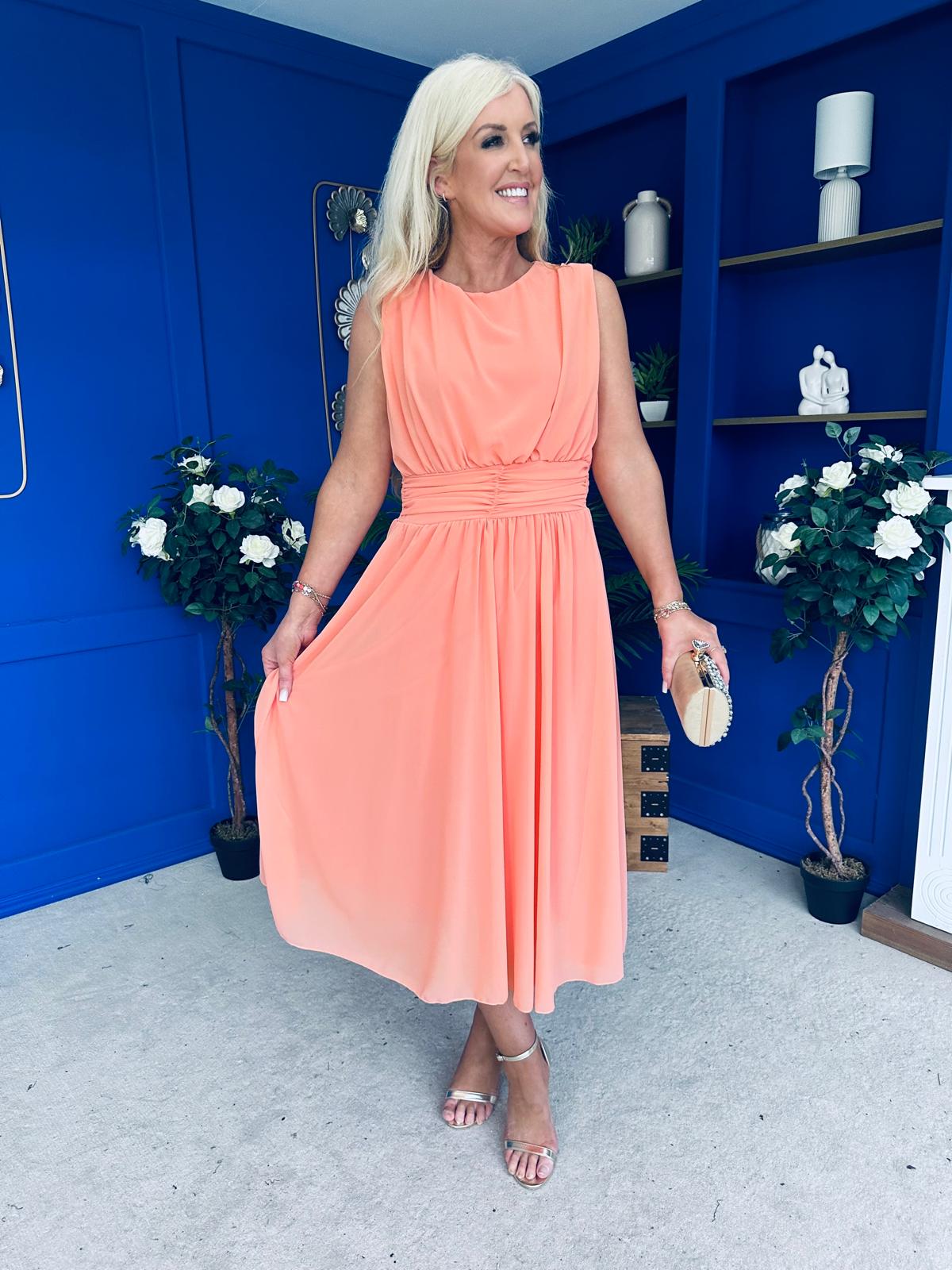 Freya Gathered Detail Midi Dress Peach