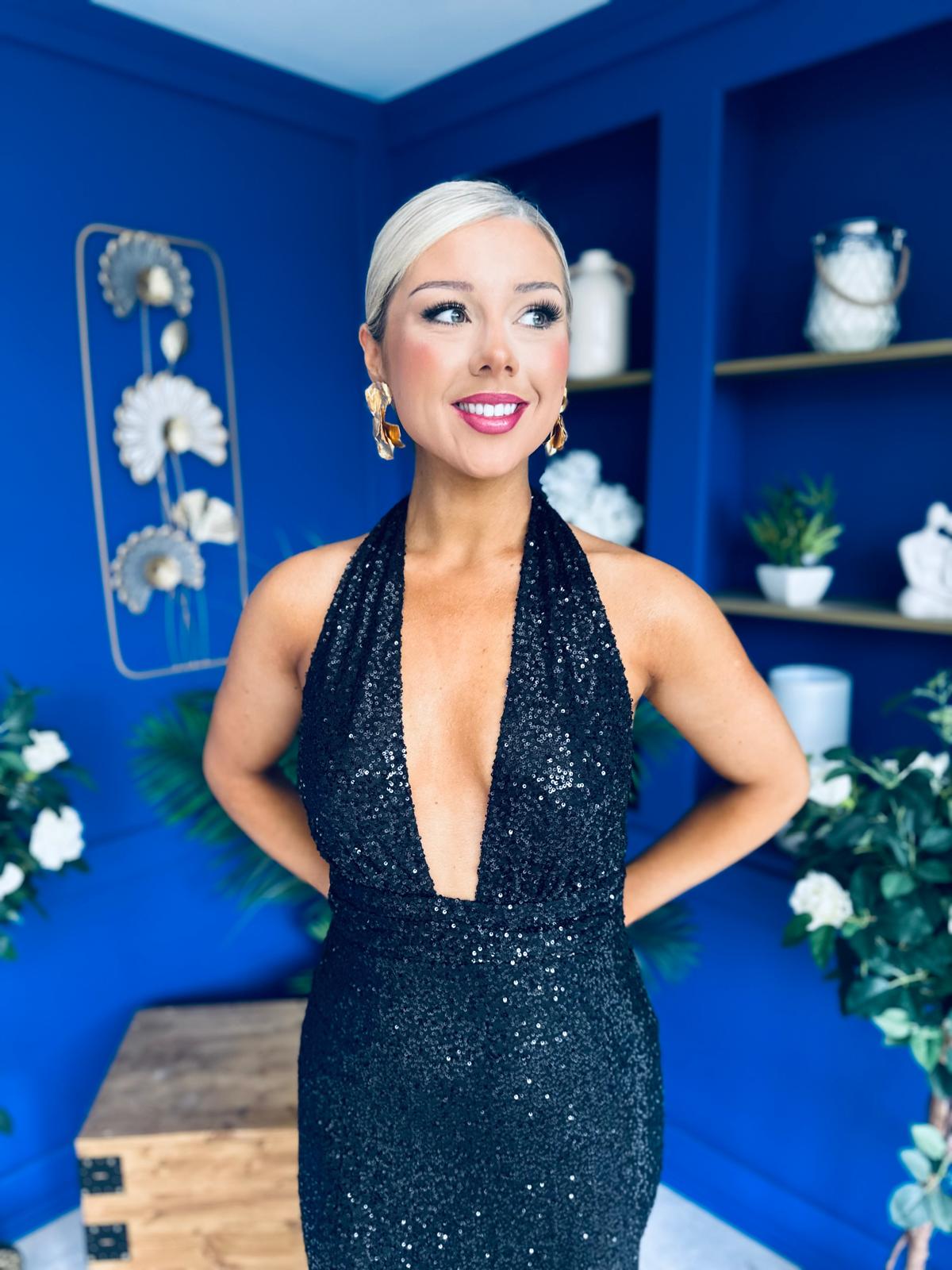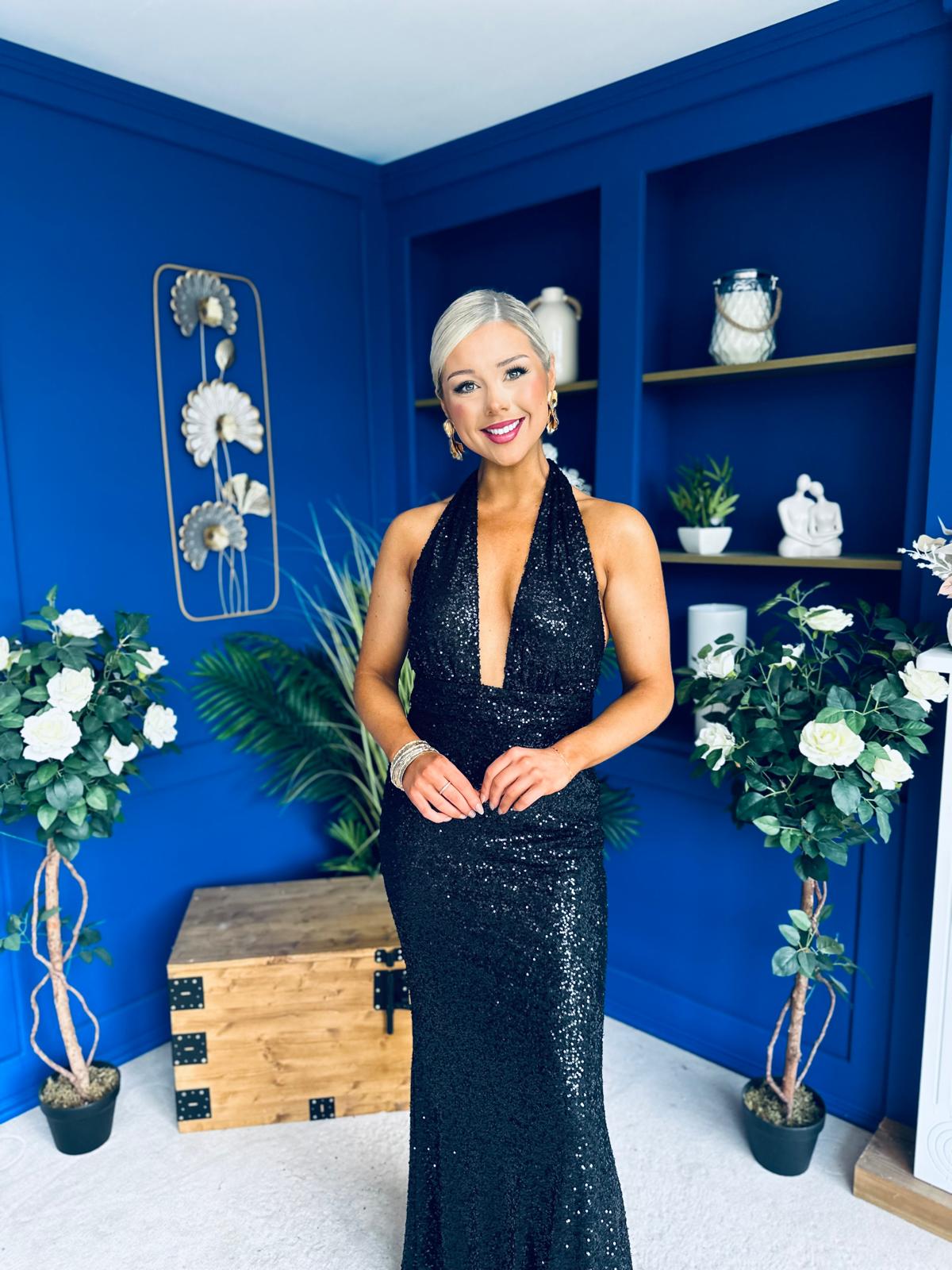 The amazing Gayle occasion dress, Halterneck design & the most amazing flowing skirt, is sure to make an entrance at any occasion.