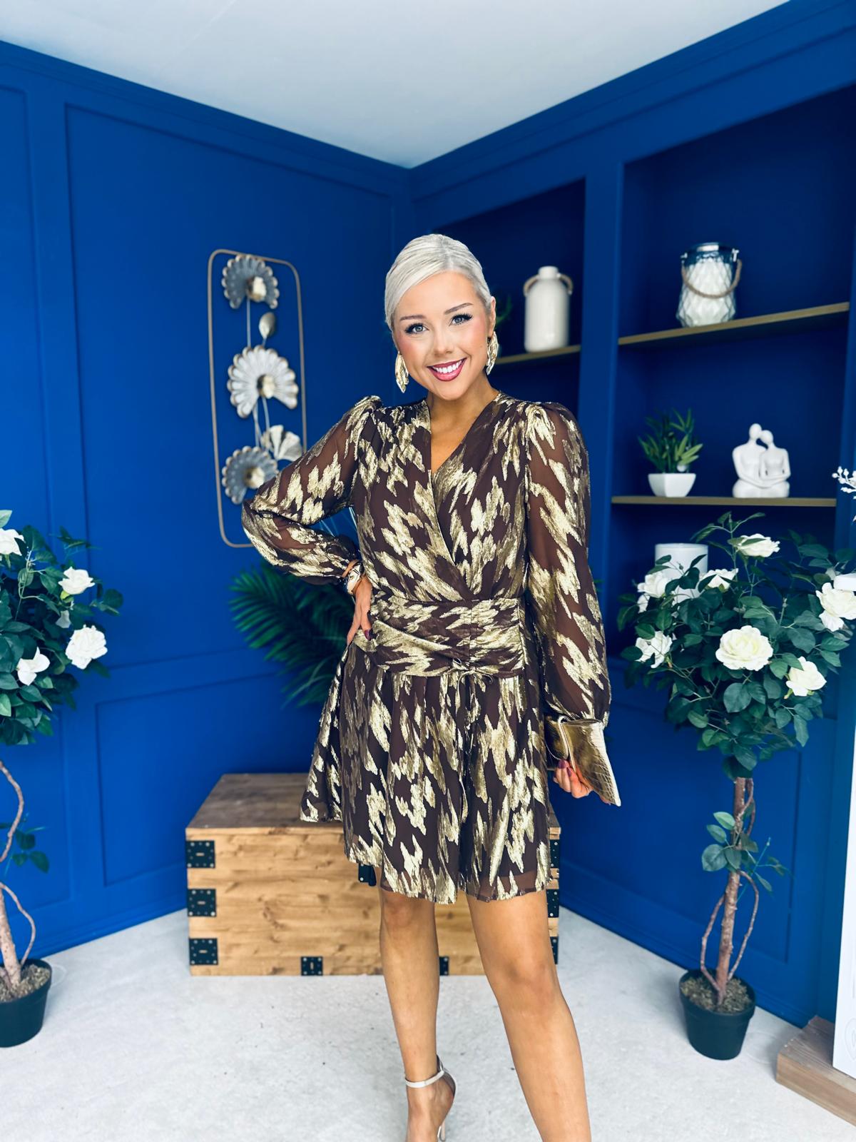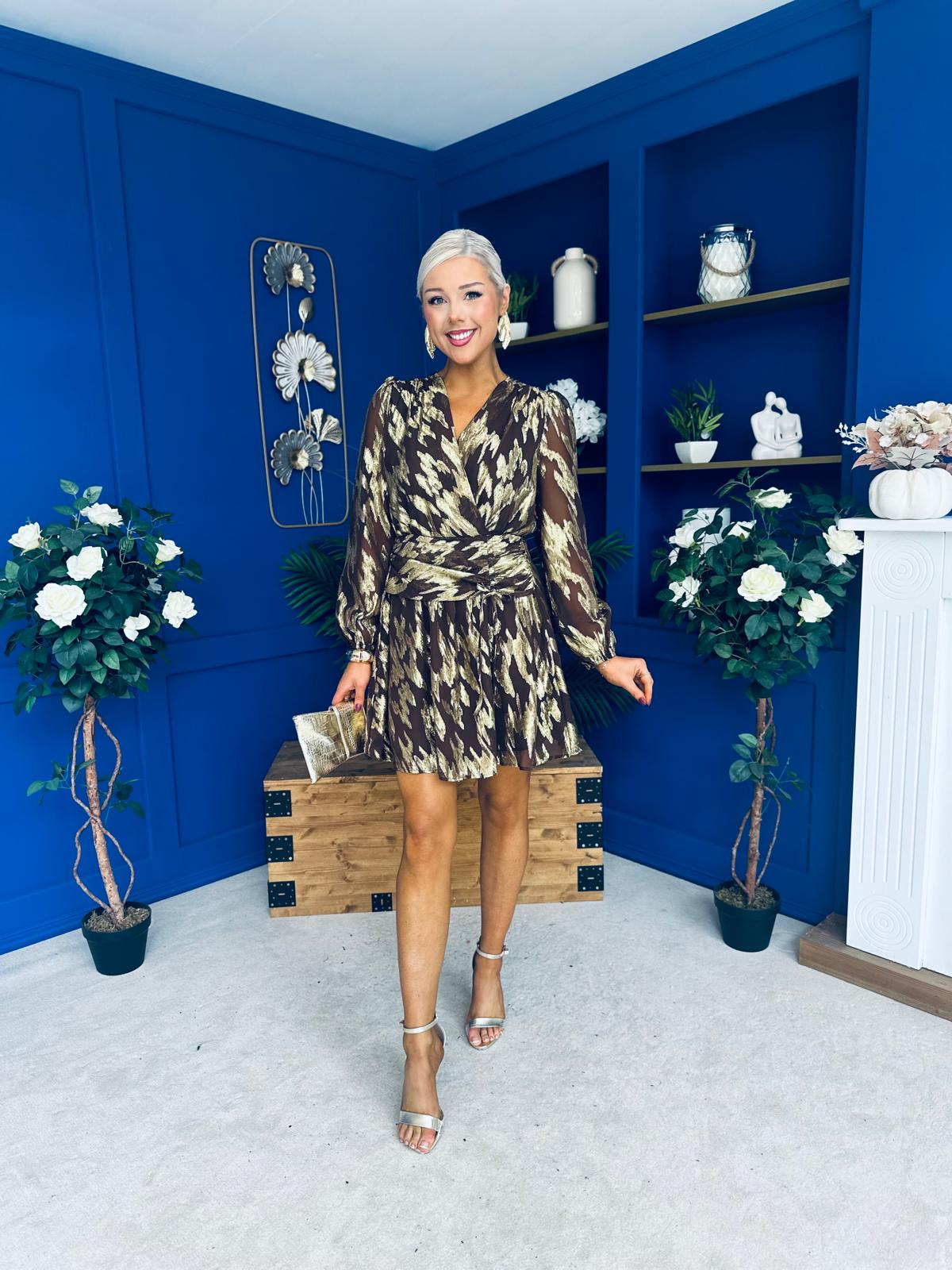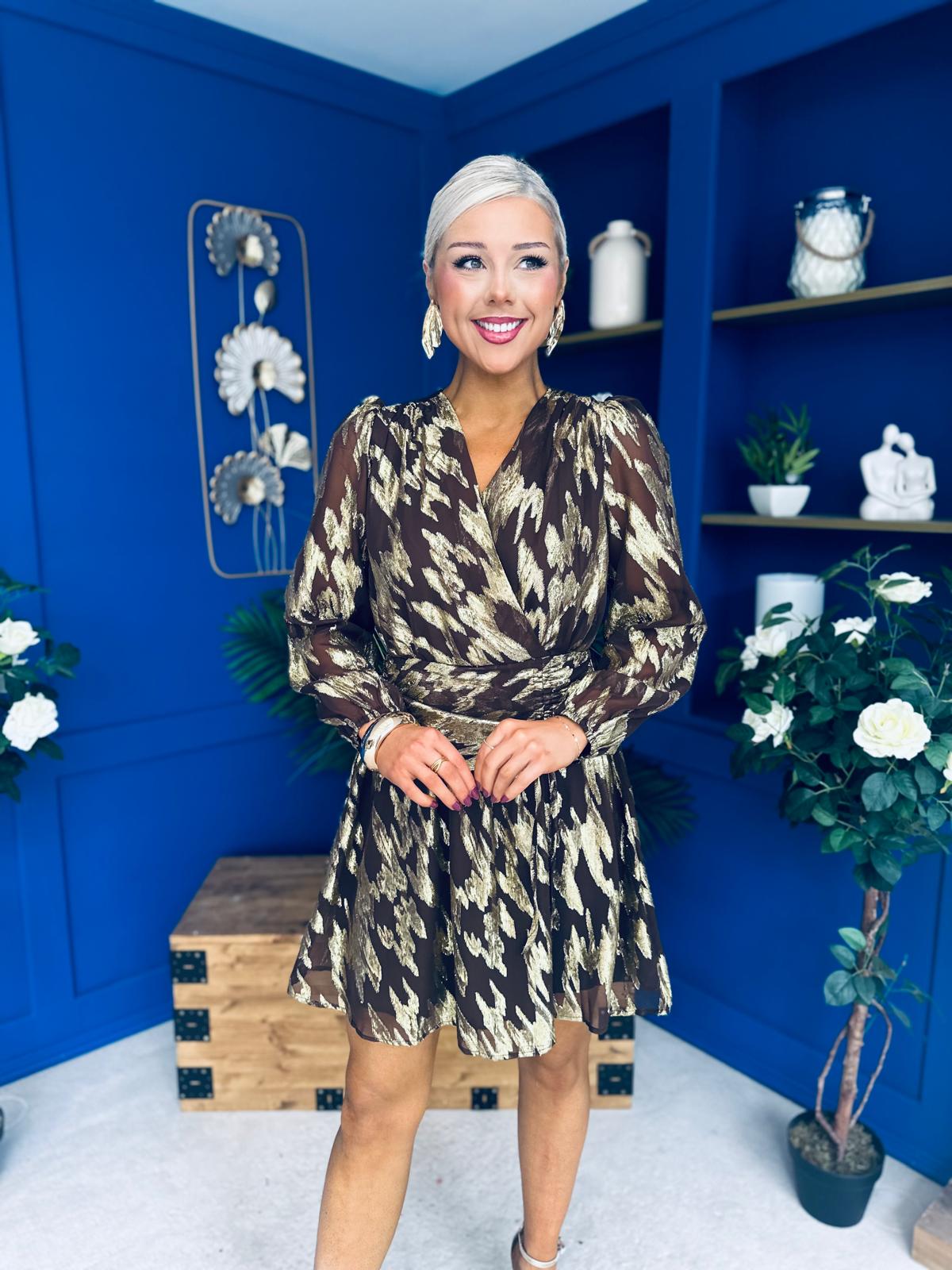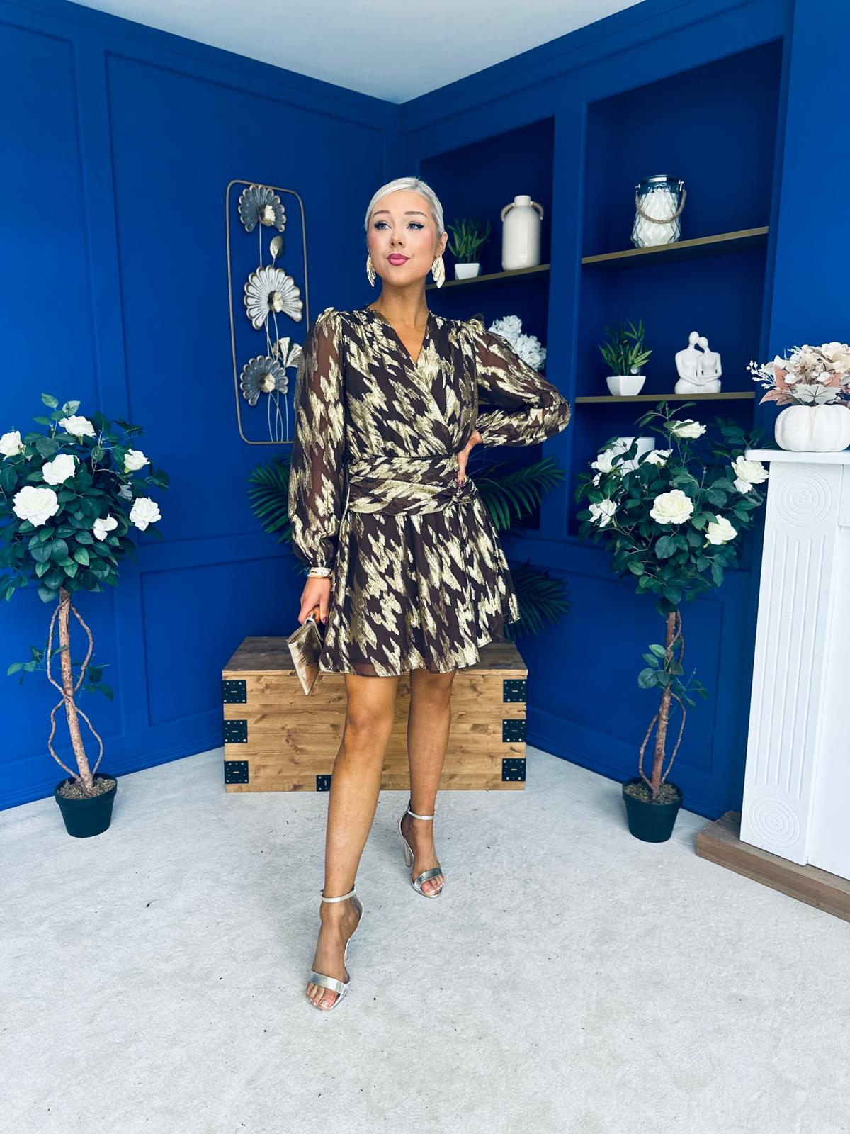Helena Metallic Leaf Mini Dress Coco Pre Order 3 Oct