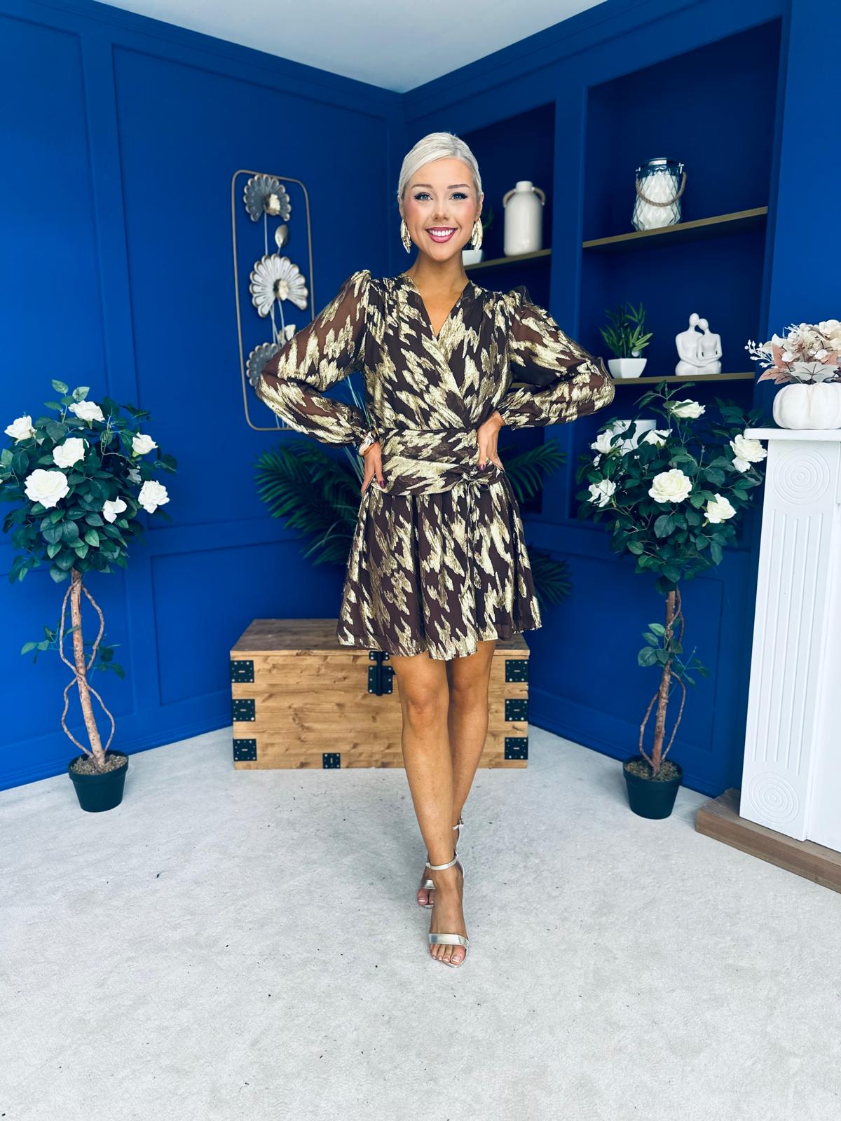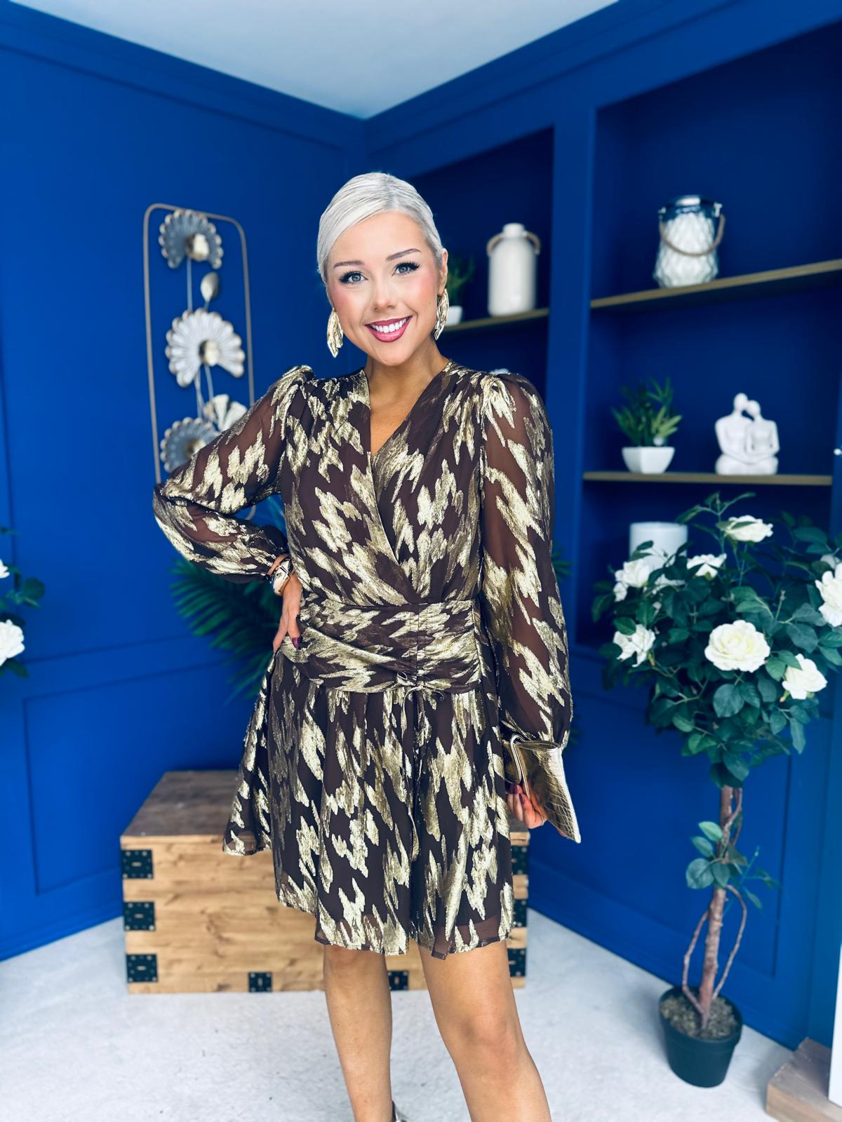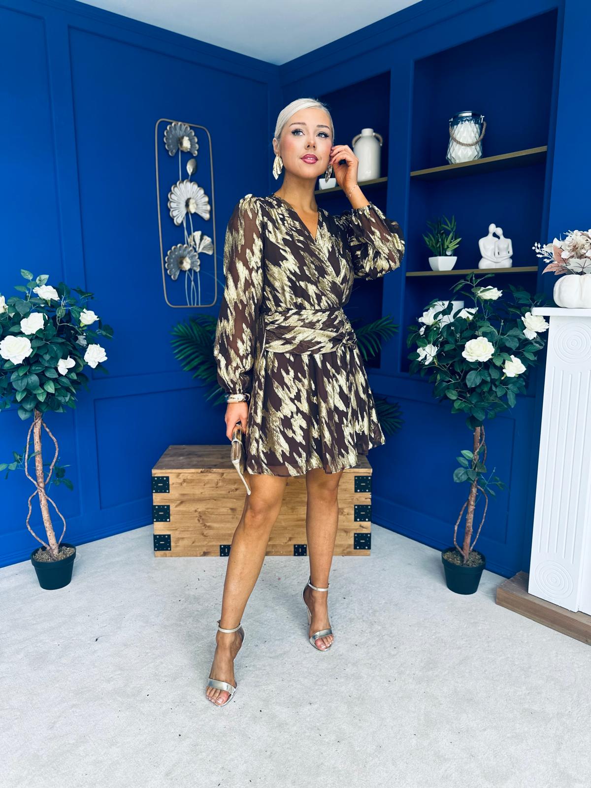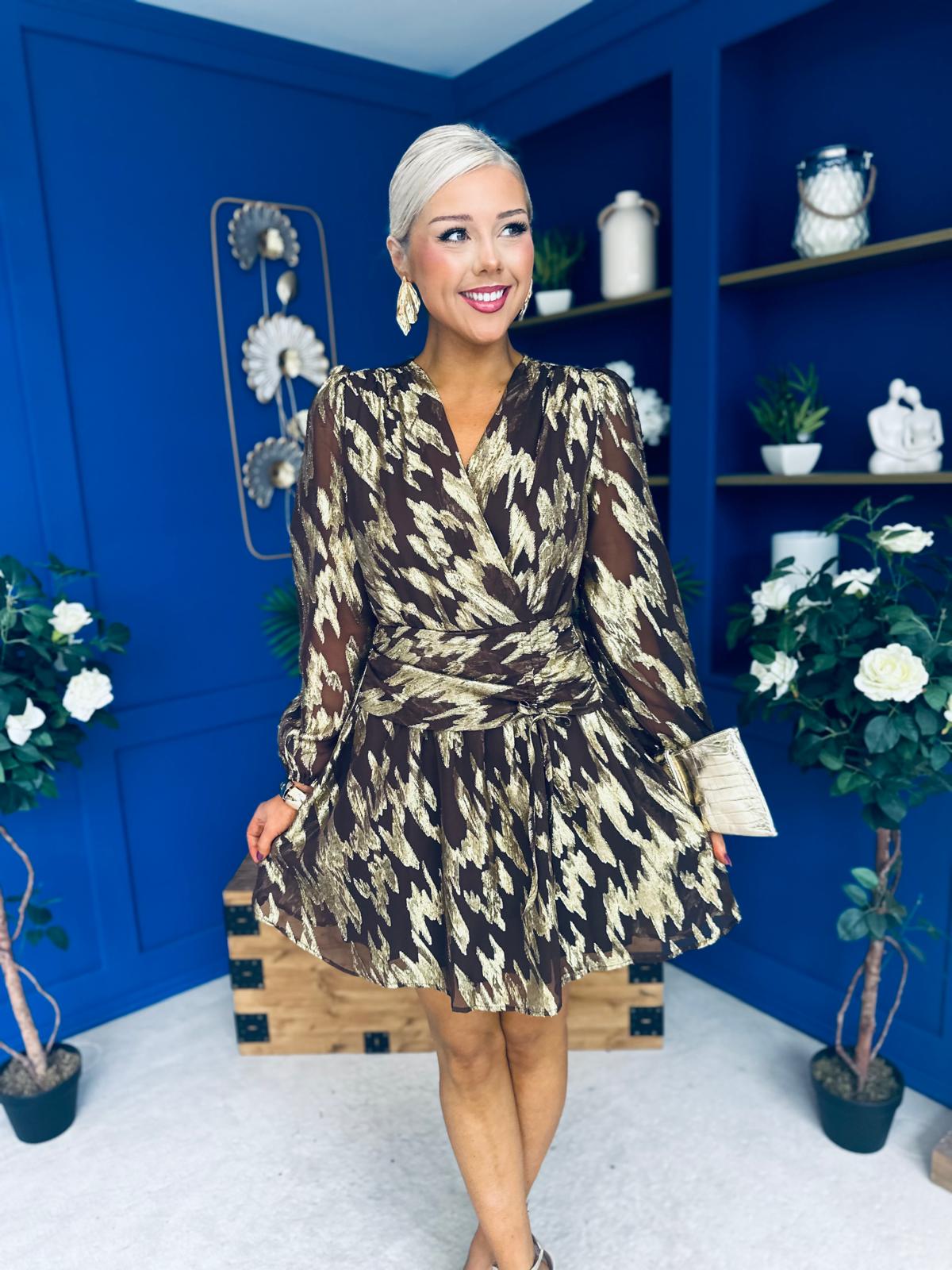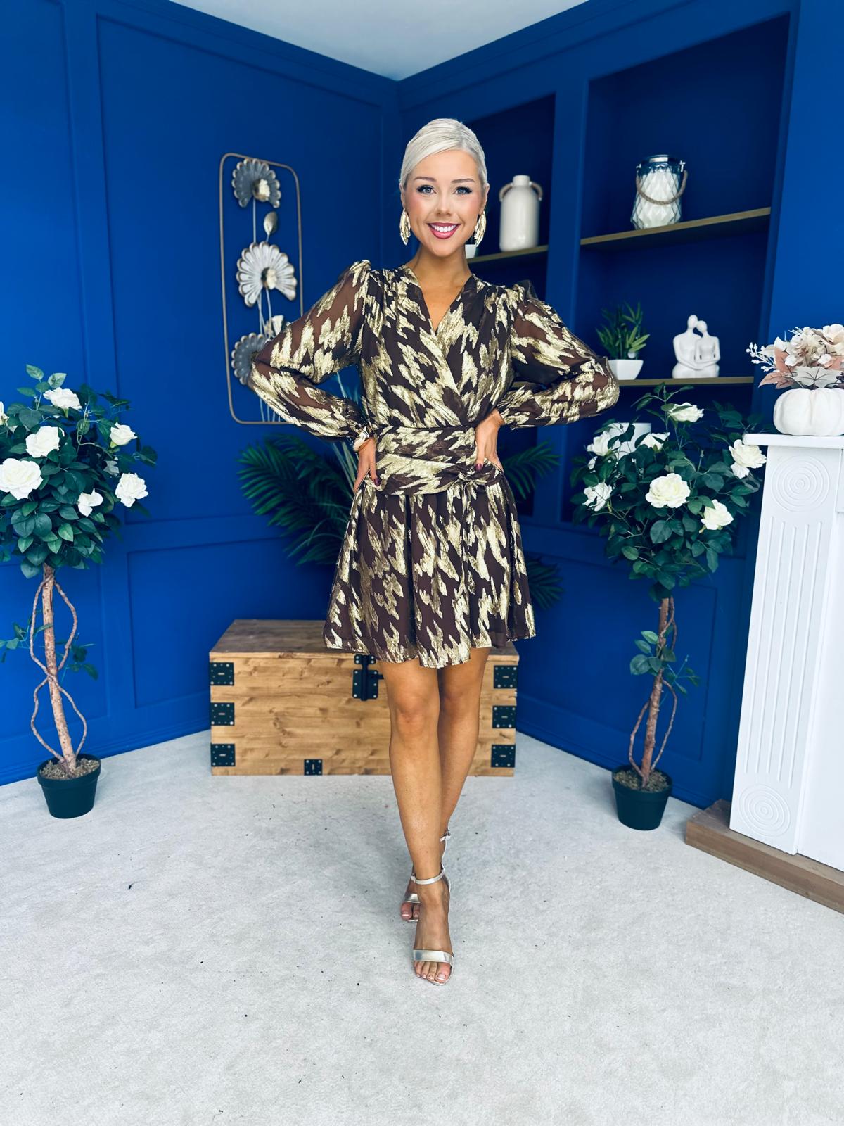 Helena Metallic Leaf Mini Dress Coco Pre Order 3 Oct