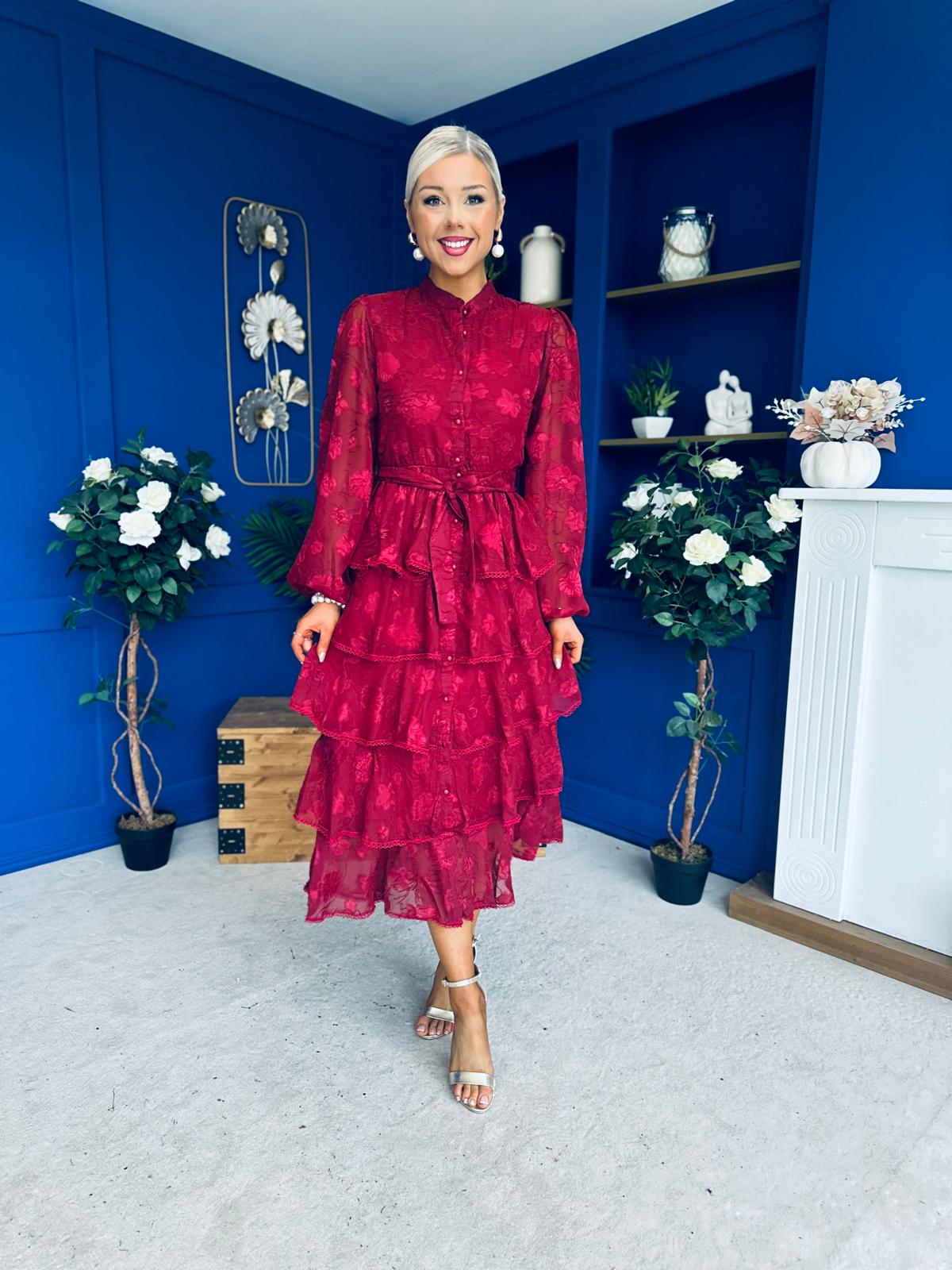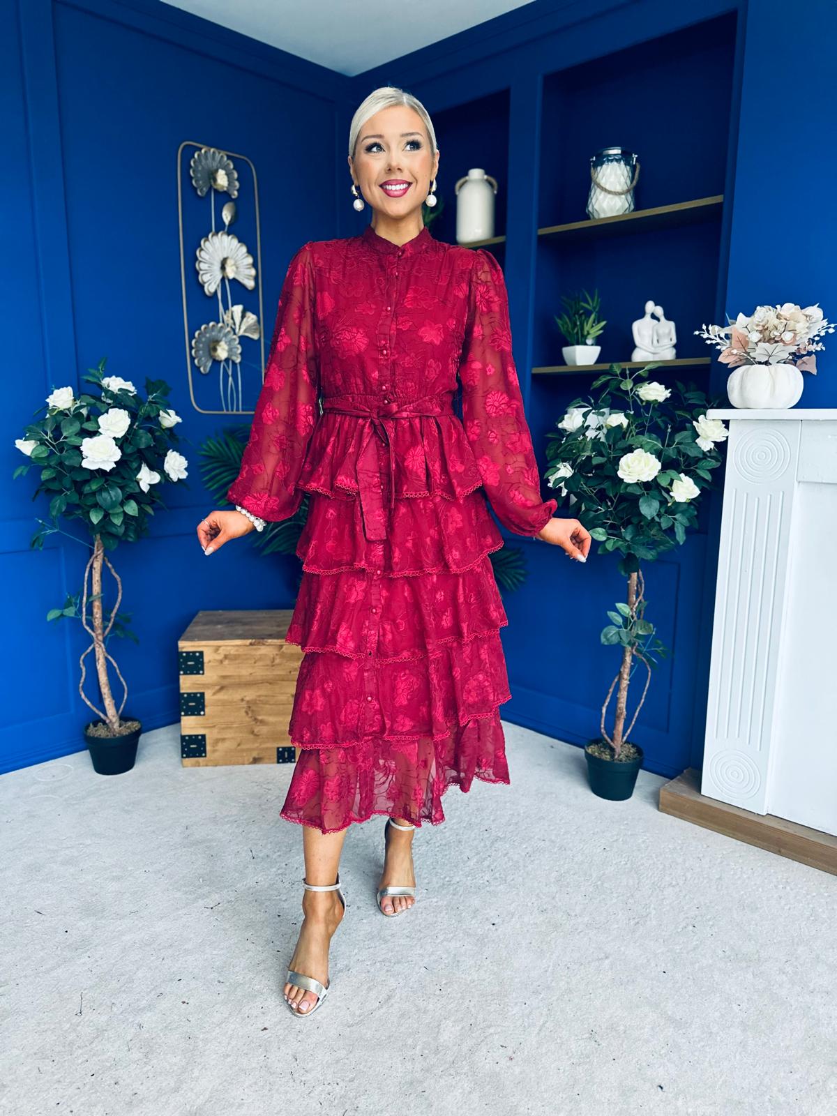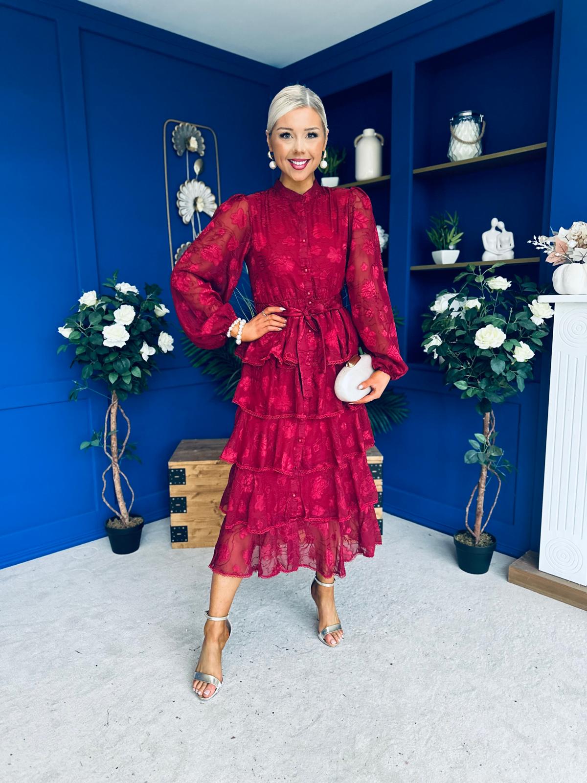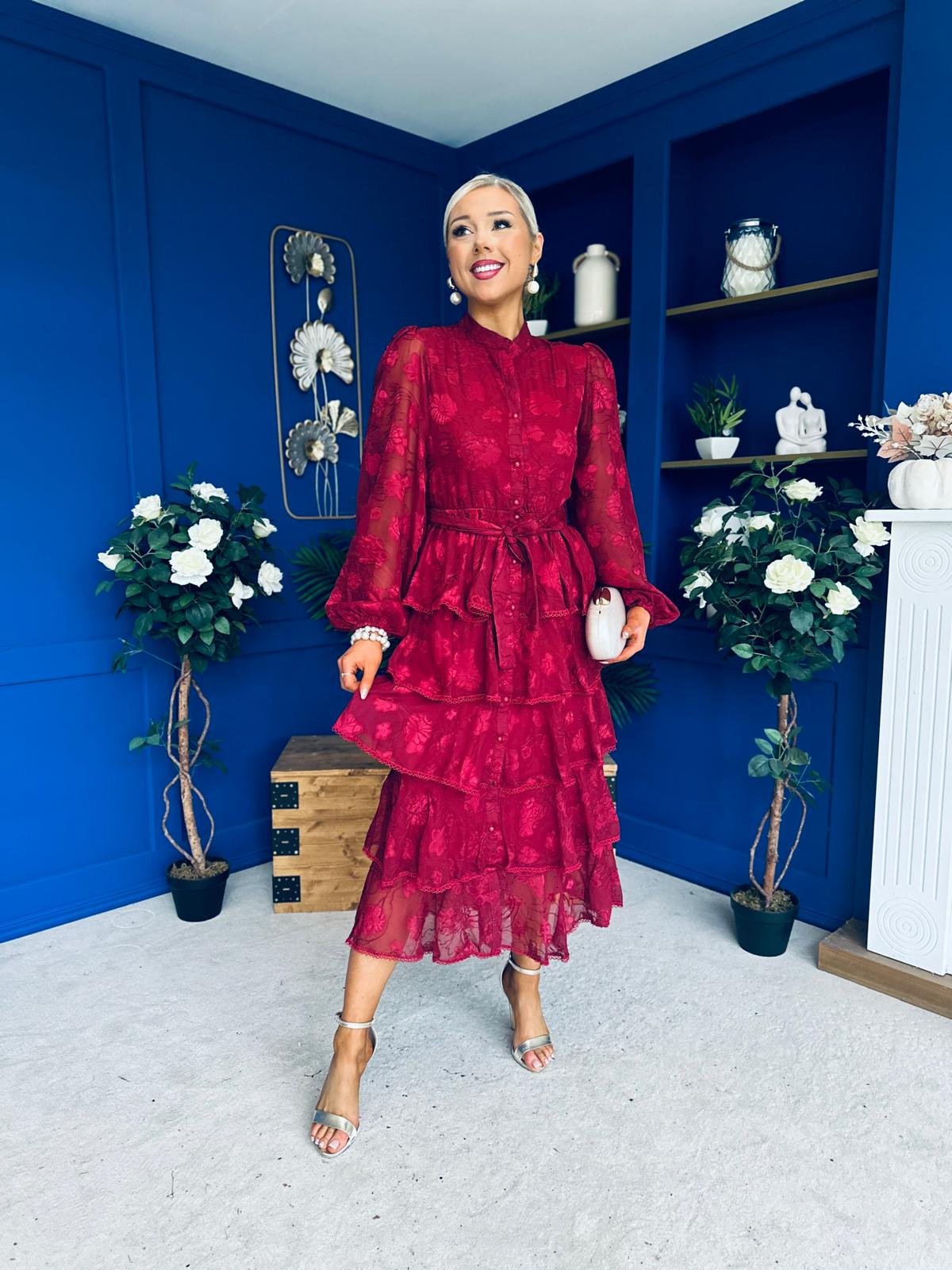 Hope Layered Detail Midi Dress Burnout Wine