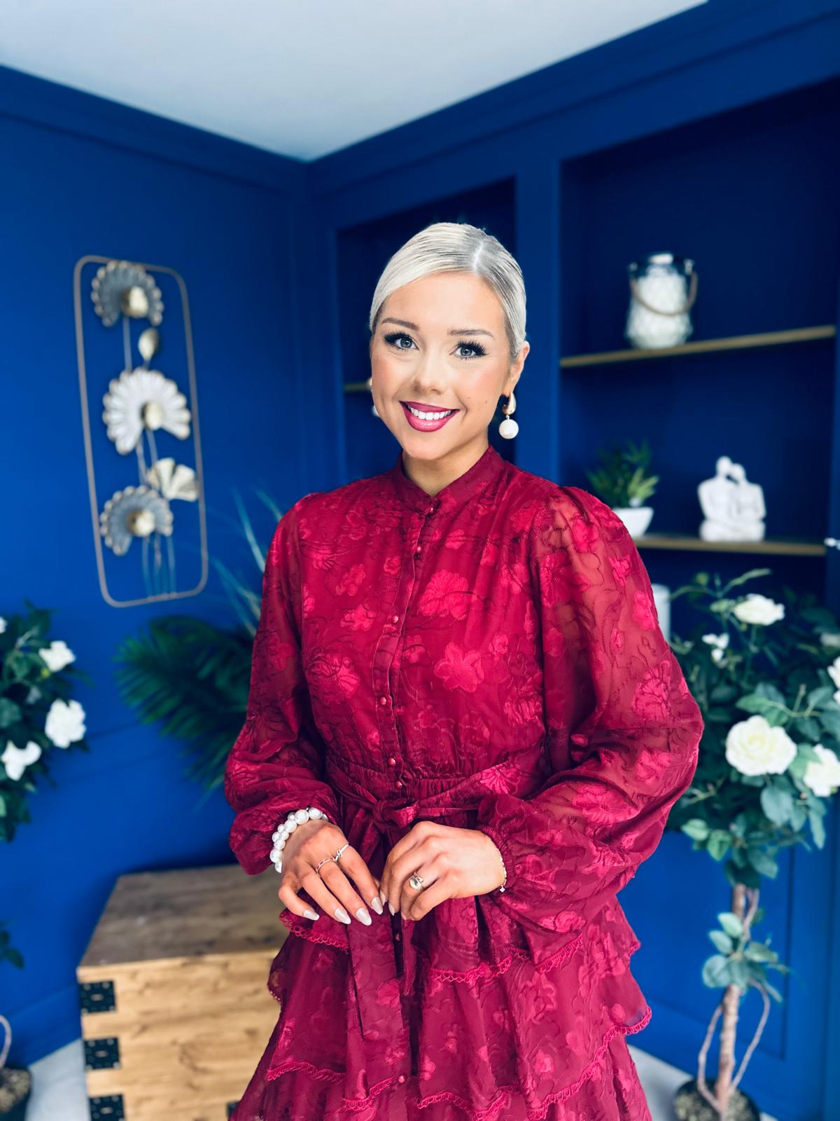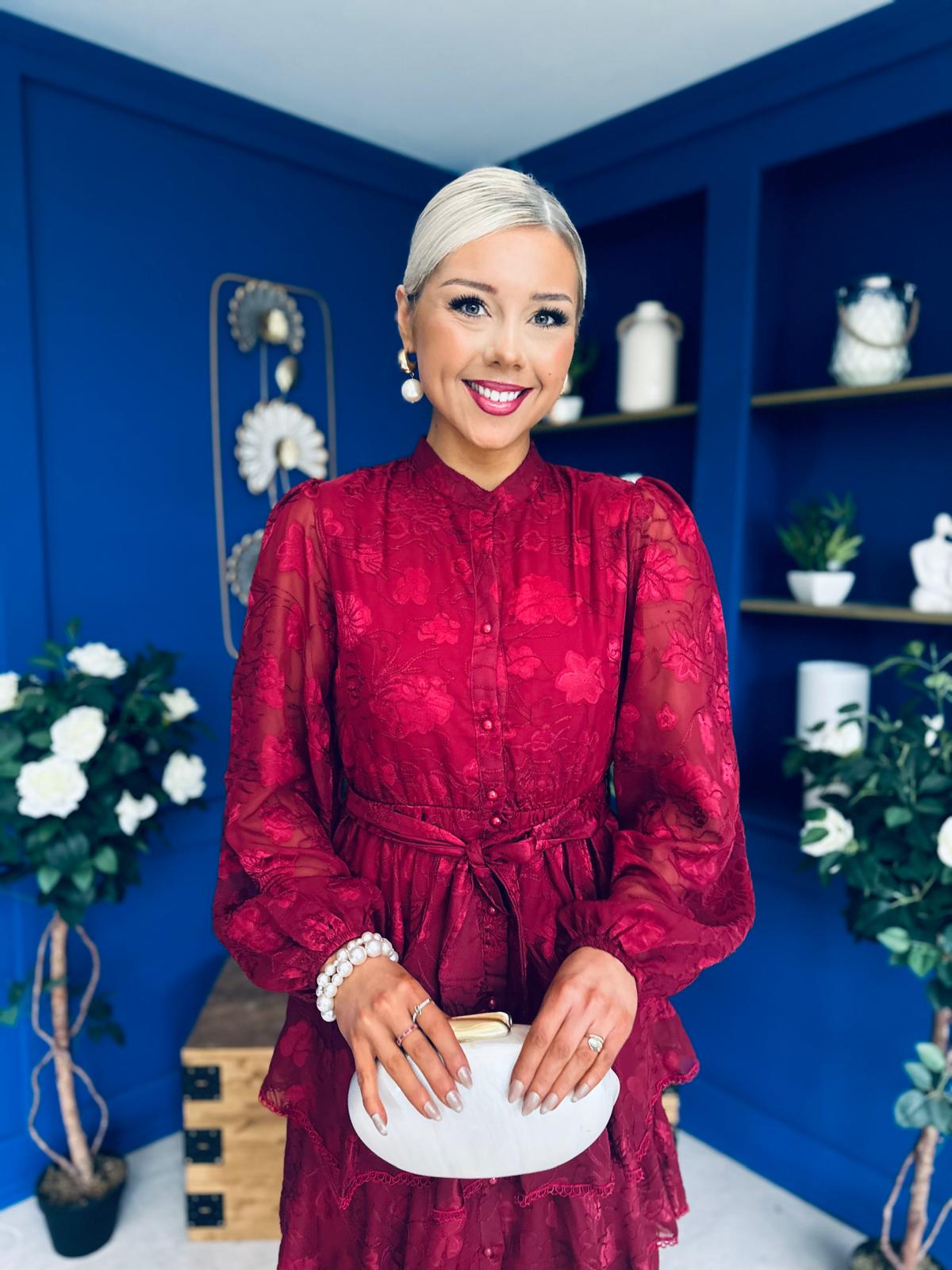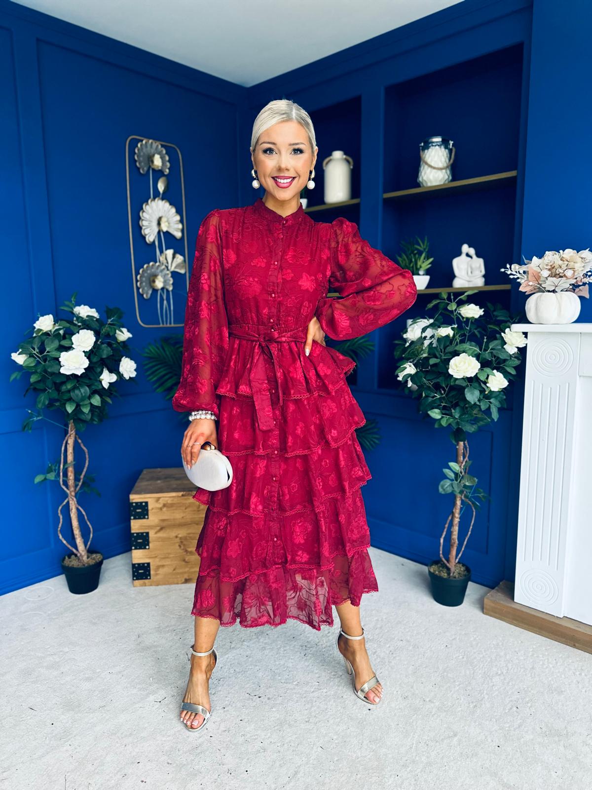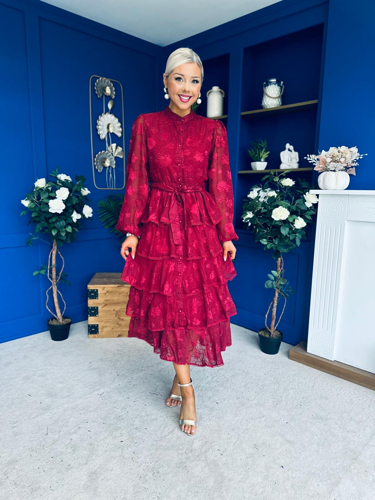 Hope Layered Detail Midi Dress Burnout Wine