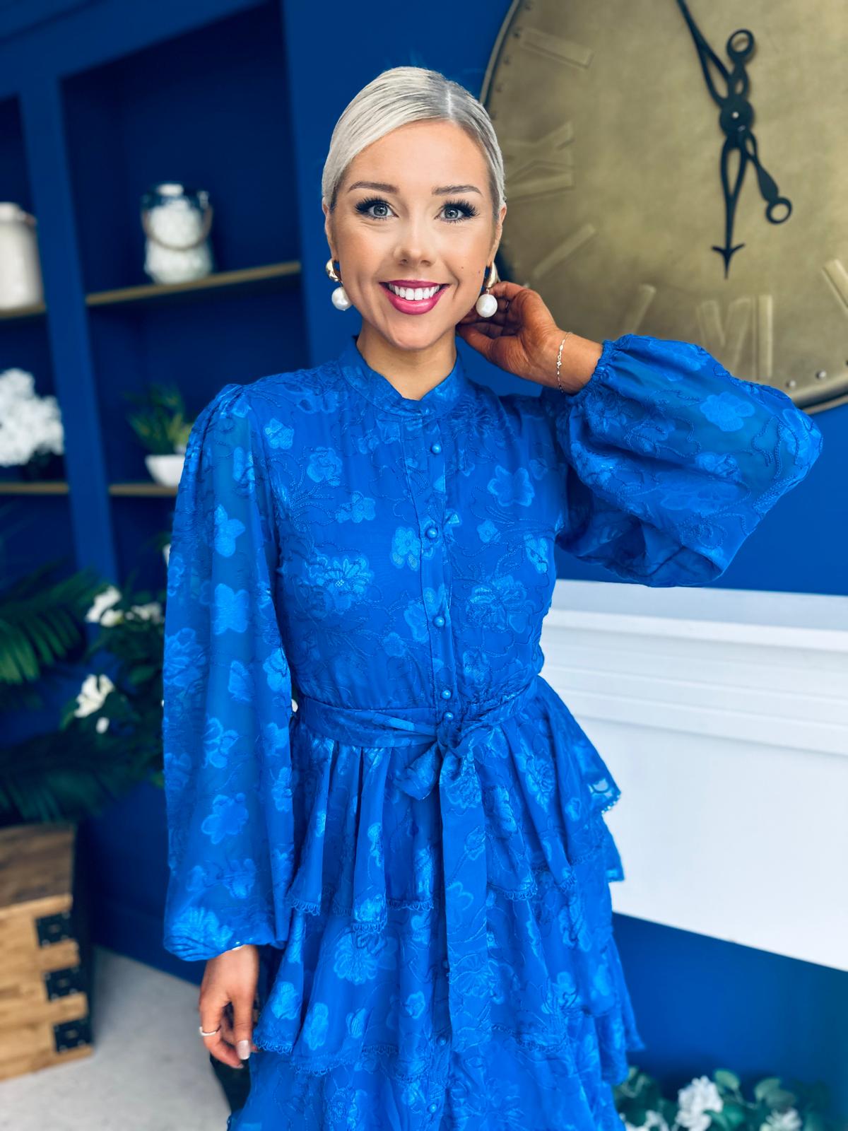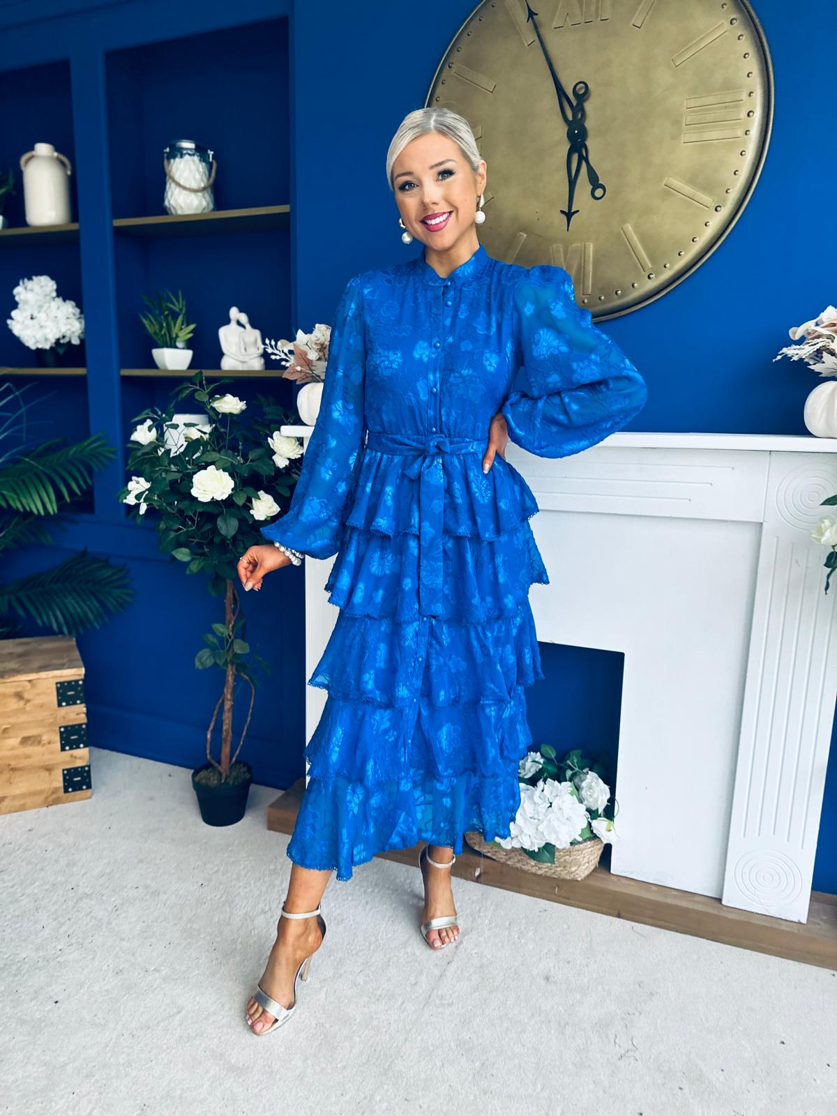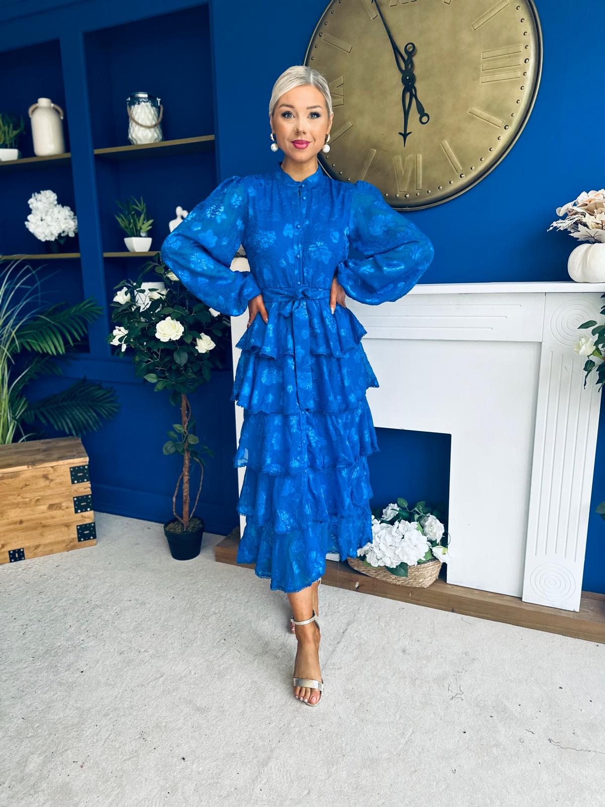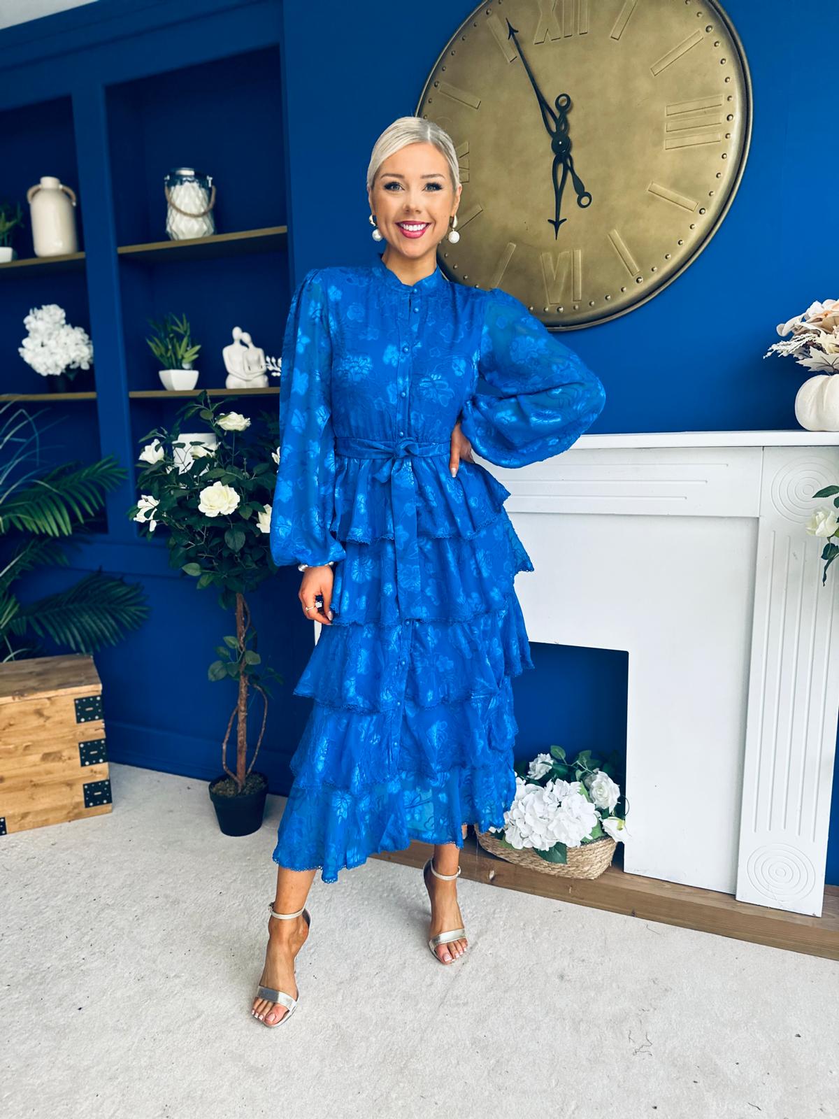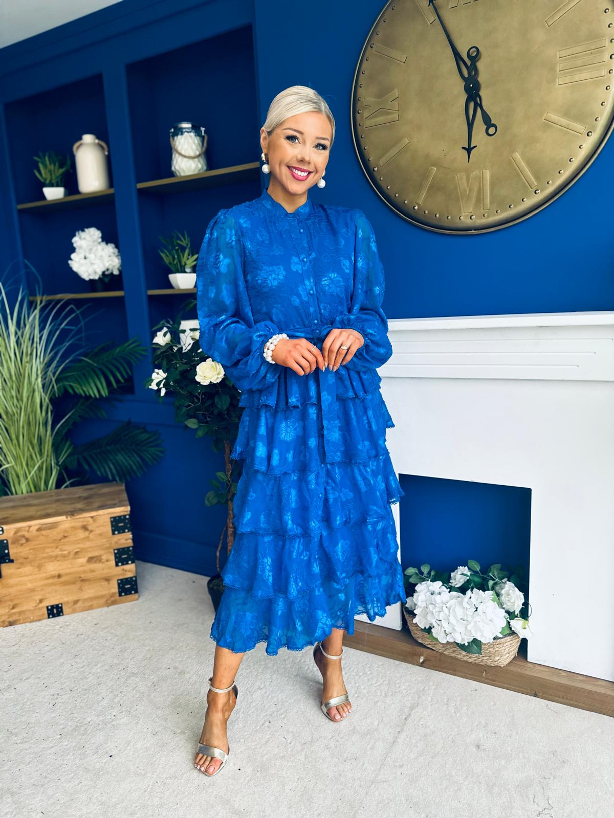 Hope Layered Detail Midi Dress Burnout Cobalt