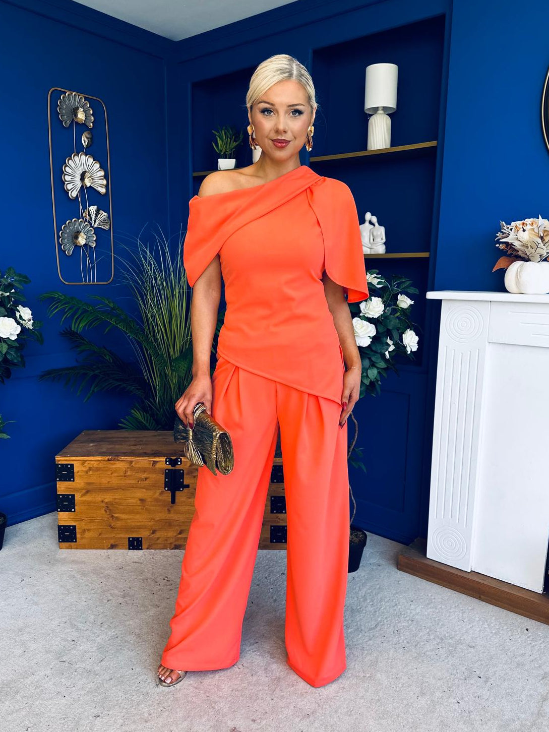Isabella Detailed Top And Trouser Set Coral