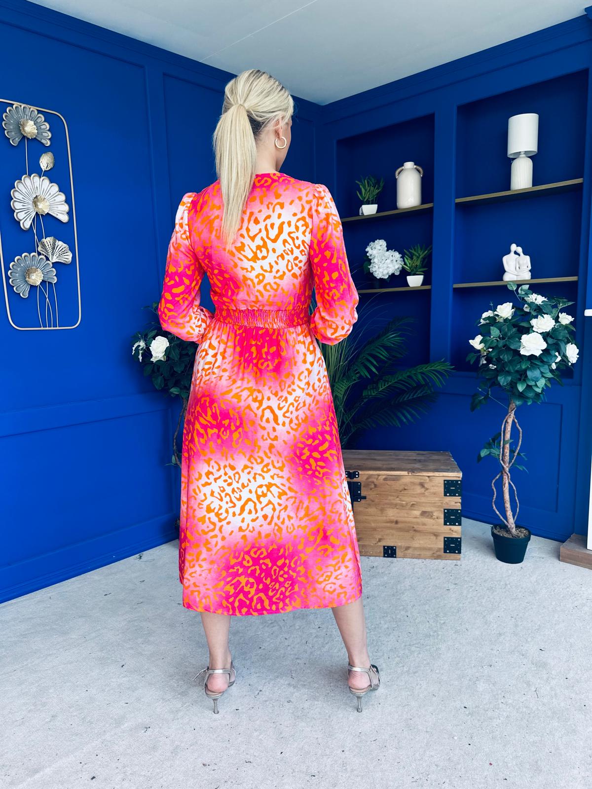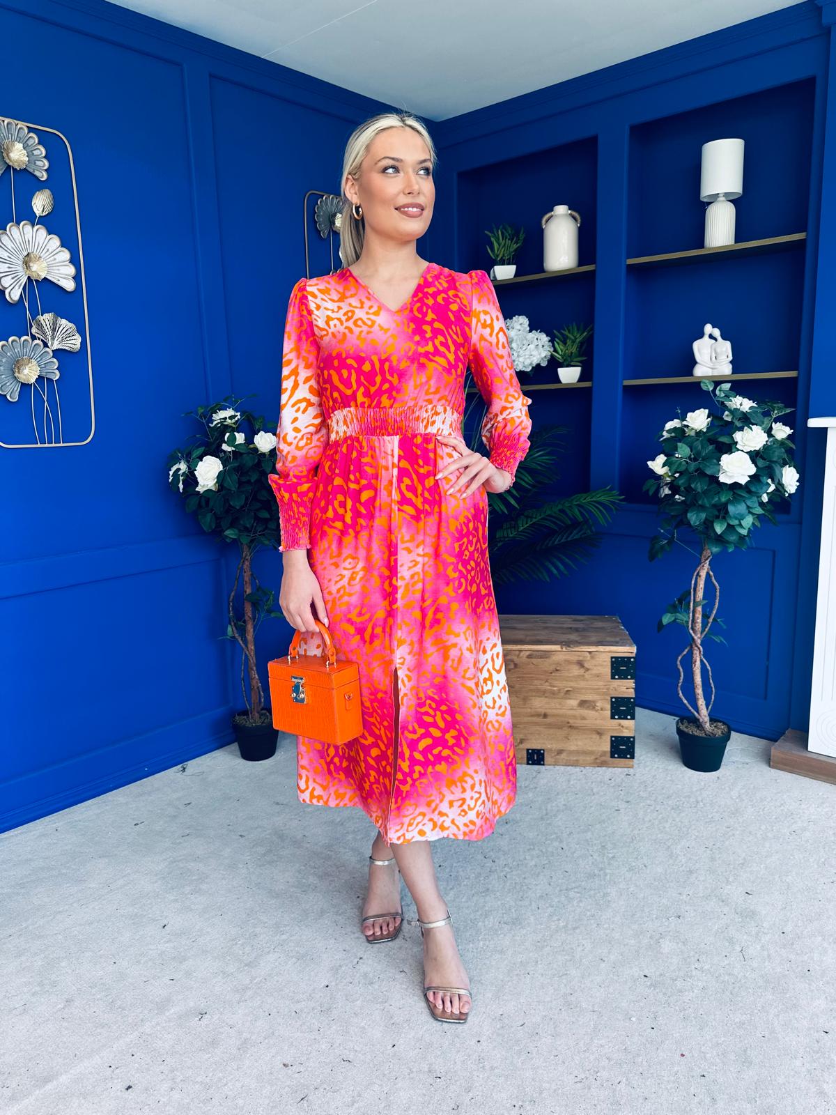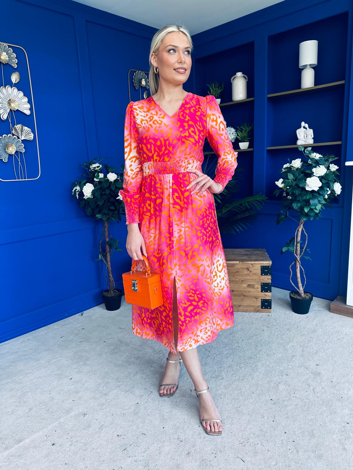 Featuring a gathered neckline, sheer sleeve, elasticated waist and flowing skirt for a statement silhouette and a flattering look, this dress will make you feel and look your best.
