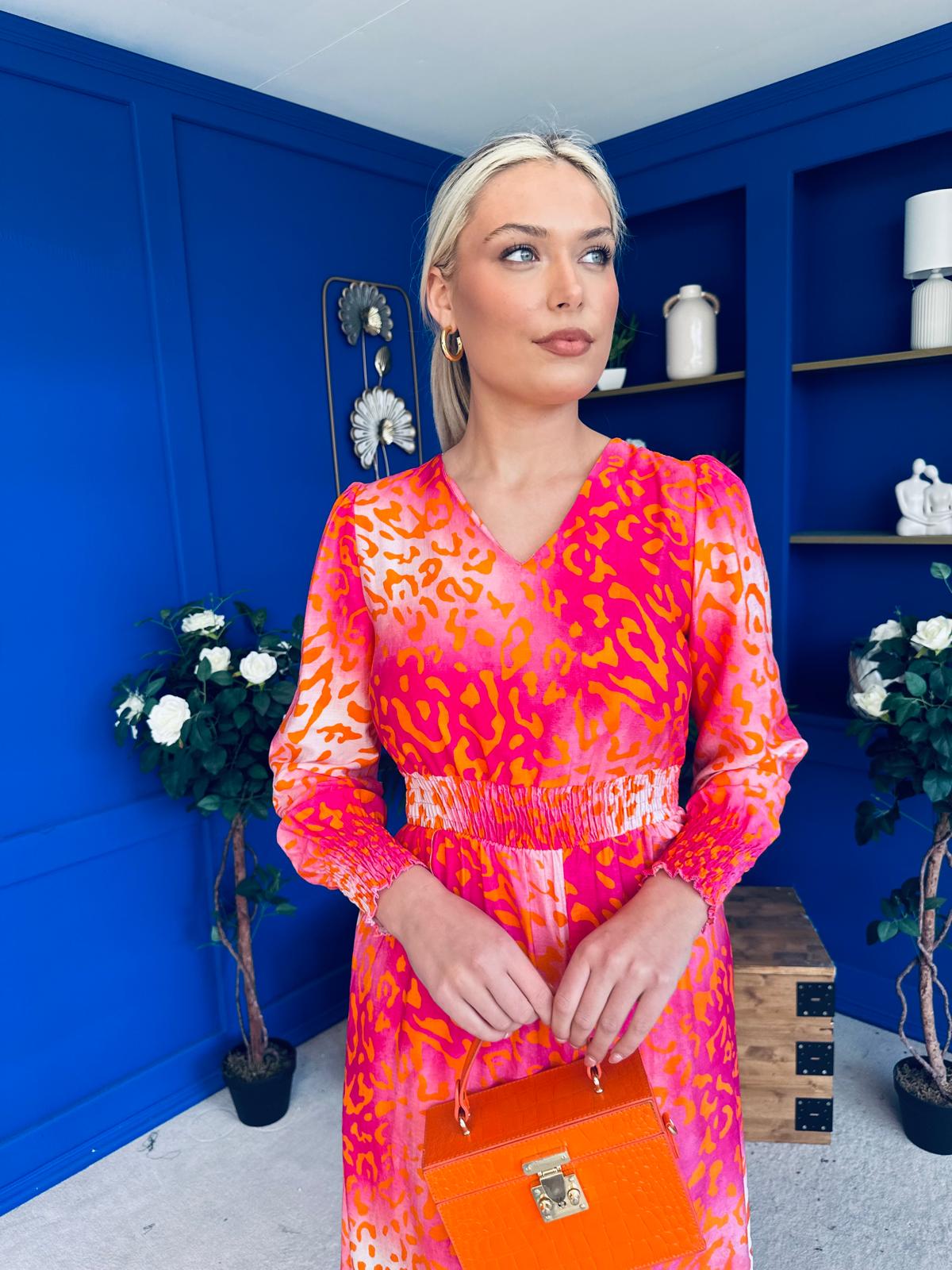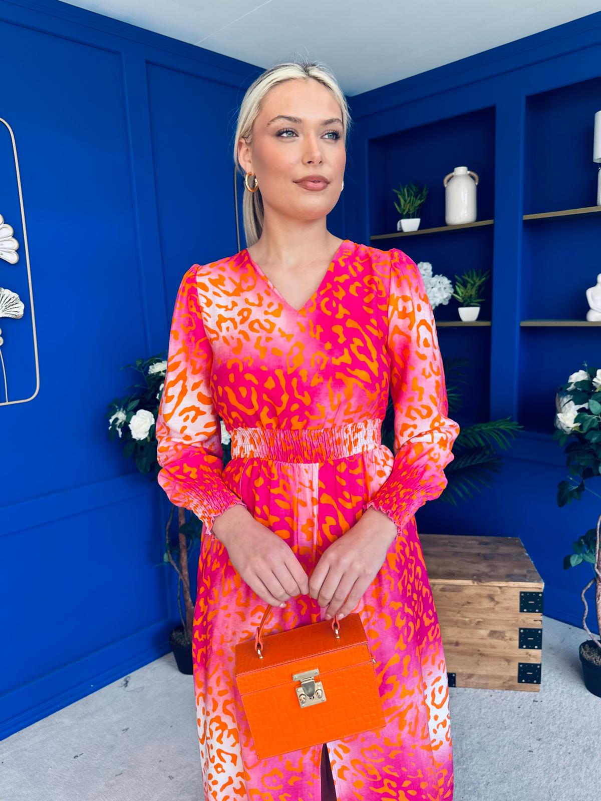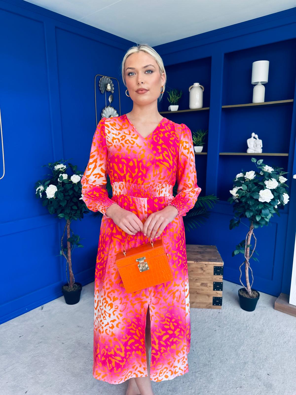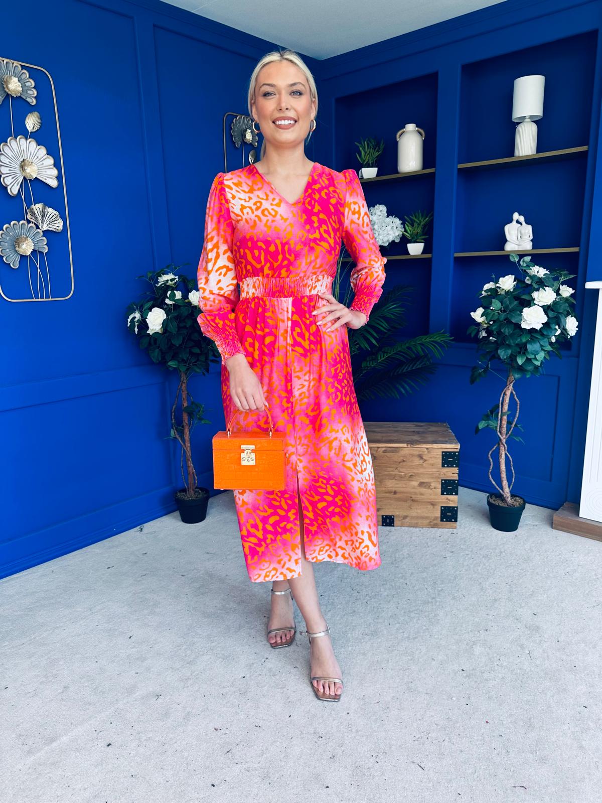Featuring a gathered neckline, sheer sleeve, elasticated waist and flowing skirt for a statement silhouette and a flattering look, this dress will make you feel and look your best.