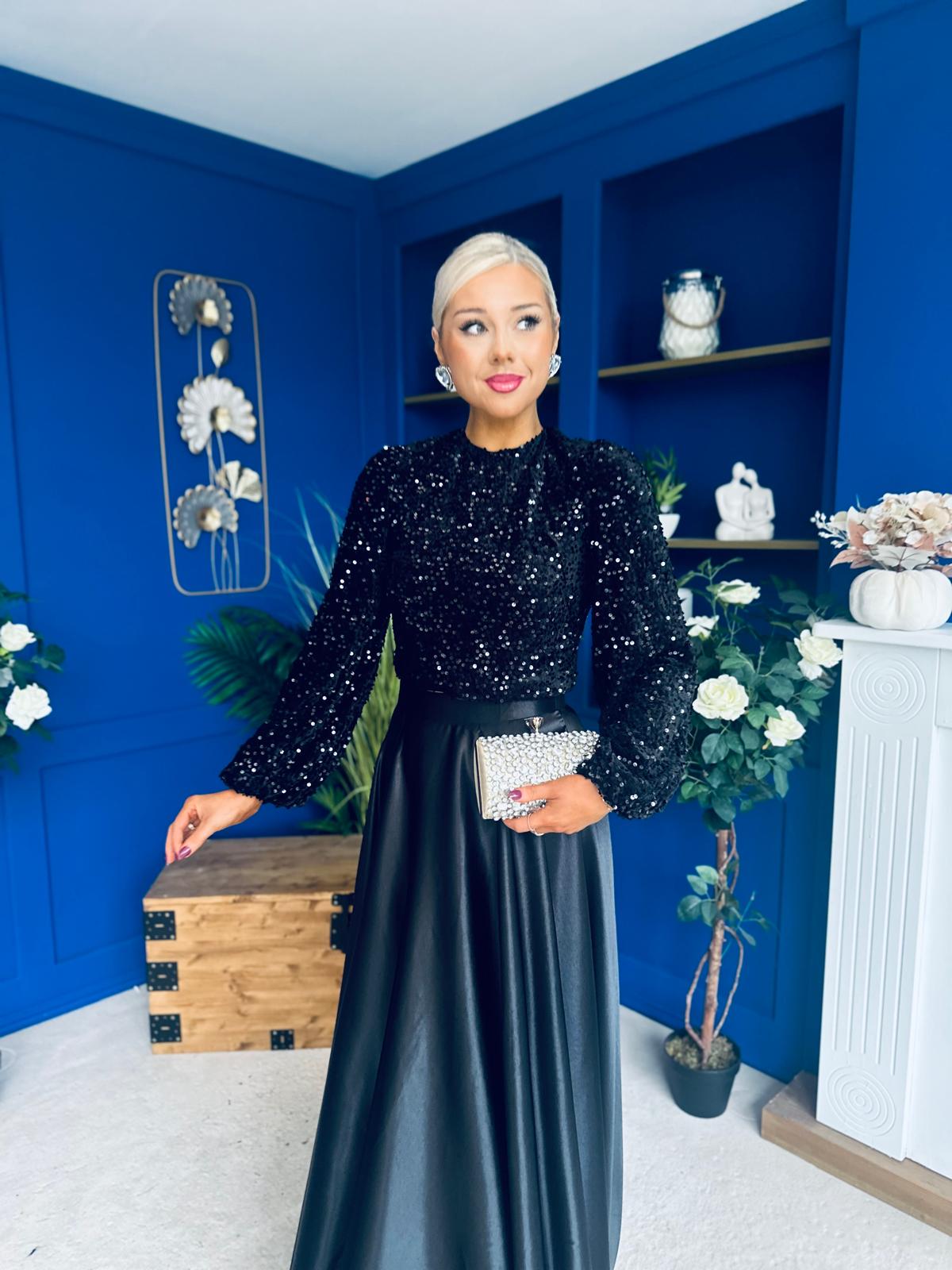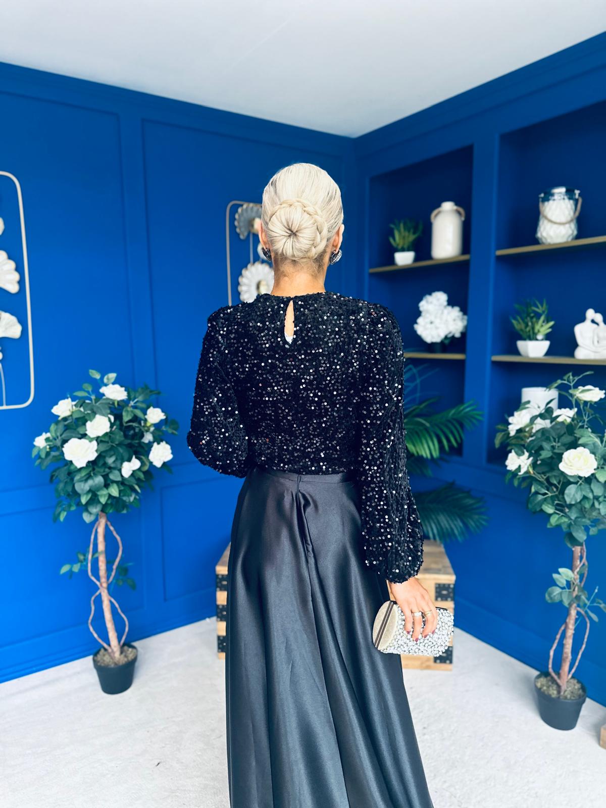 Janis Detailed Sequin Top Black