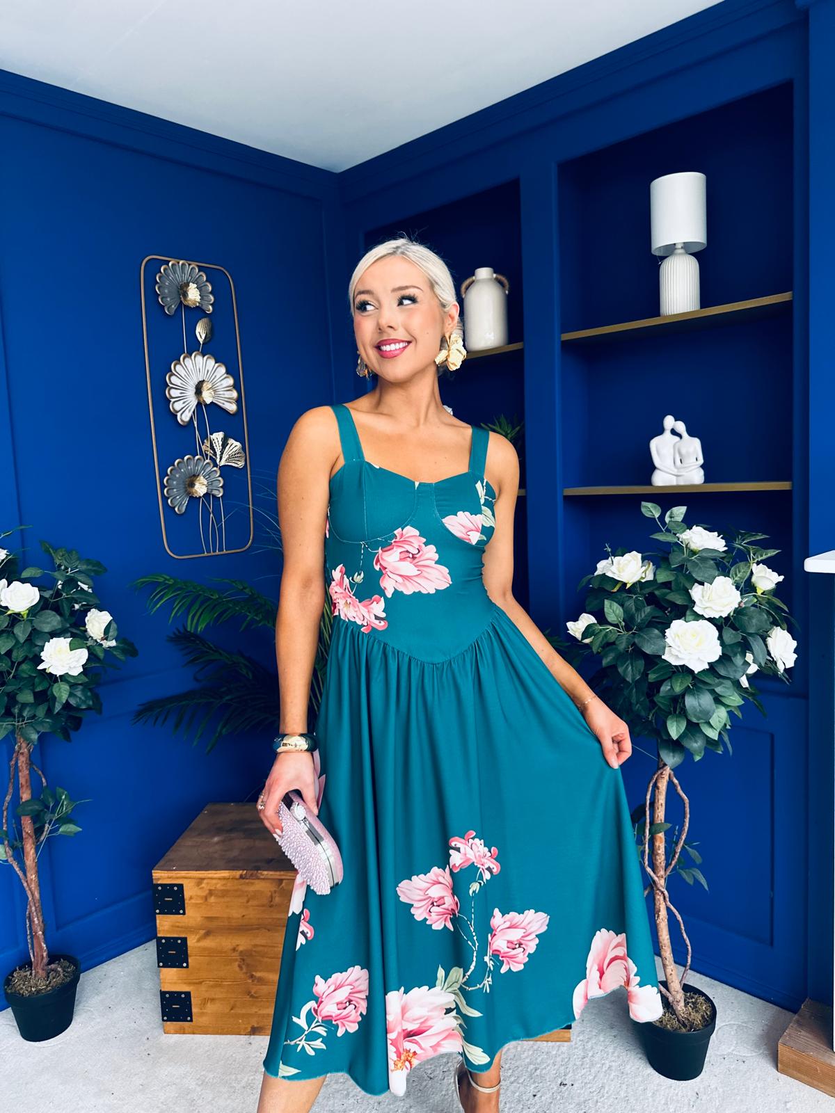 Jude Drop waist Midi Dress Floral Green