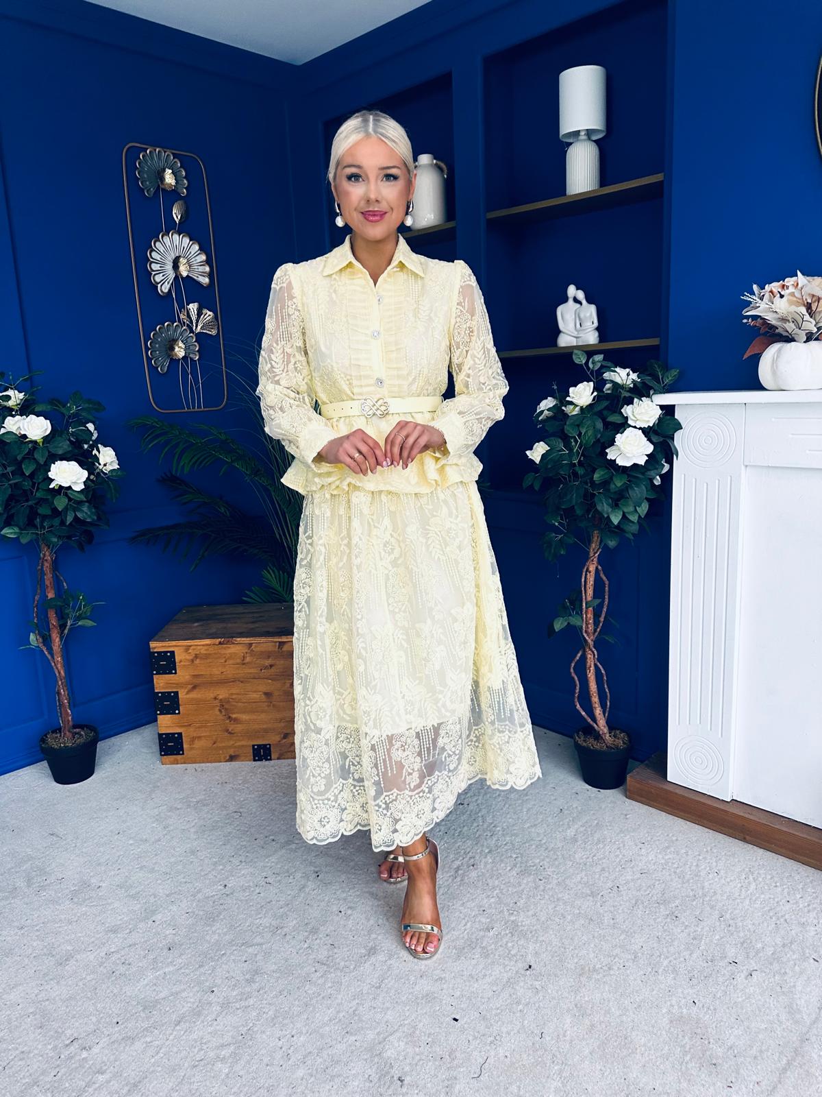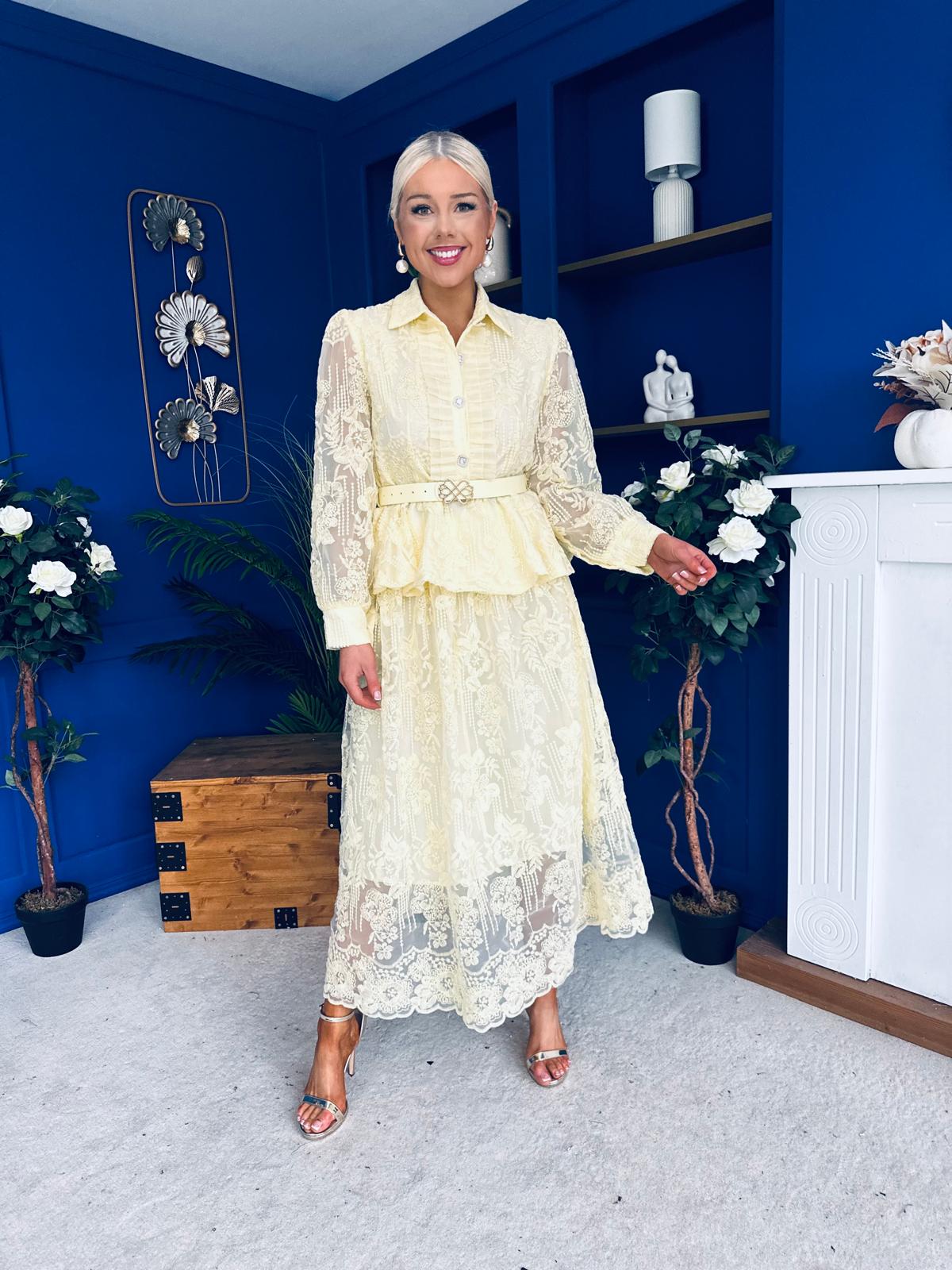 Judy Crochet Shirt & Skirt Set Yellow