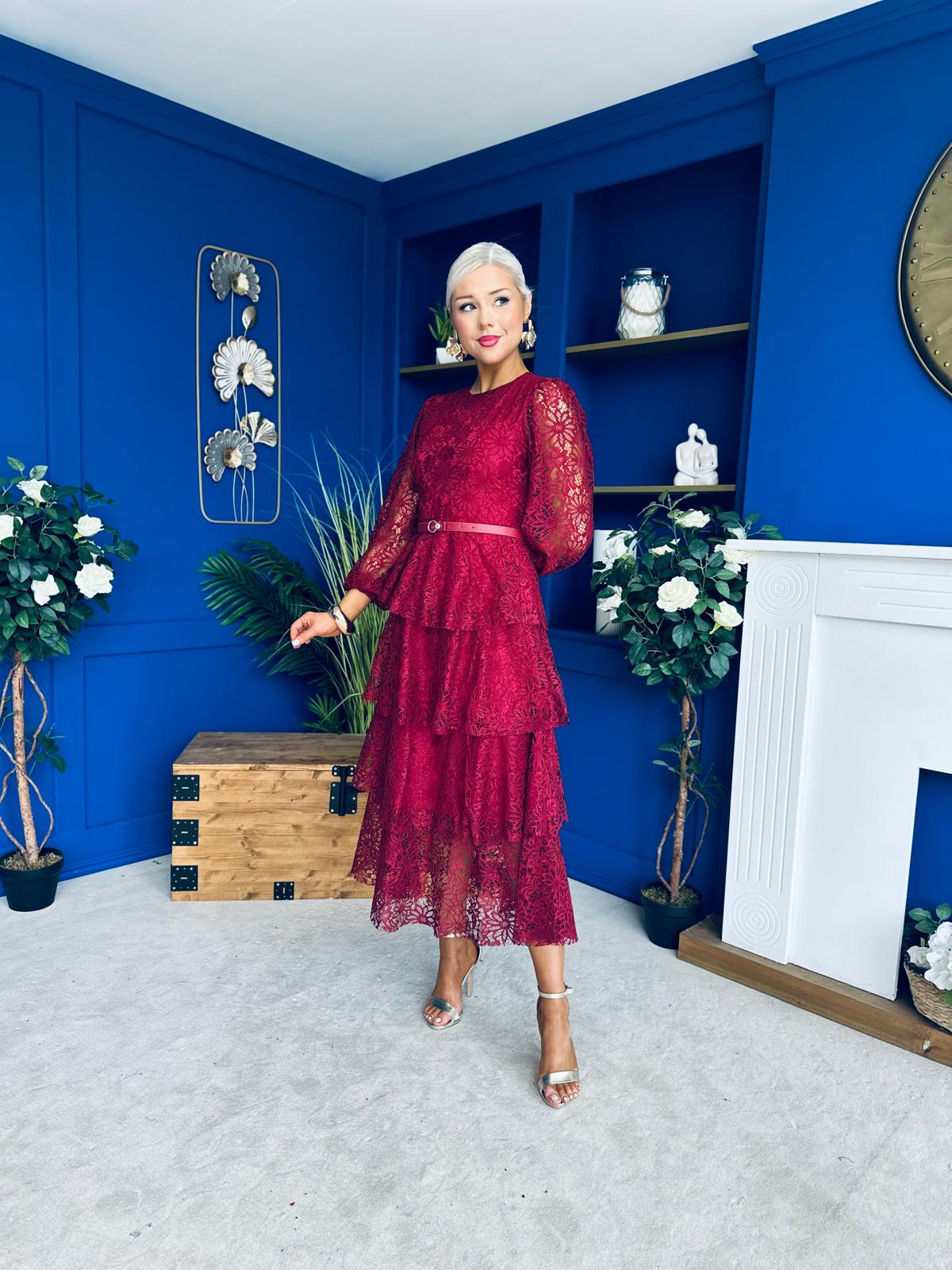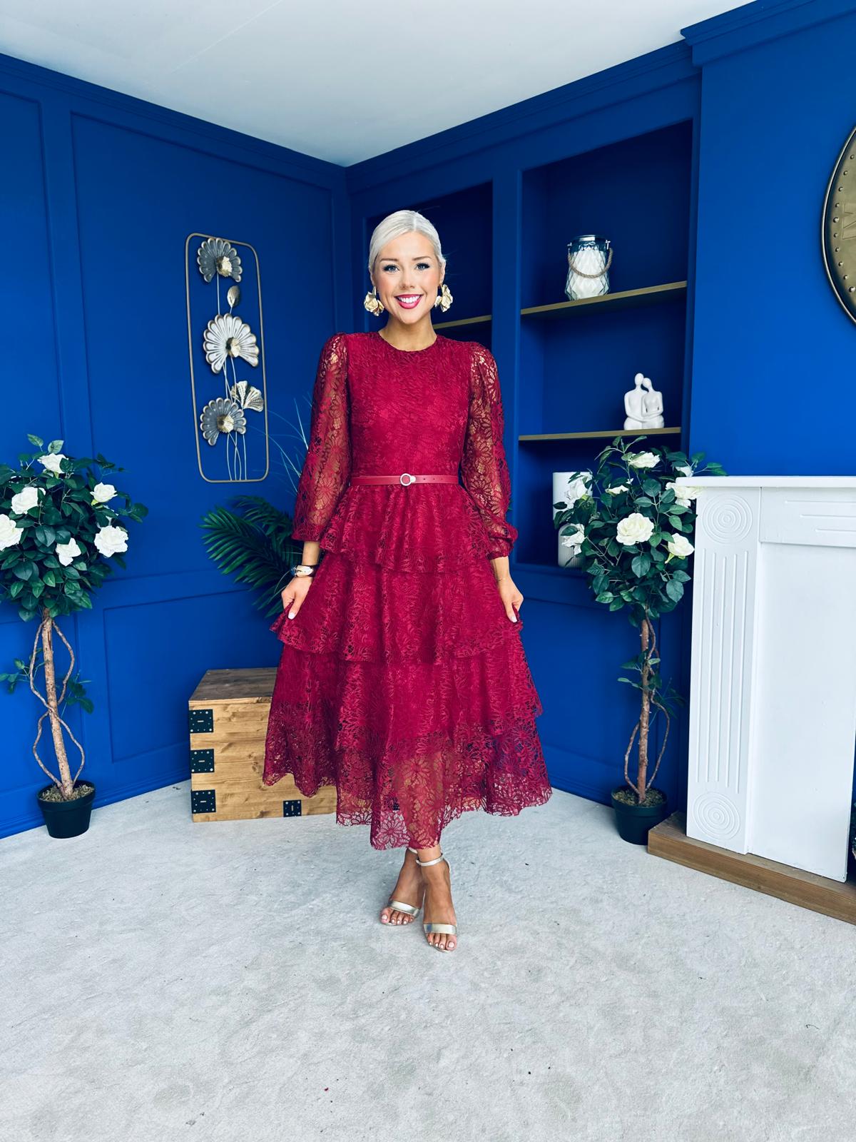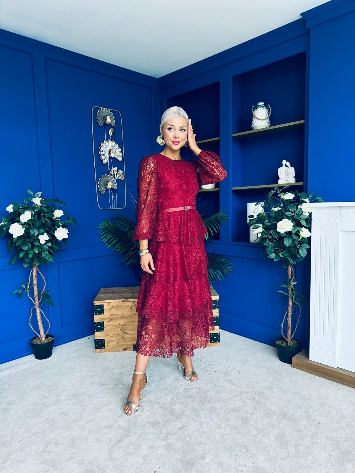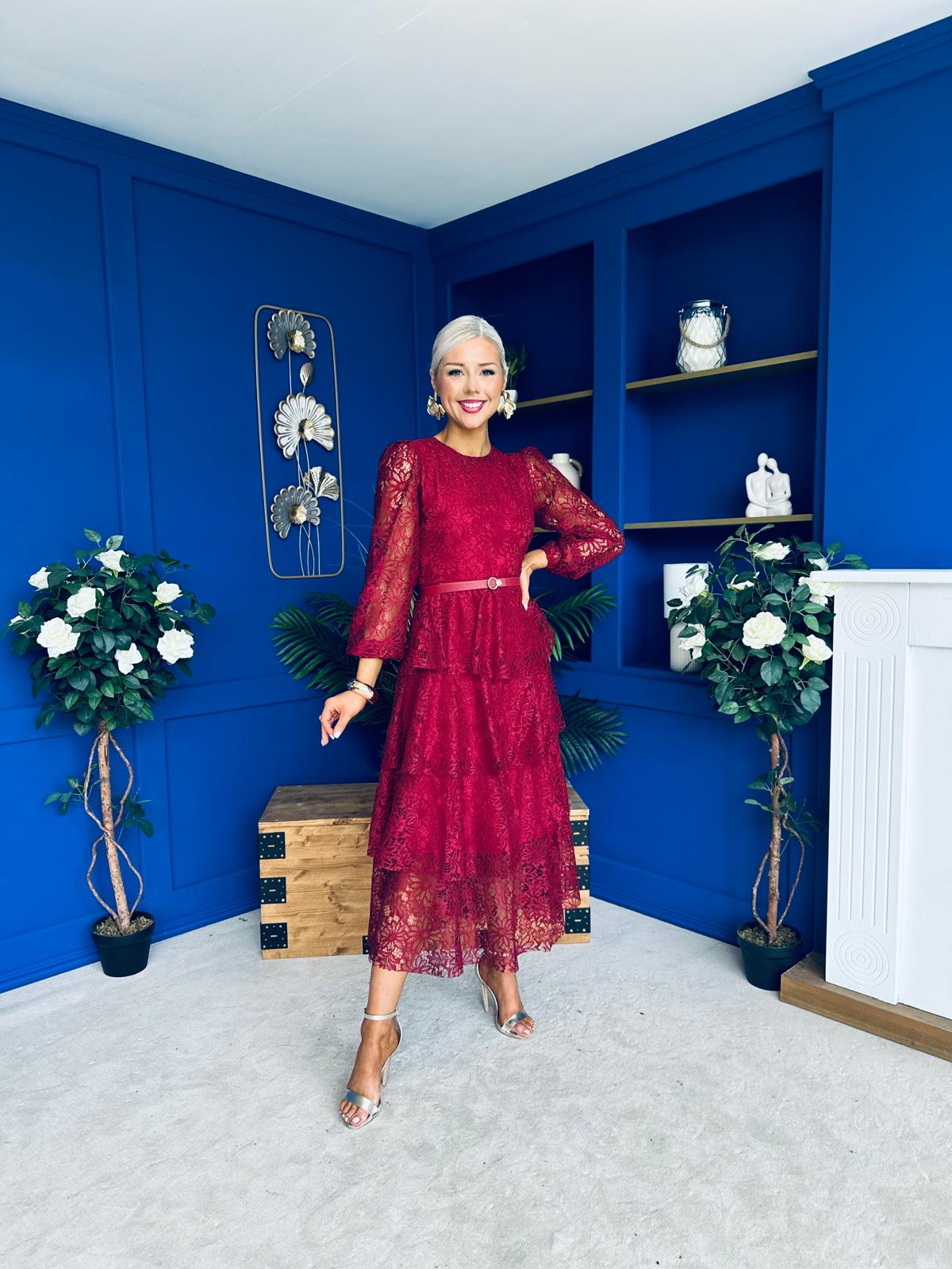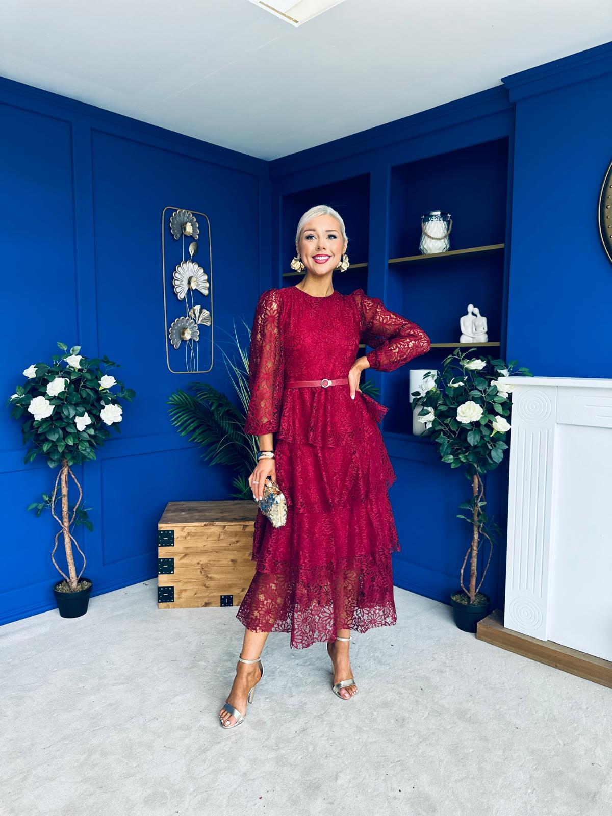 Julia Belted Lace Occasion Dress Wine