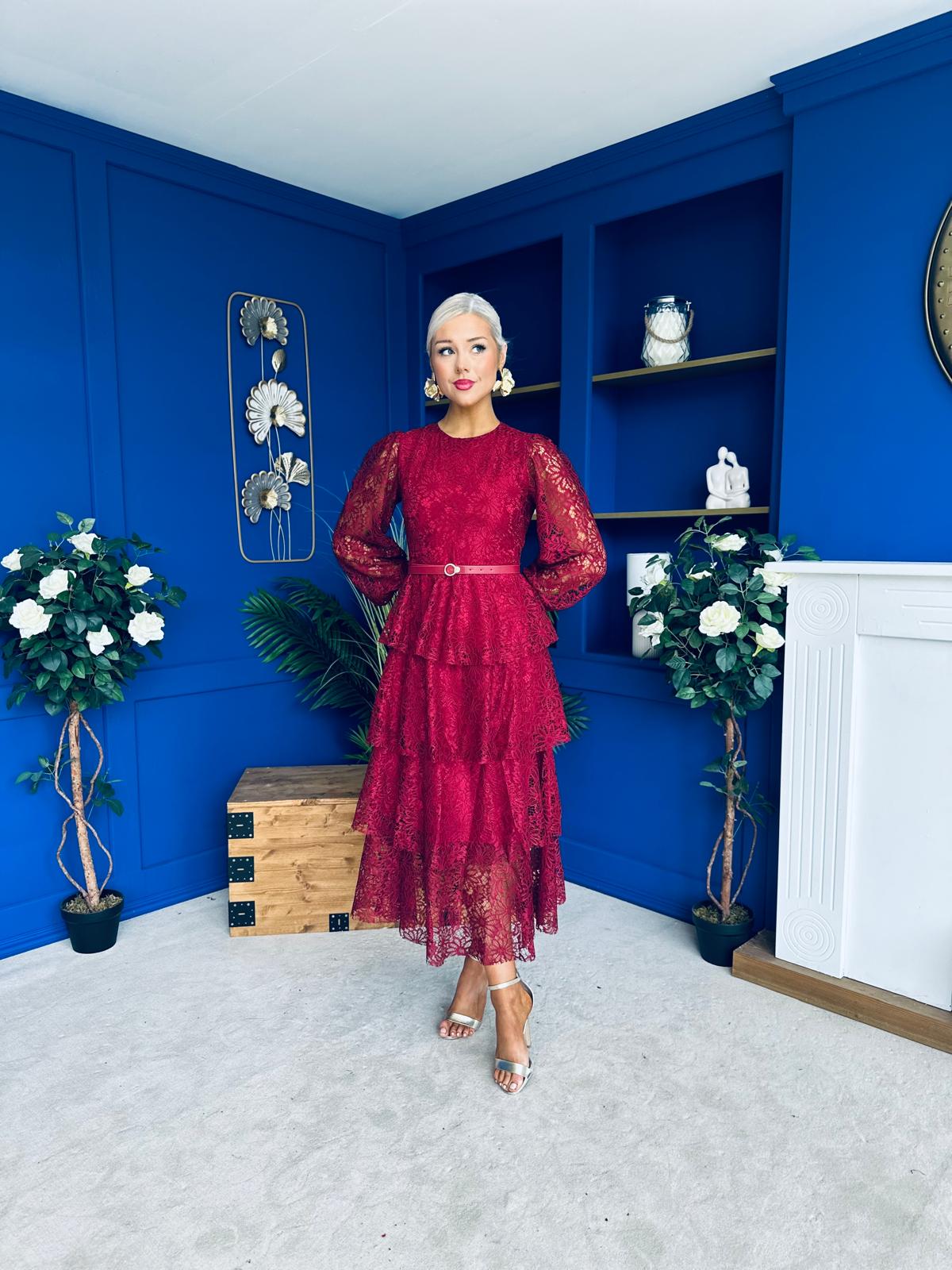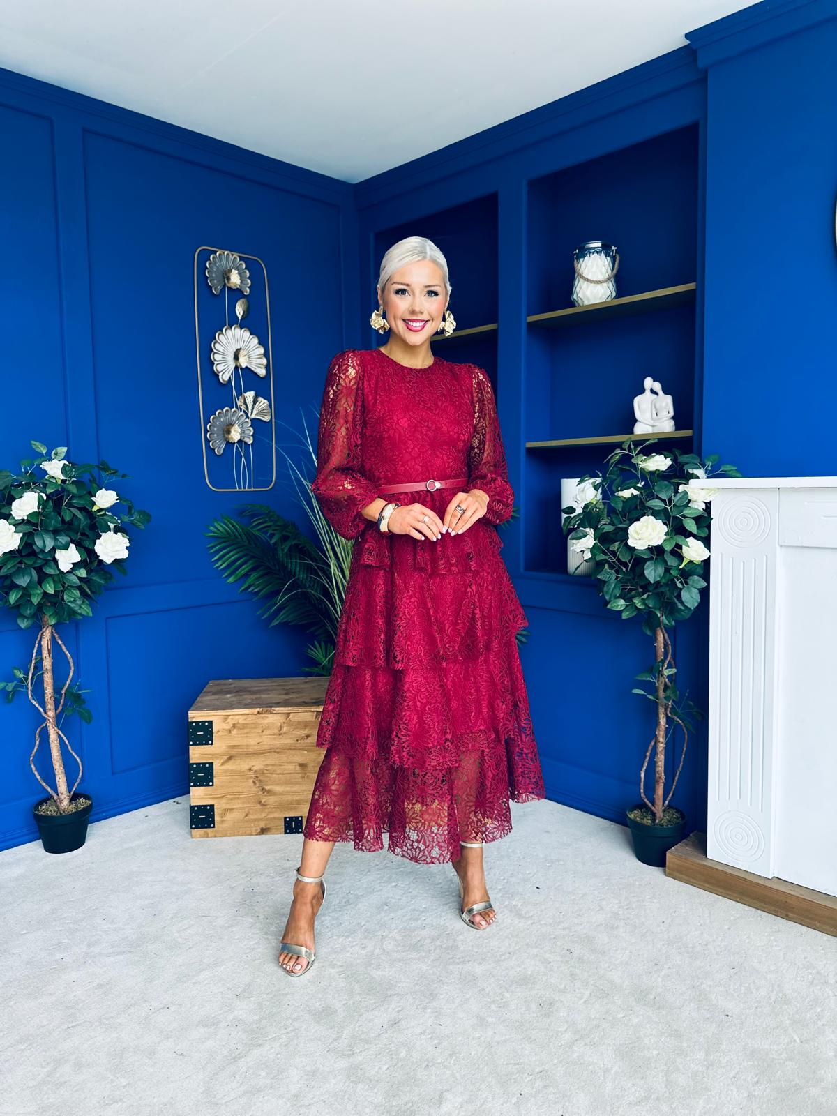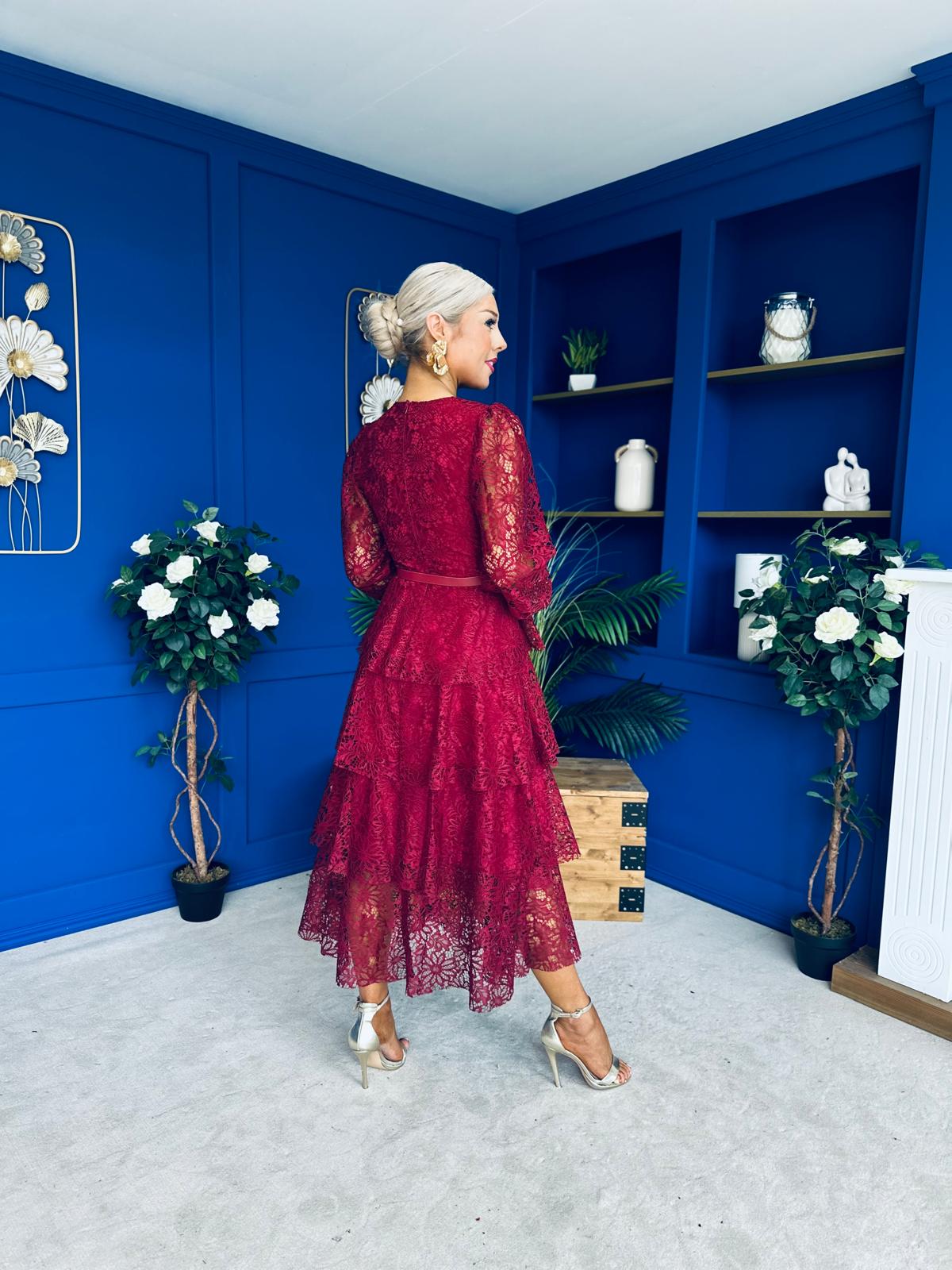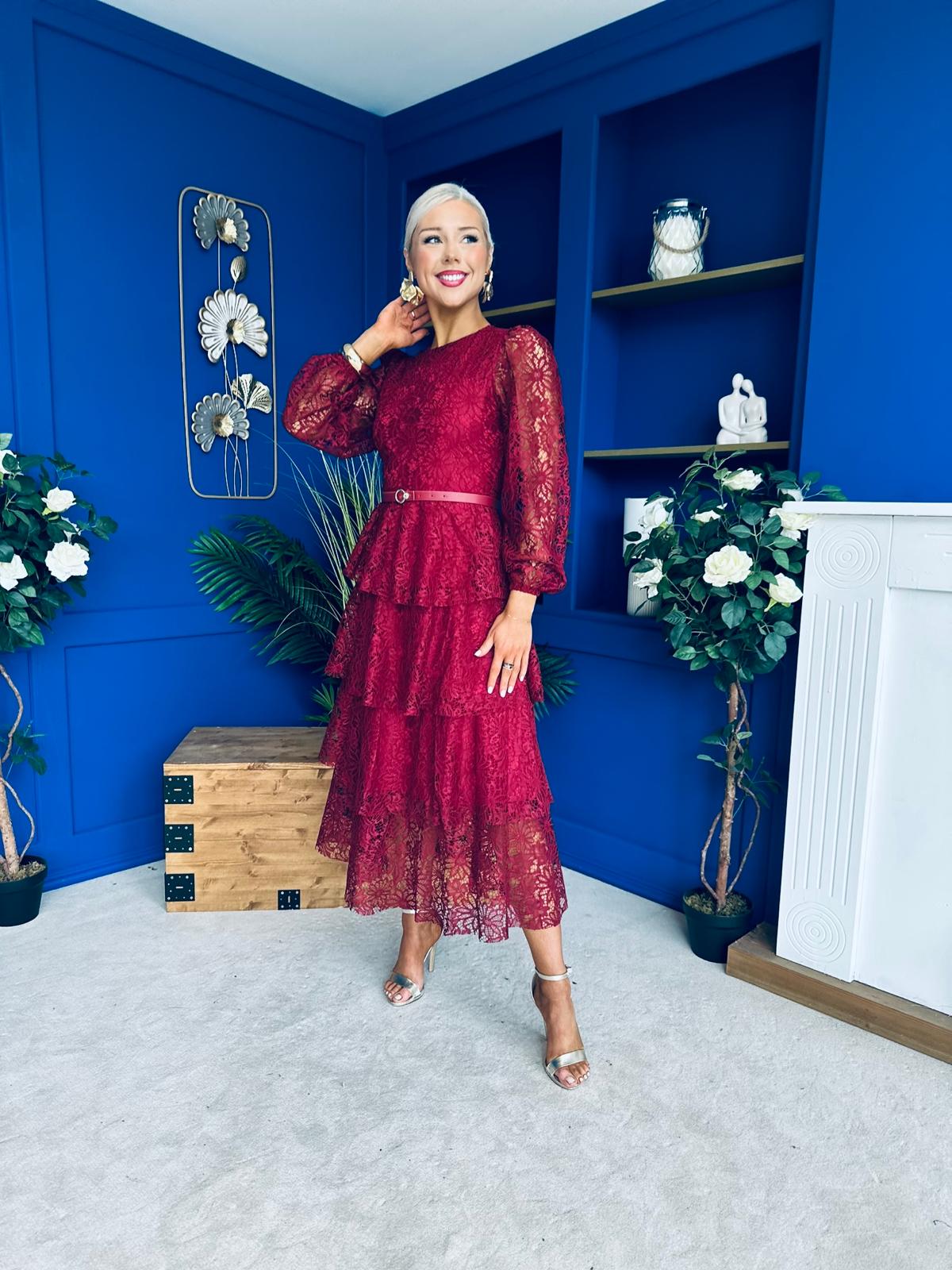 Julia Belted Lace Occasion Dress Wine
