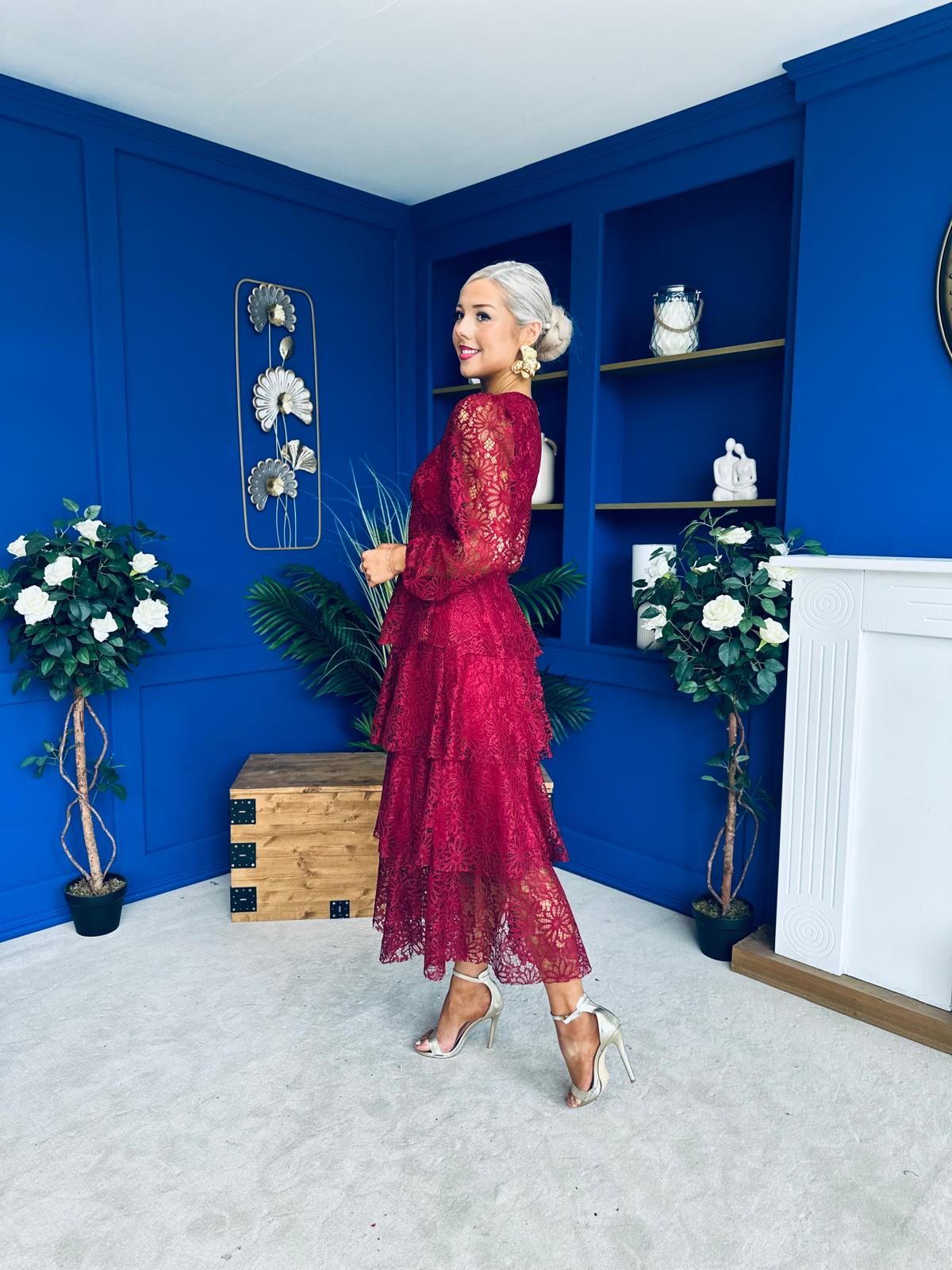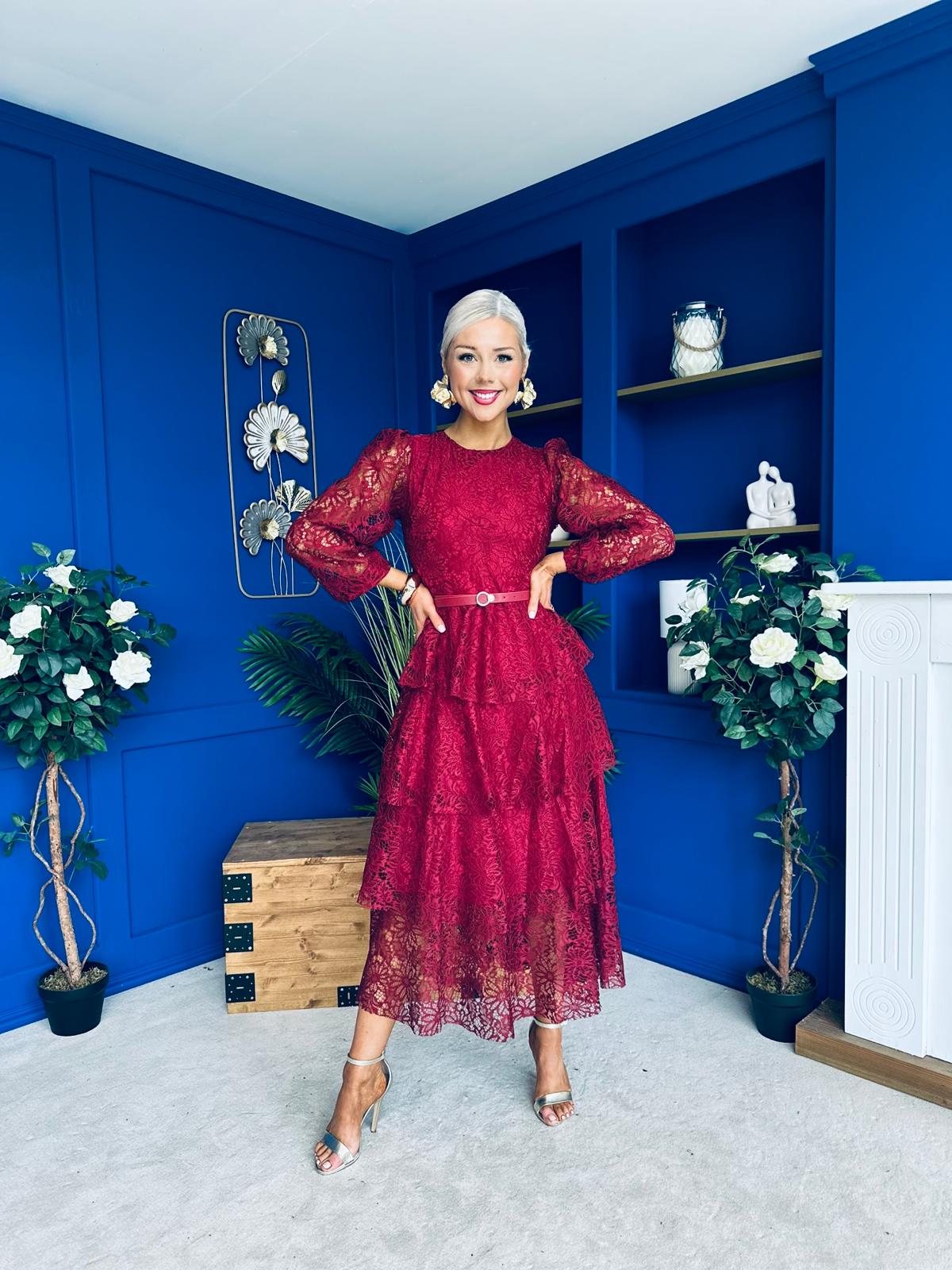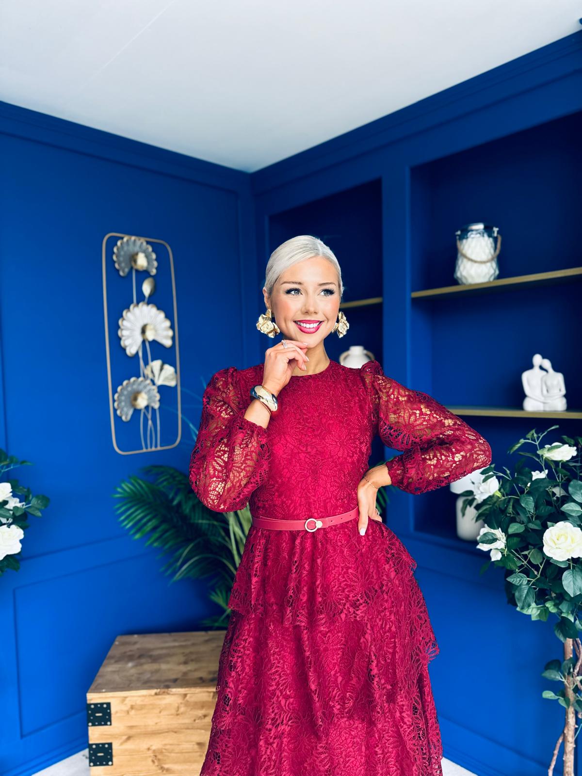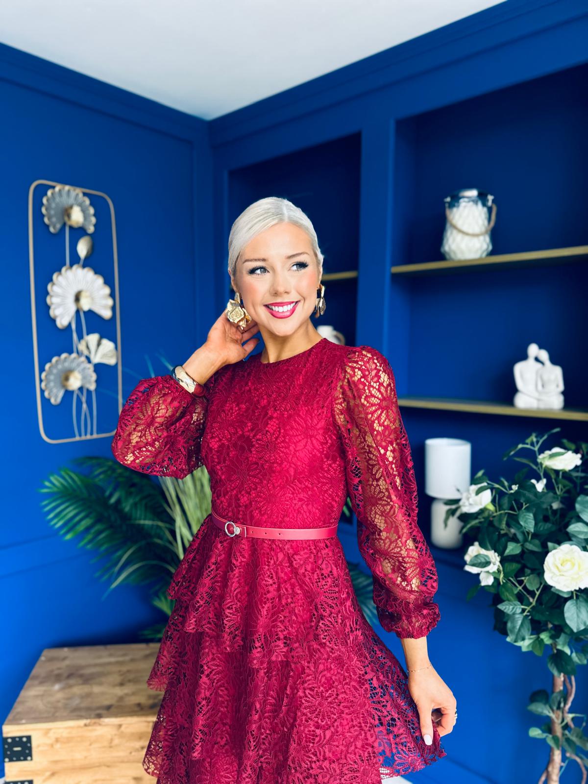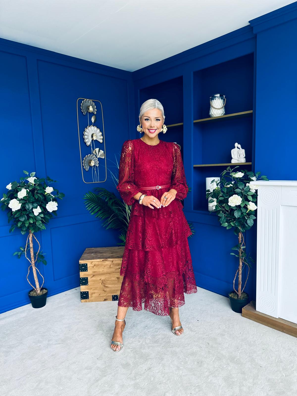 Julia Belted Lace Occasion Dress Wine