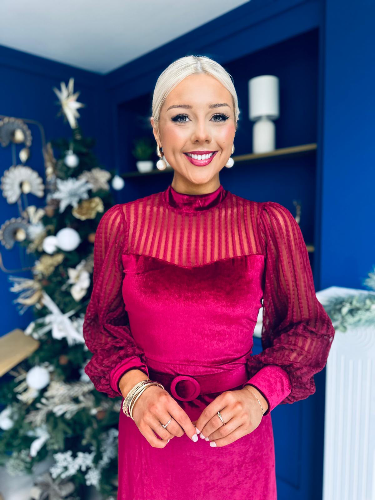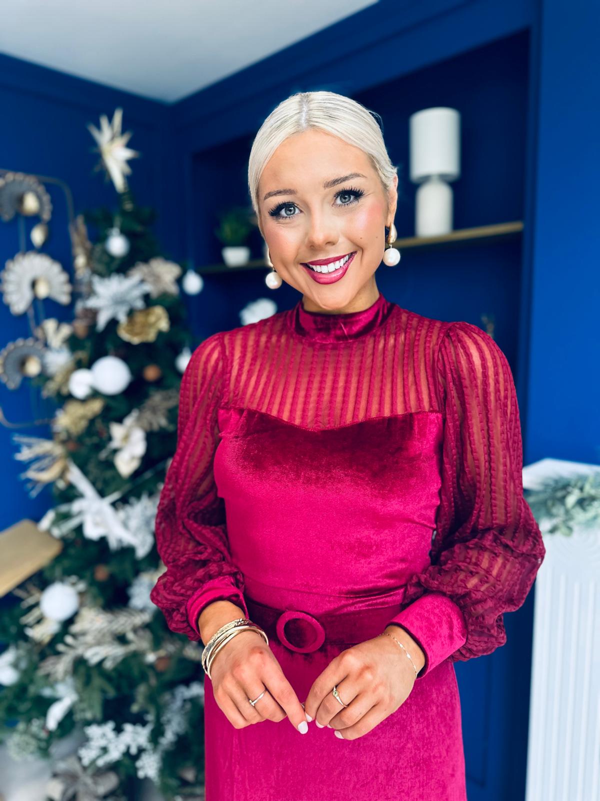 Kayla Velvet Detail Occasion Midi Dress Wine
