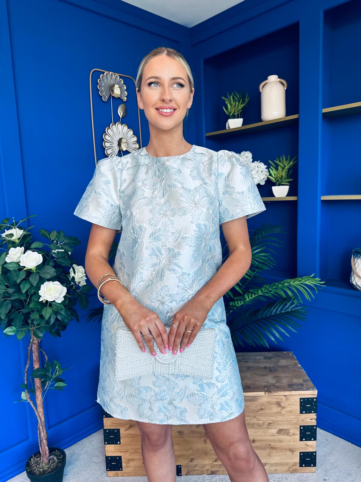 Keisha Jacquard Mini Shift Dress Ice Blue
