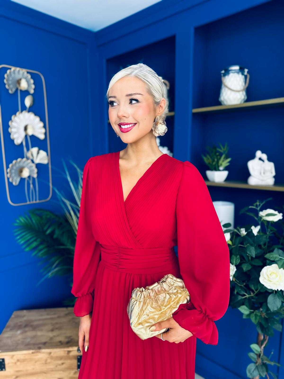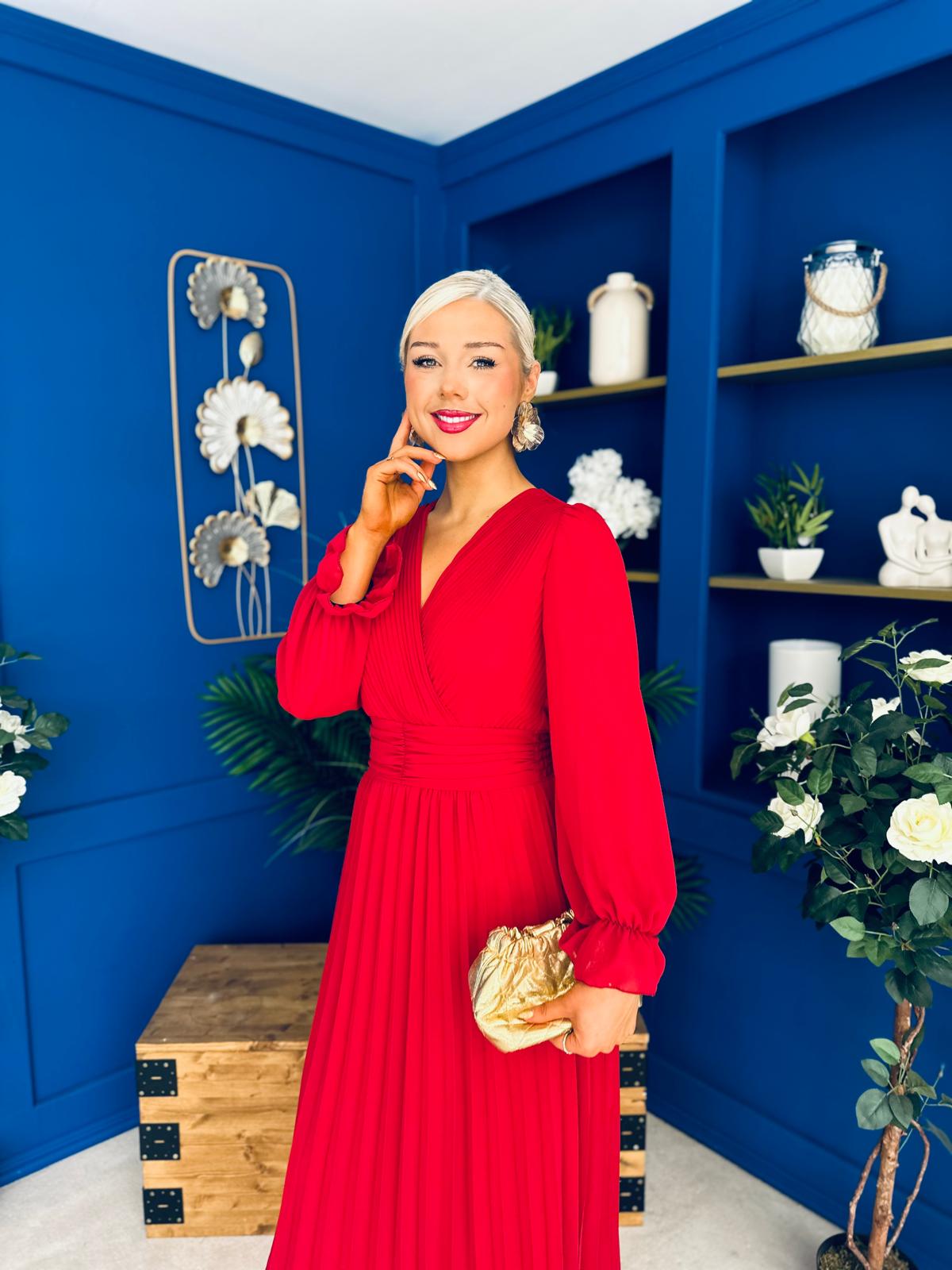 Kendall Pleated Midi Dress Strawberry