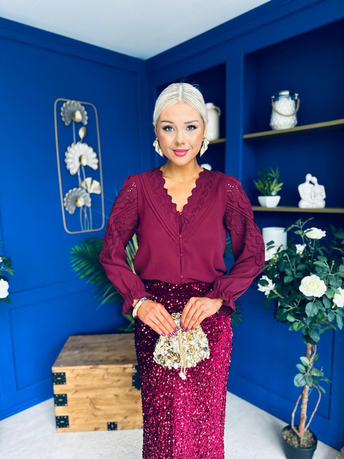 Kile Crochet Detailed Blouse Wine