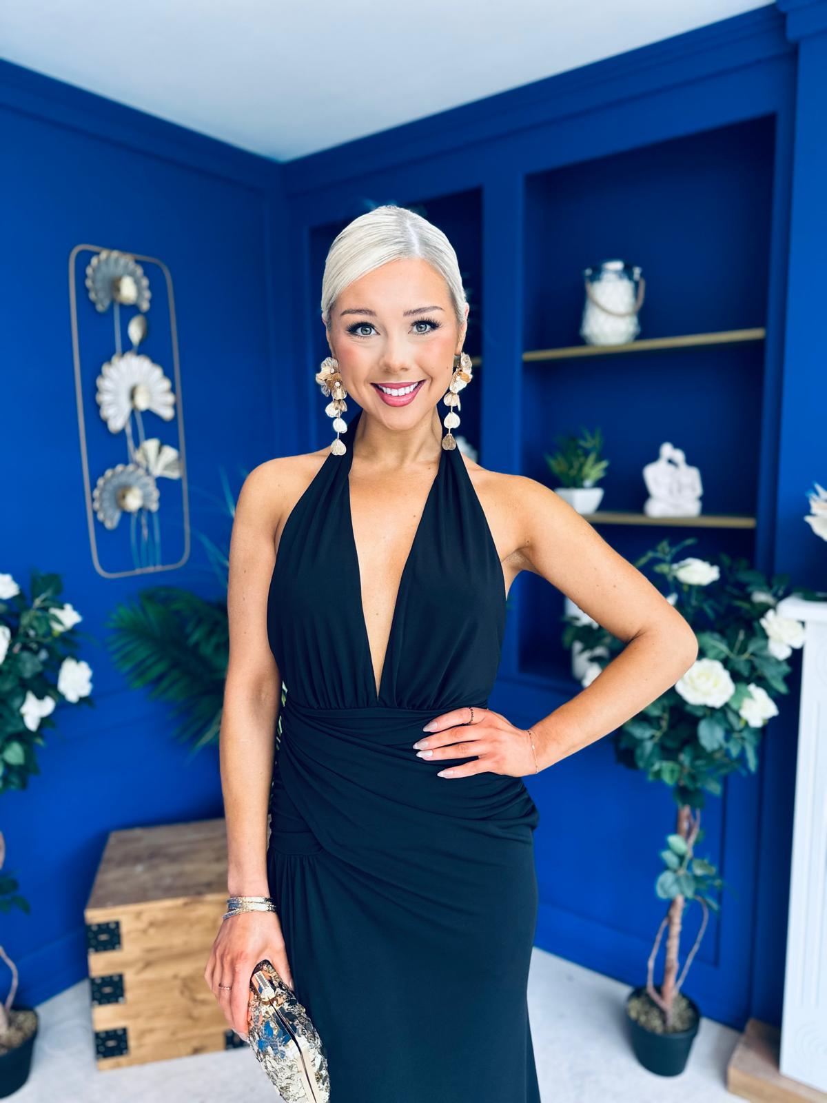 Kily Detailed Halterneck Maxi Dress Black