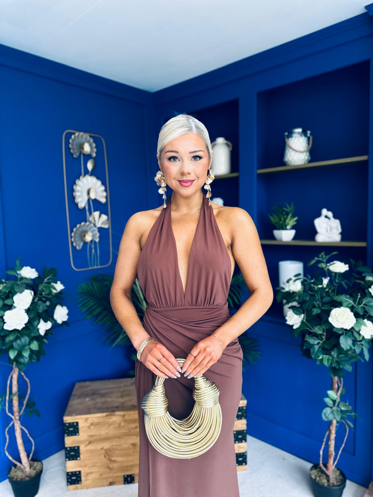 Kily Detailed Halterneck Maxi Dress Chocolate