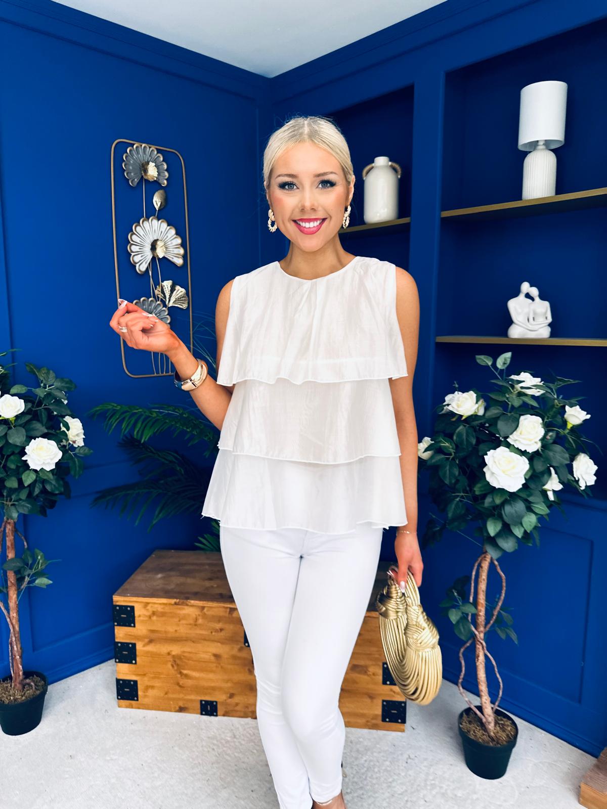 Crafted in a fab organza like fabric with the most amazing layered detail, this top is sure to make and entrance.