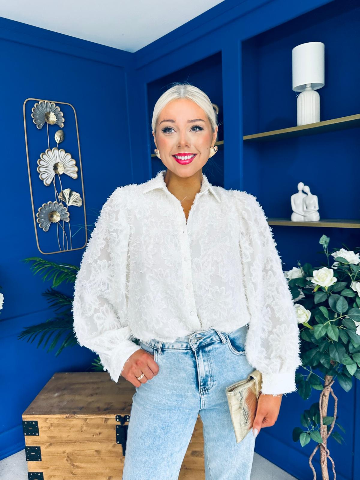 Leona Detailed Long Sleeve Blouse Cream