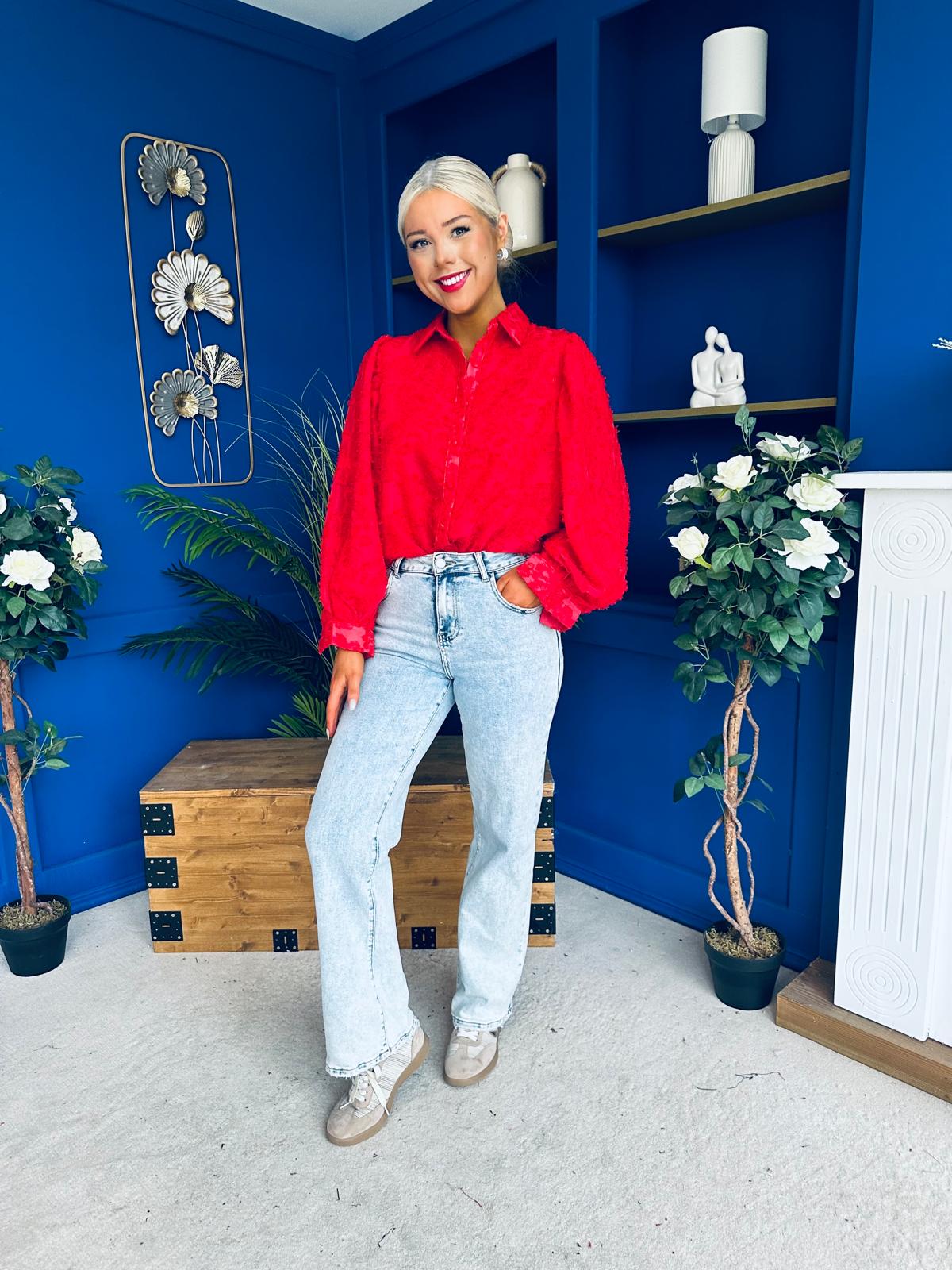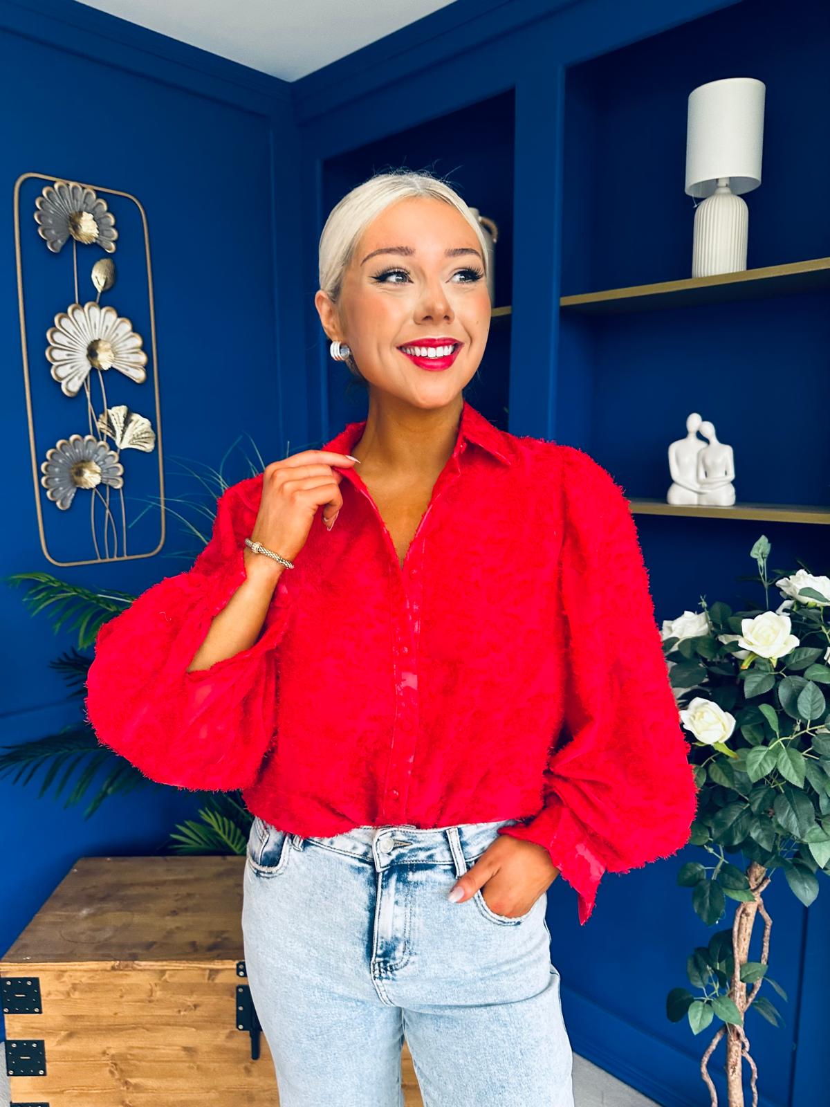 Leona Detailed Long Sleeve Blouse Red