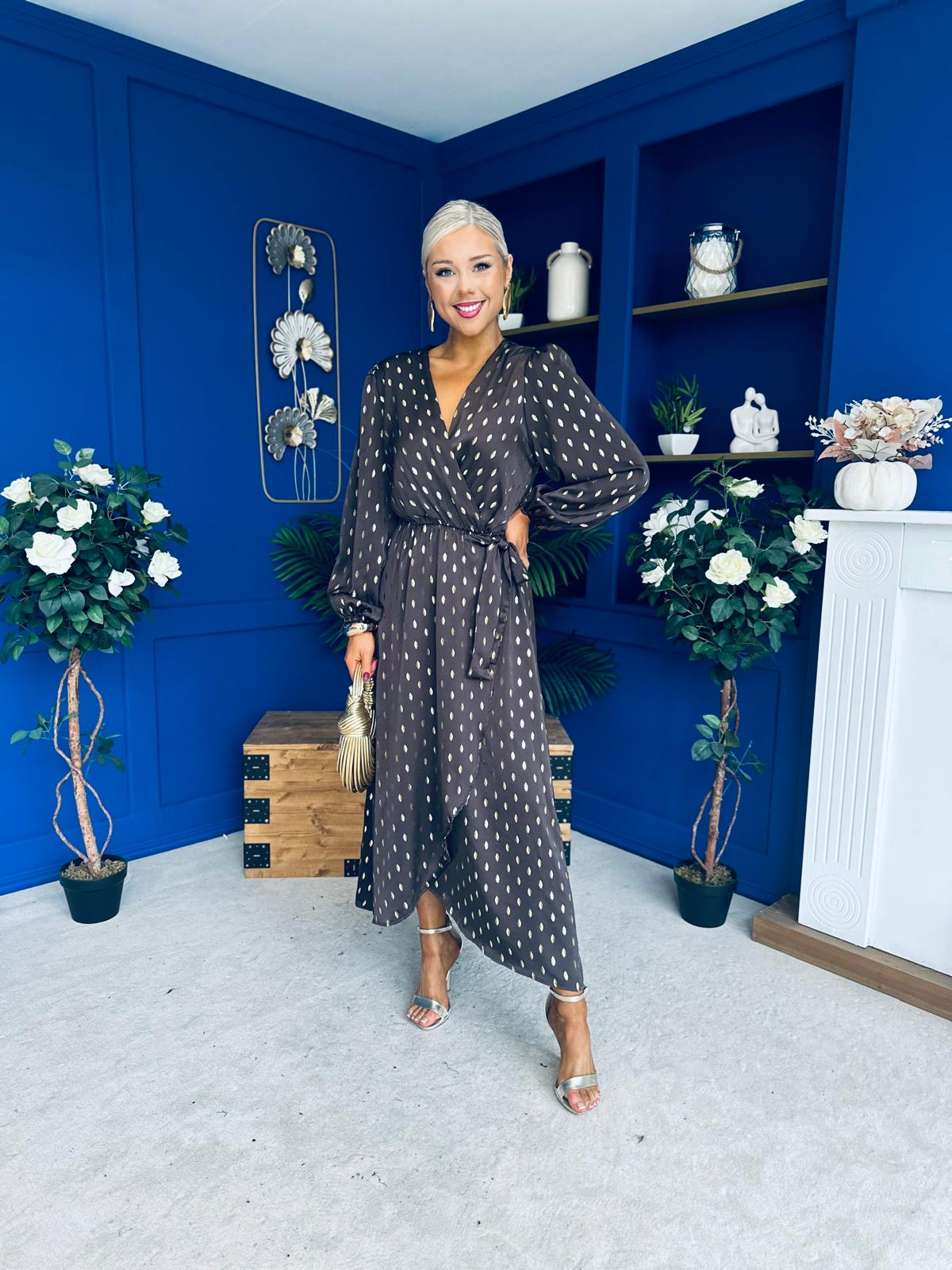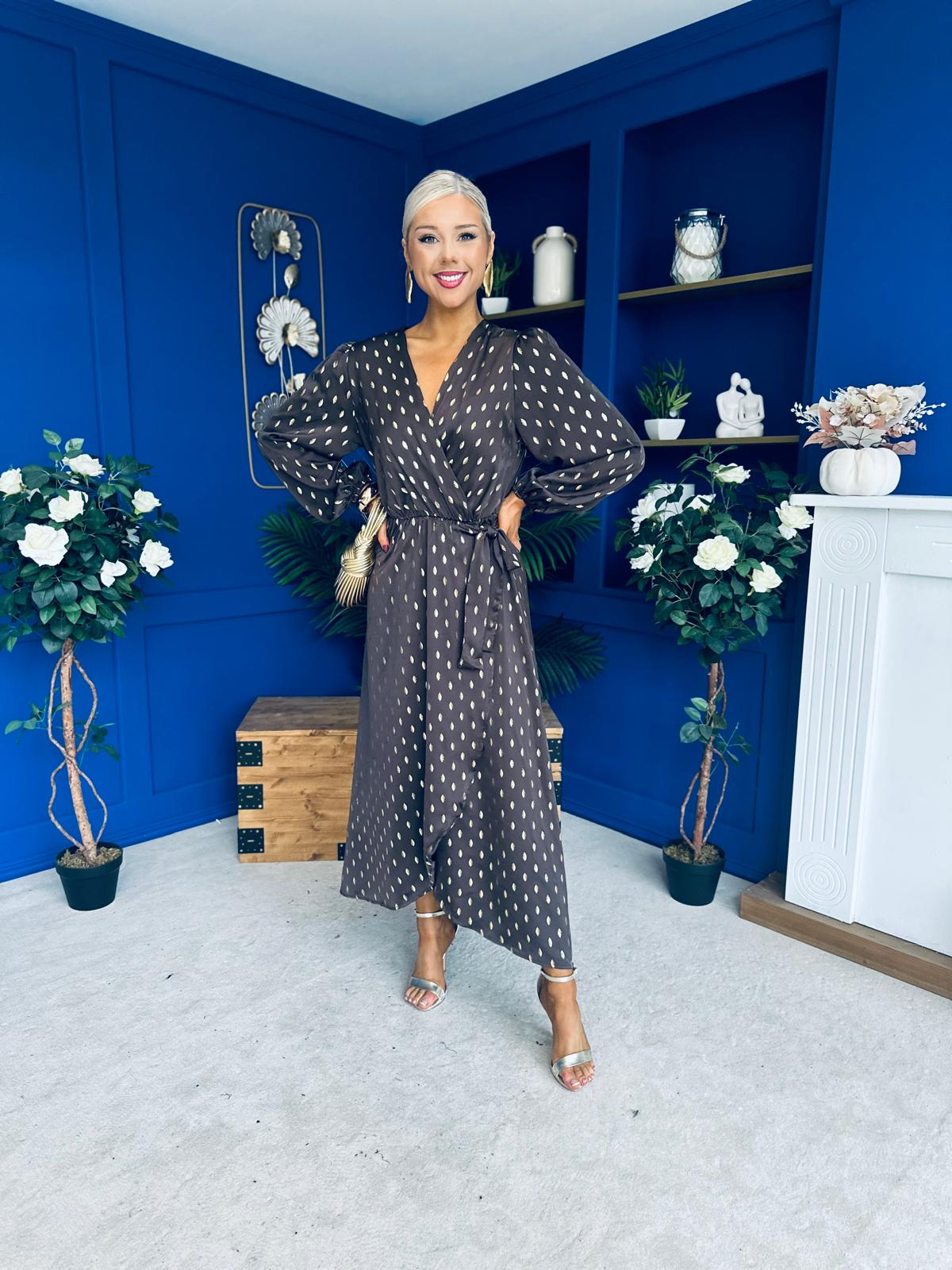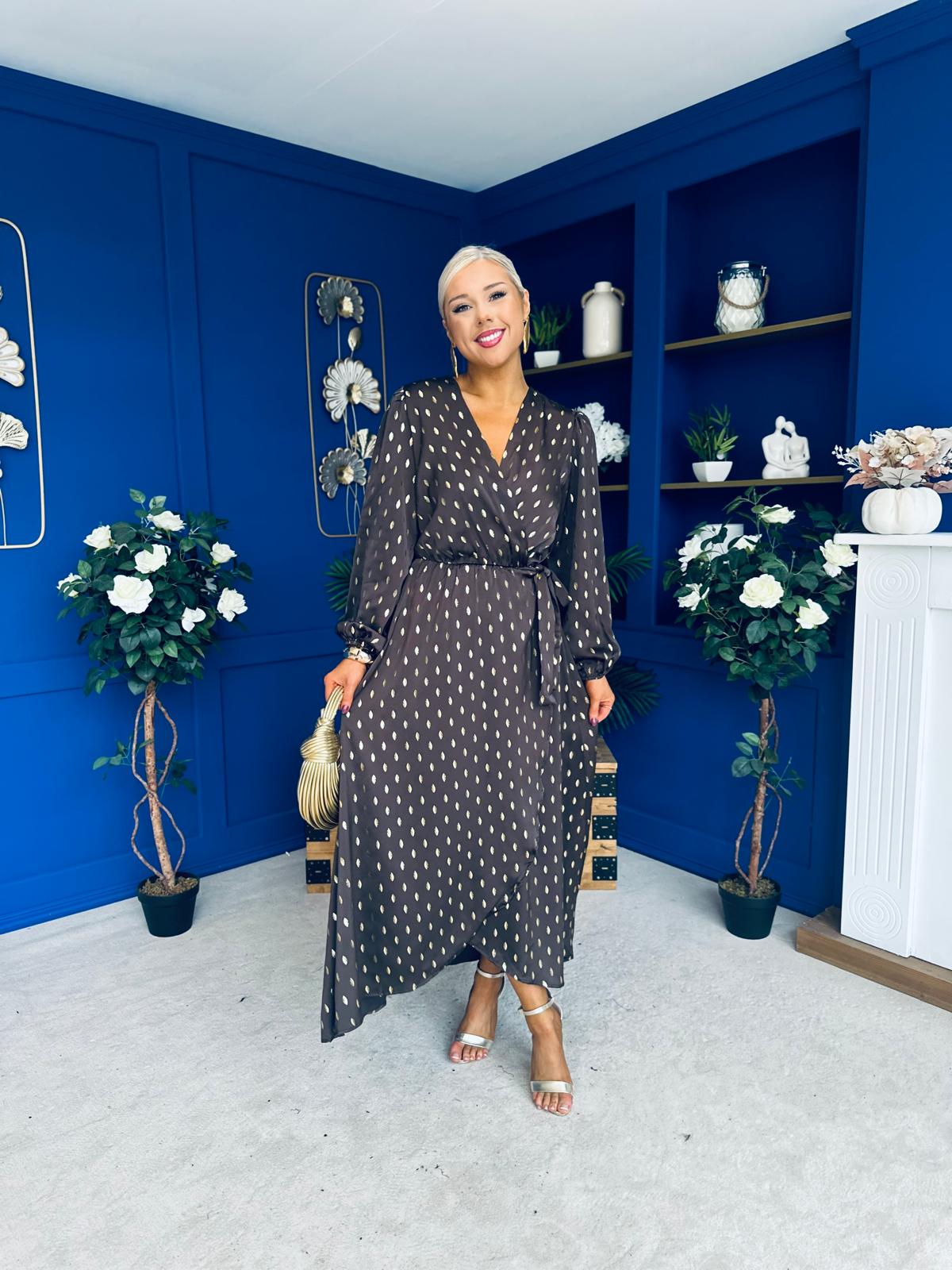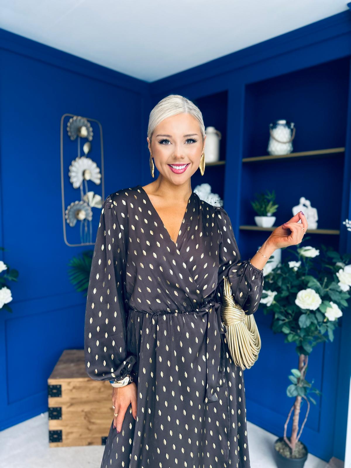 Lexie Gold Leaf Midi Dress Coffee Pre Order 7 Oct