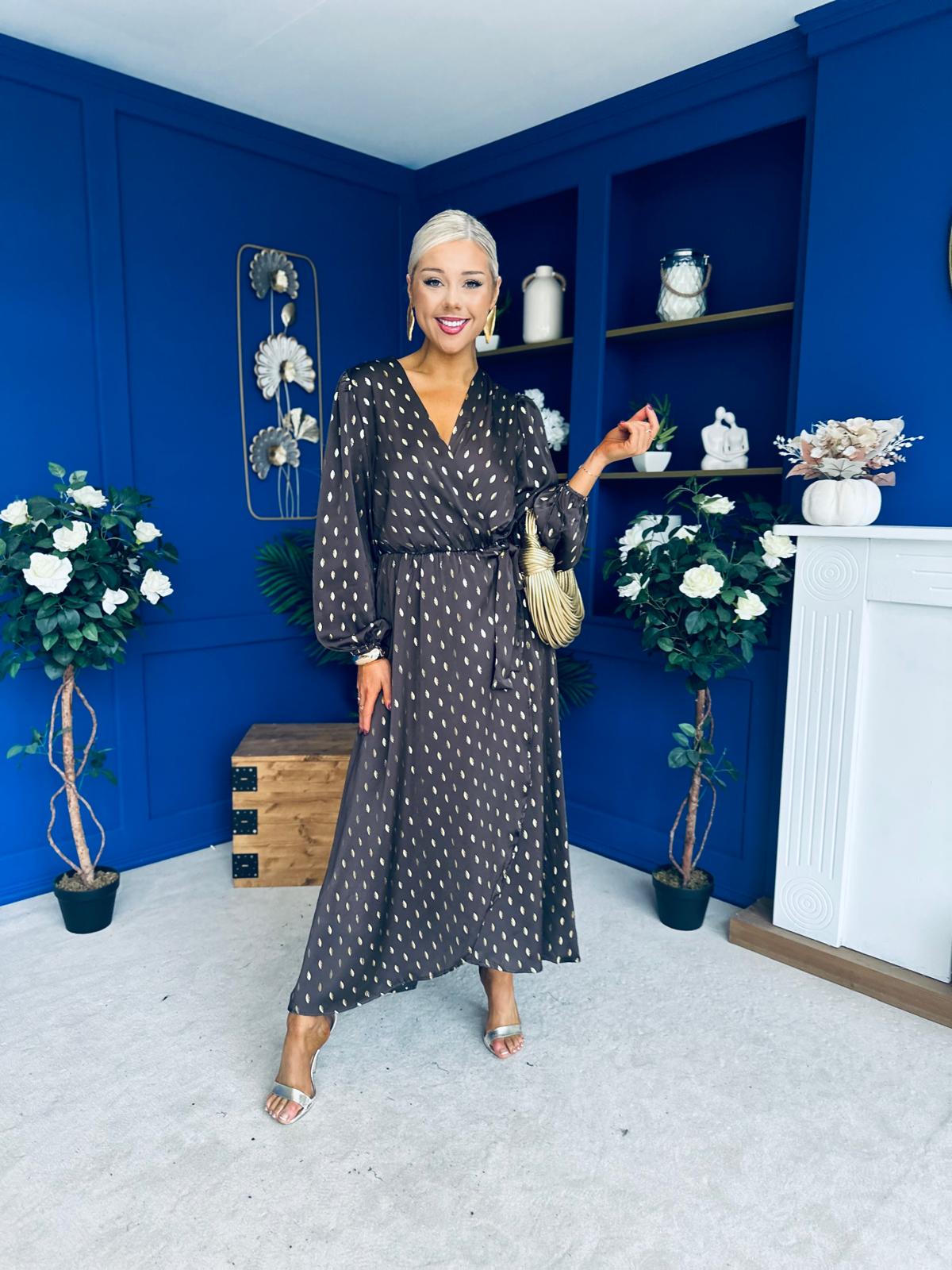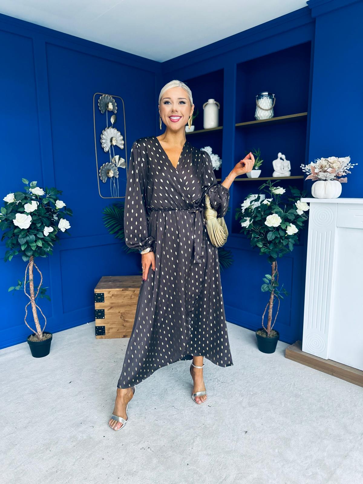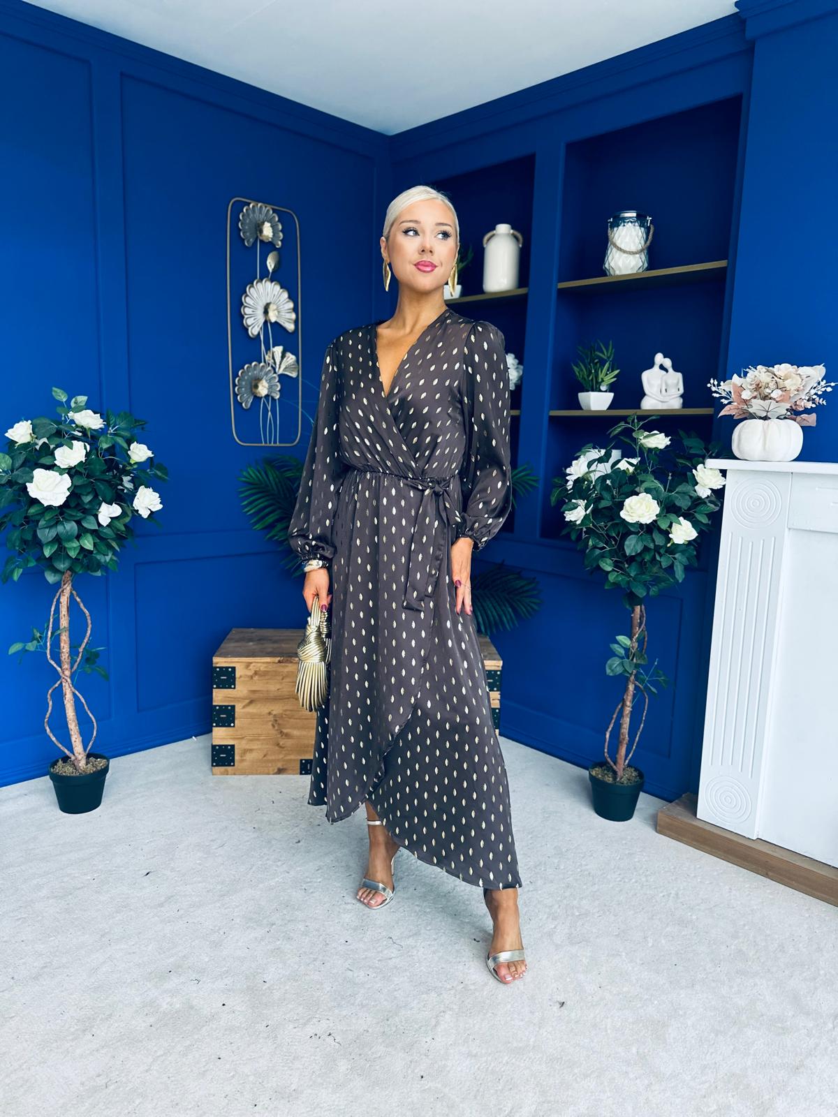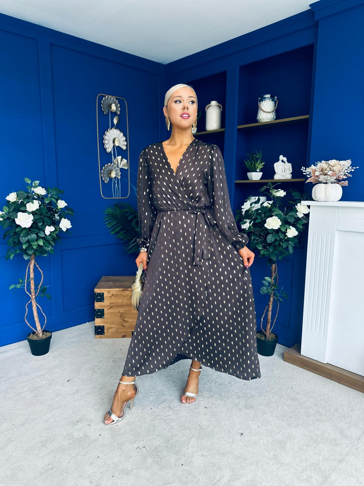 Lexie Gold Leaf Midi Dress Coffee Pre Order 7 Oct
