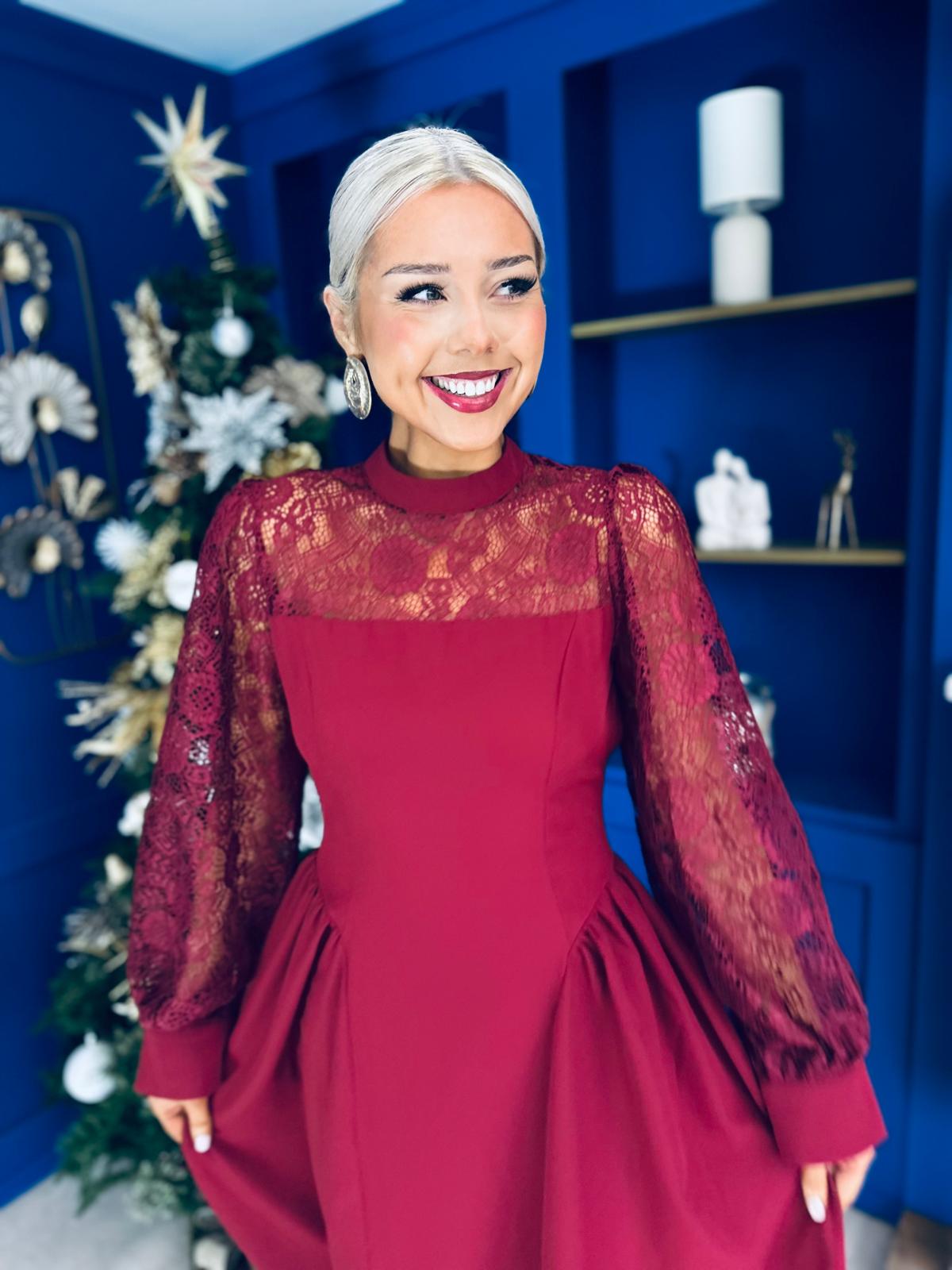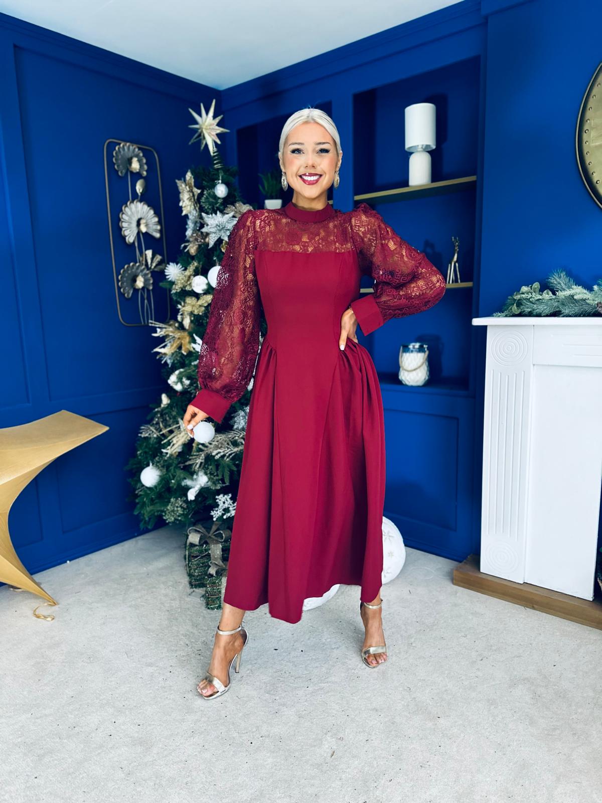 This dress is simply gorgeous. From the standout neckline, full length sleeve, lace detailing and flowing skirt, it is truly one of a kind ❤️❤️