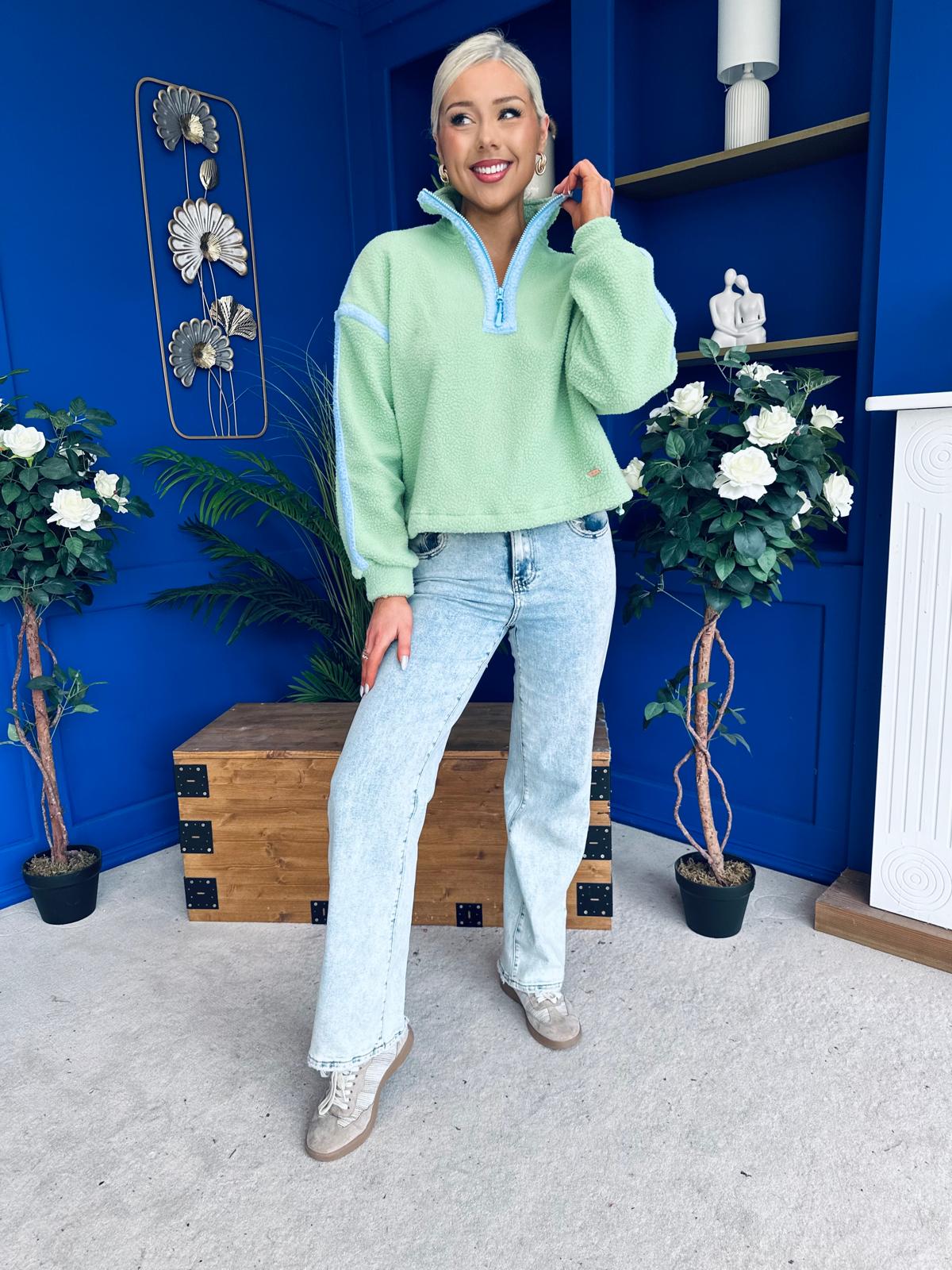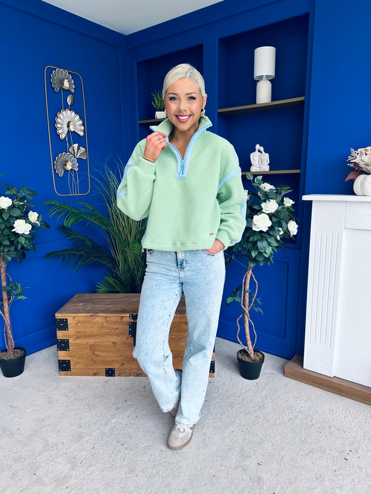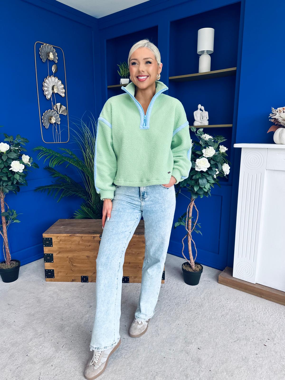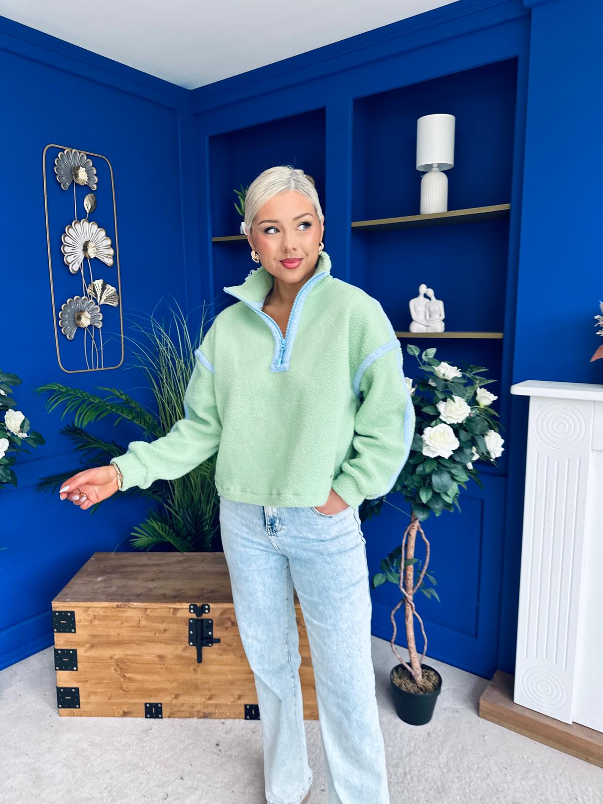 Lulu Contrast Binding 1/4 Zip Fleece Green