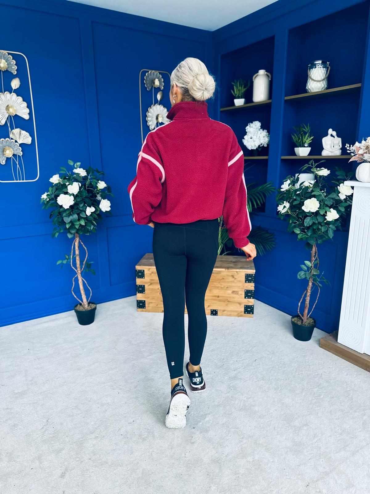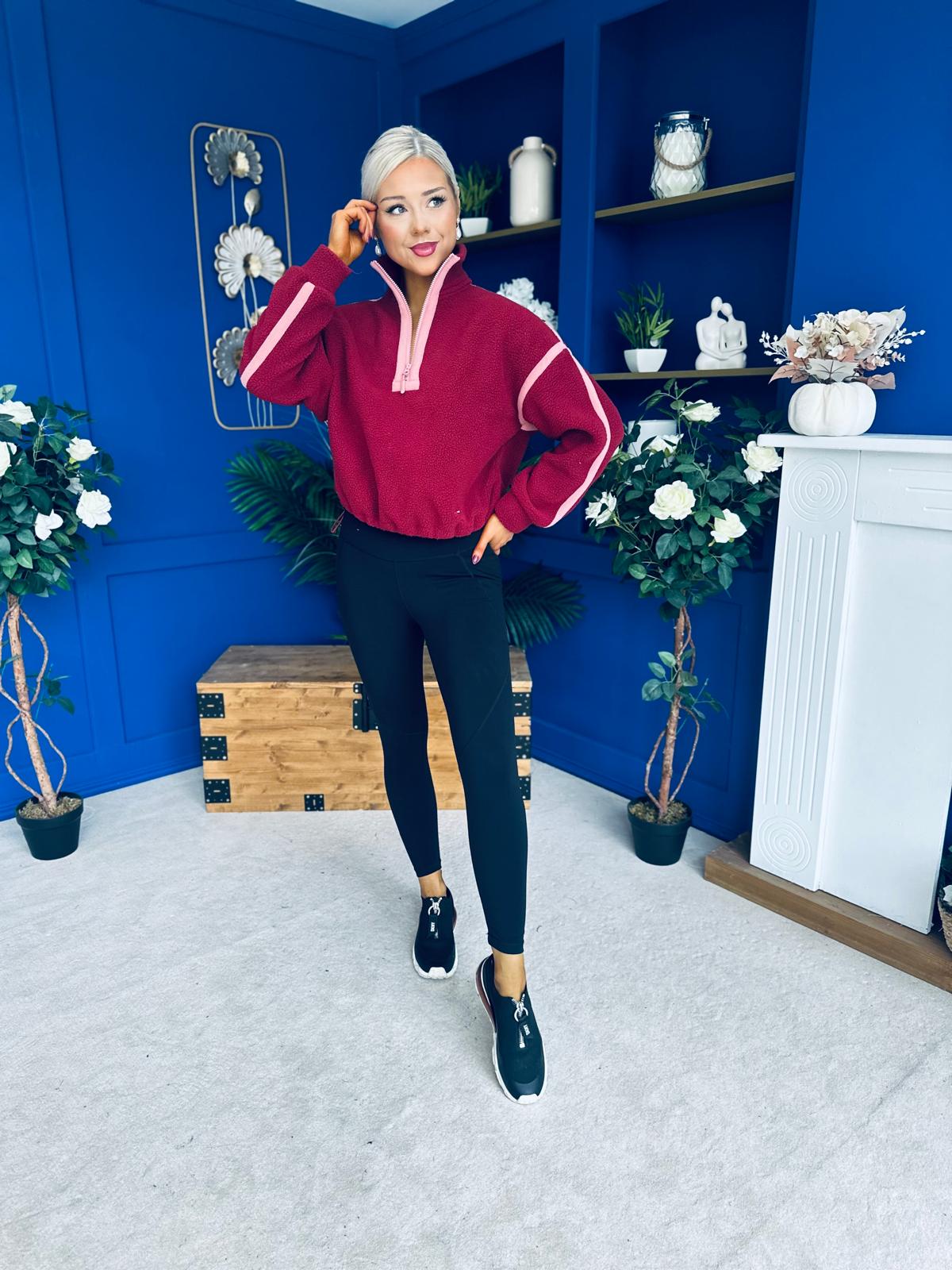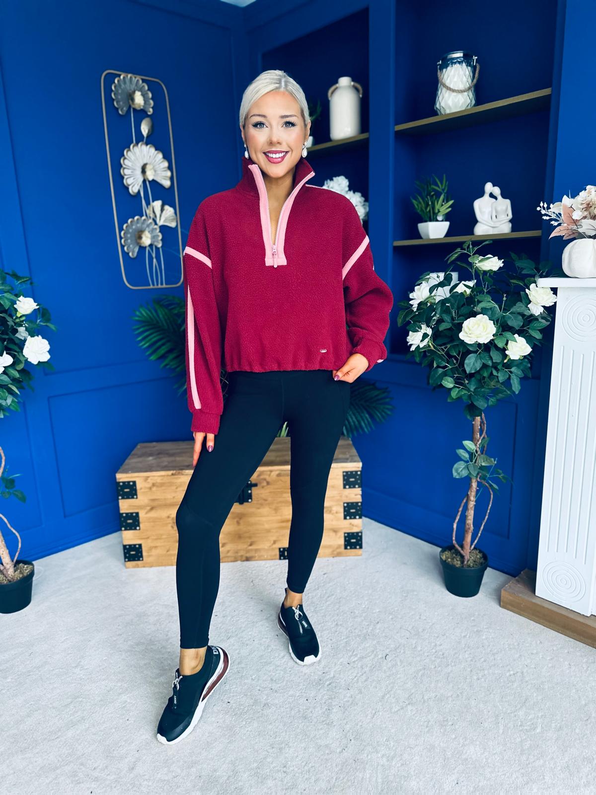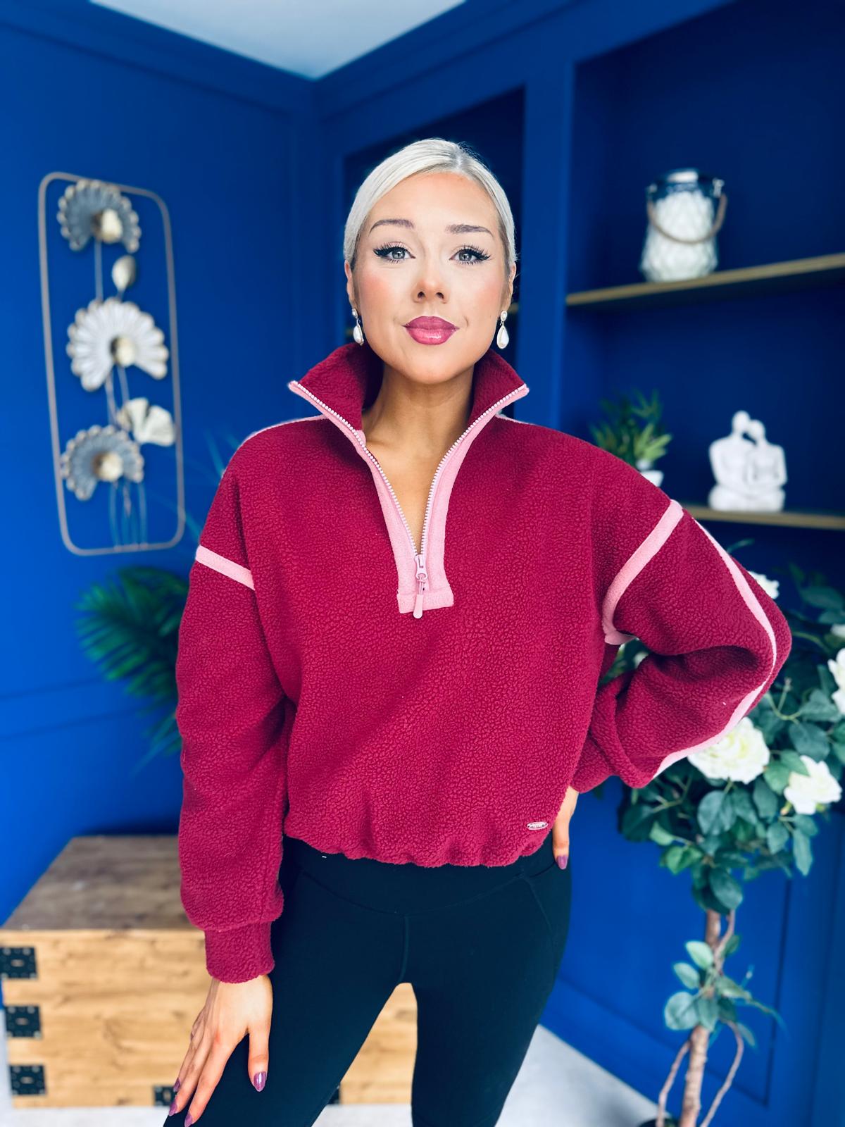 Lulu Contrast Binding 1/4 Zip Fleece Wine
